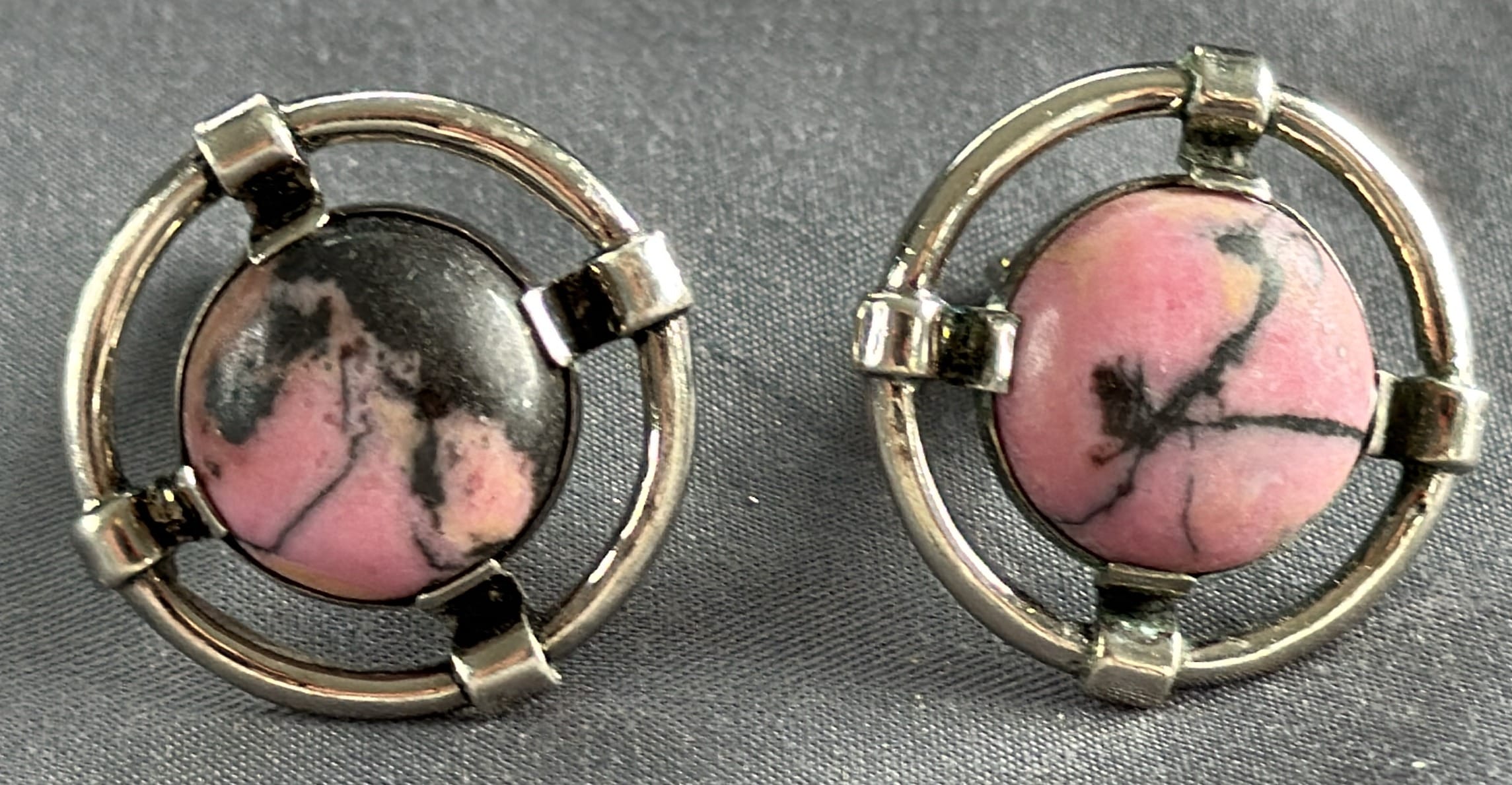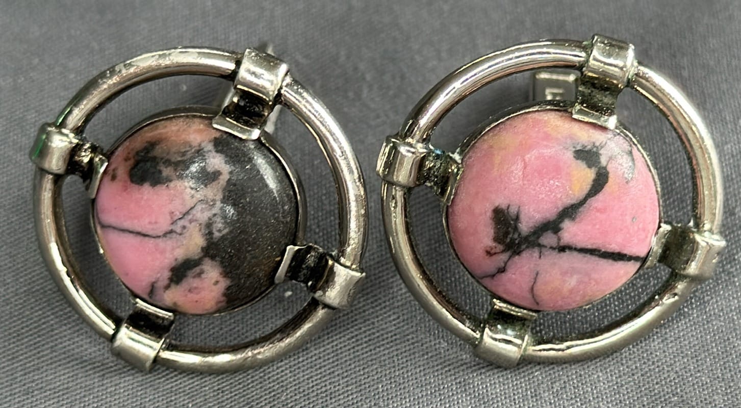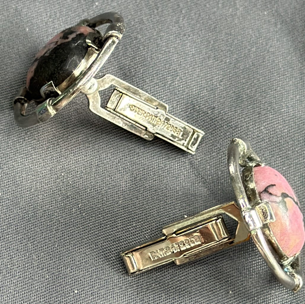 1052 Vintage Sterling and Pink/Black Stone Cufflinks