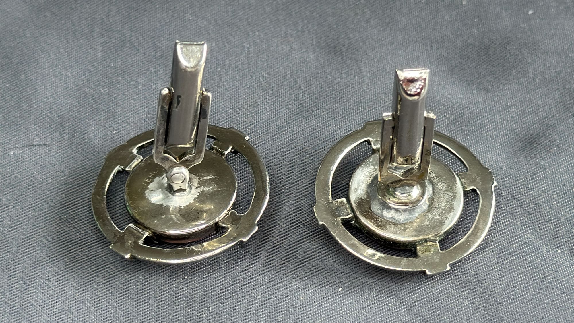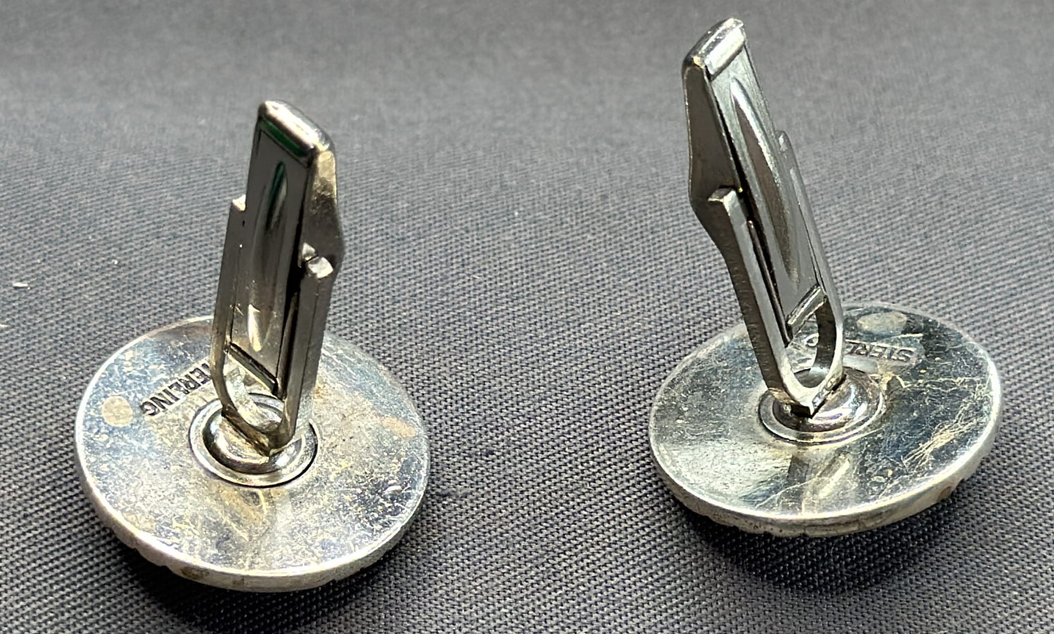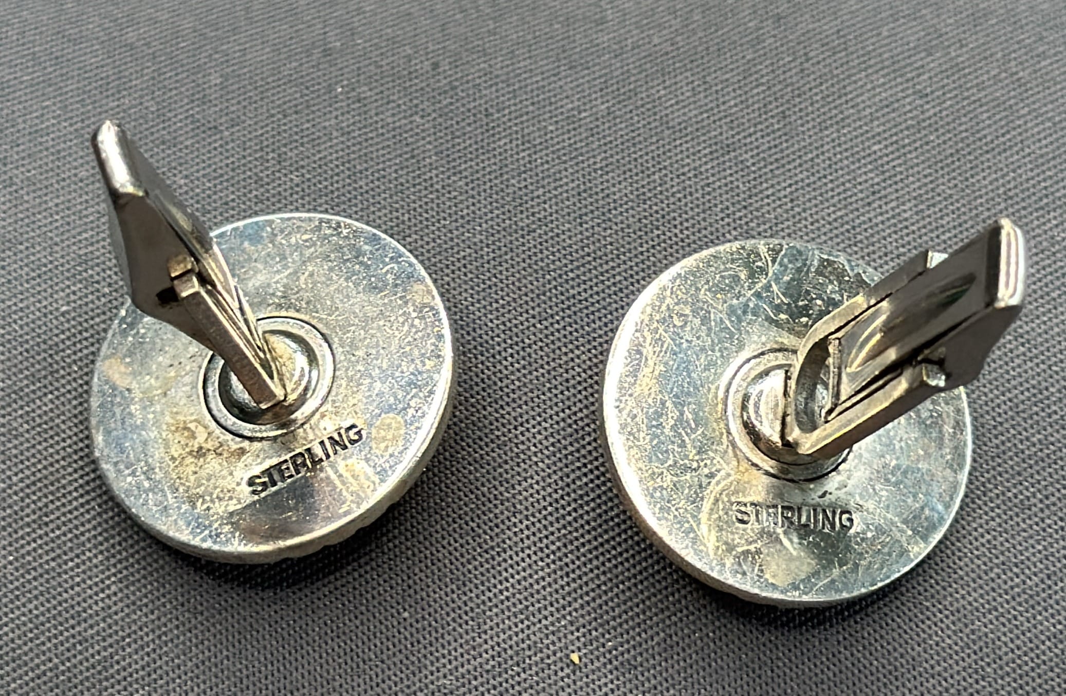 1052 Vintage Sterling and Pink/Black Stone Cufflinks