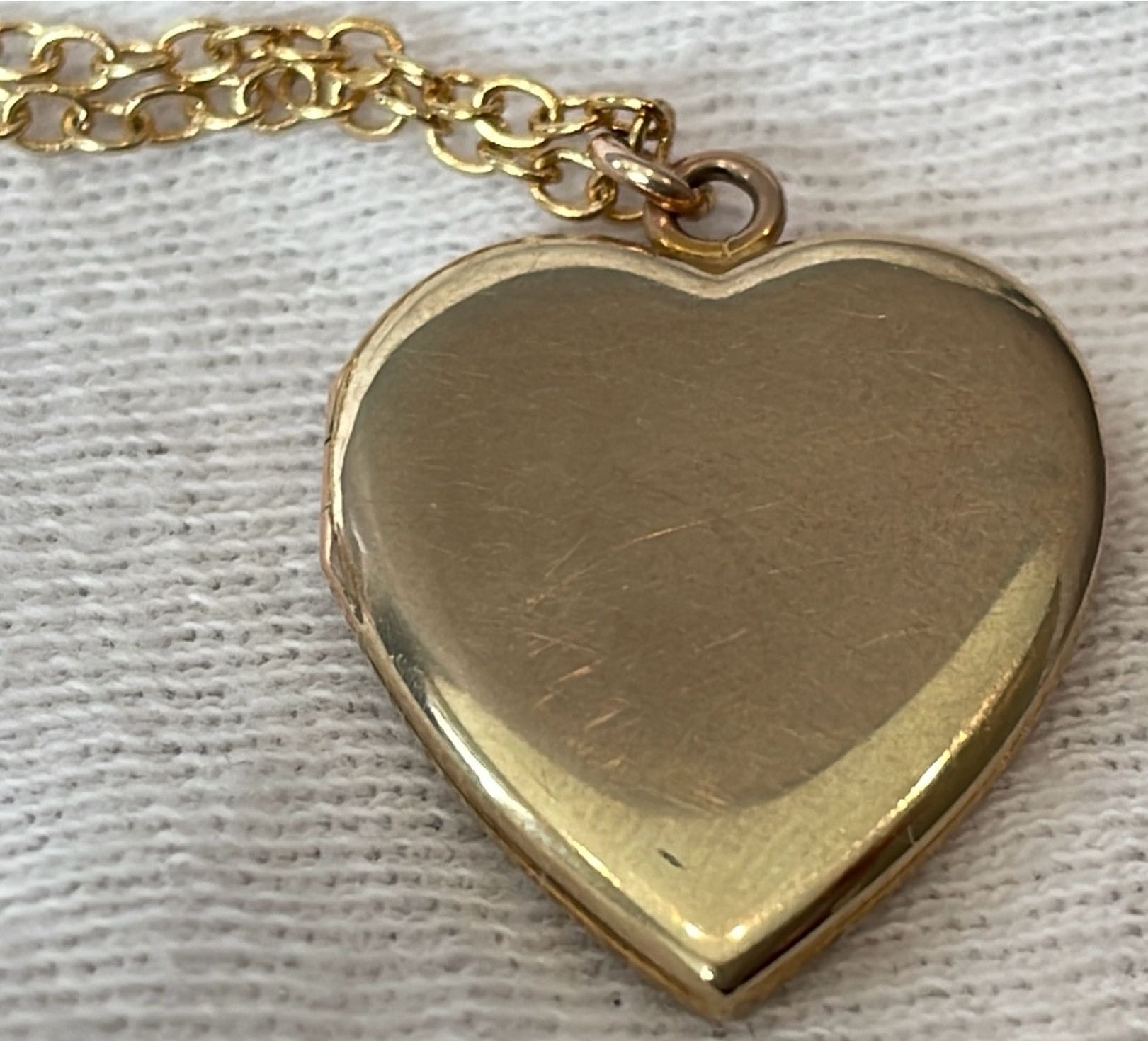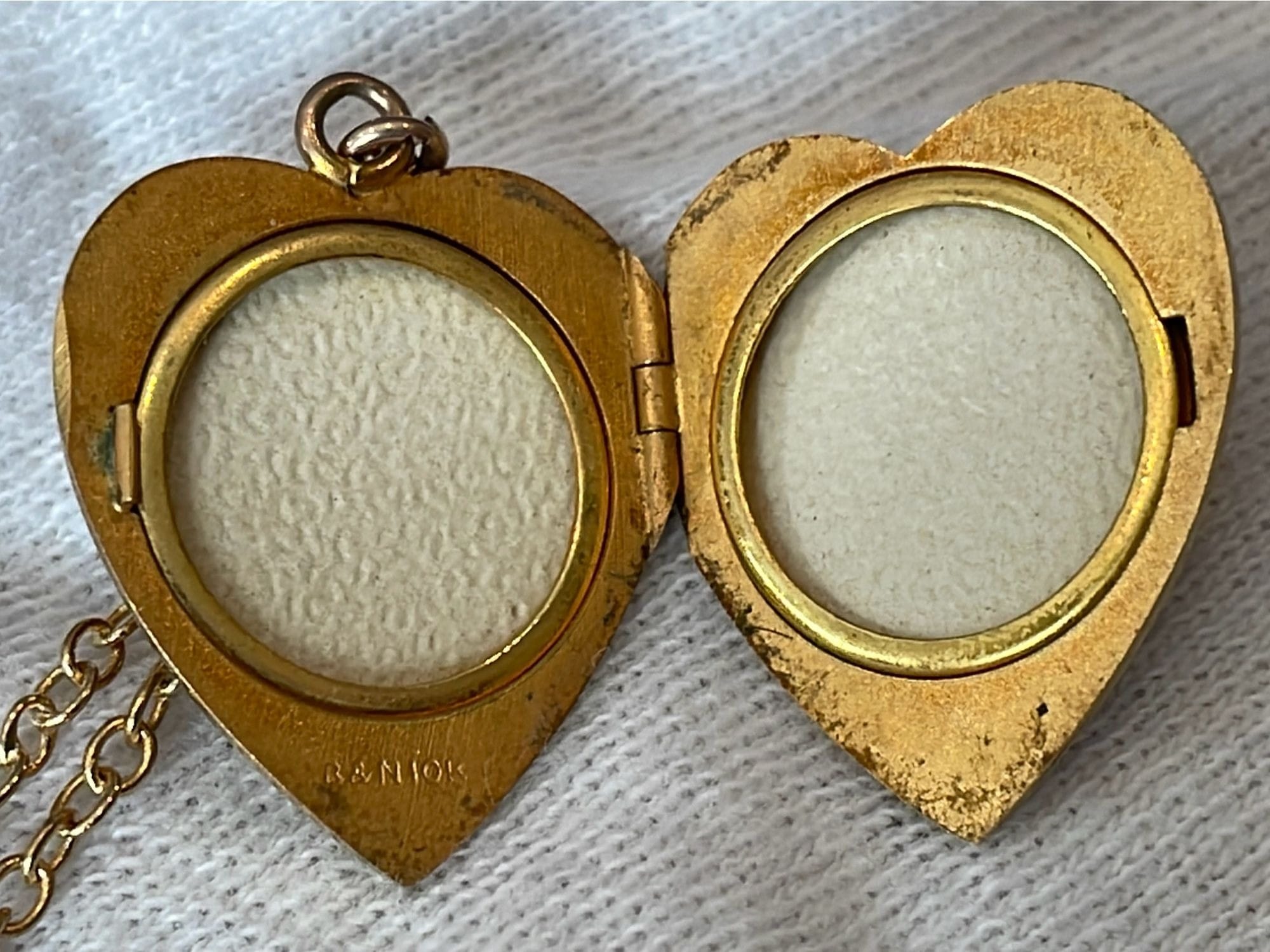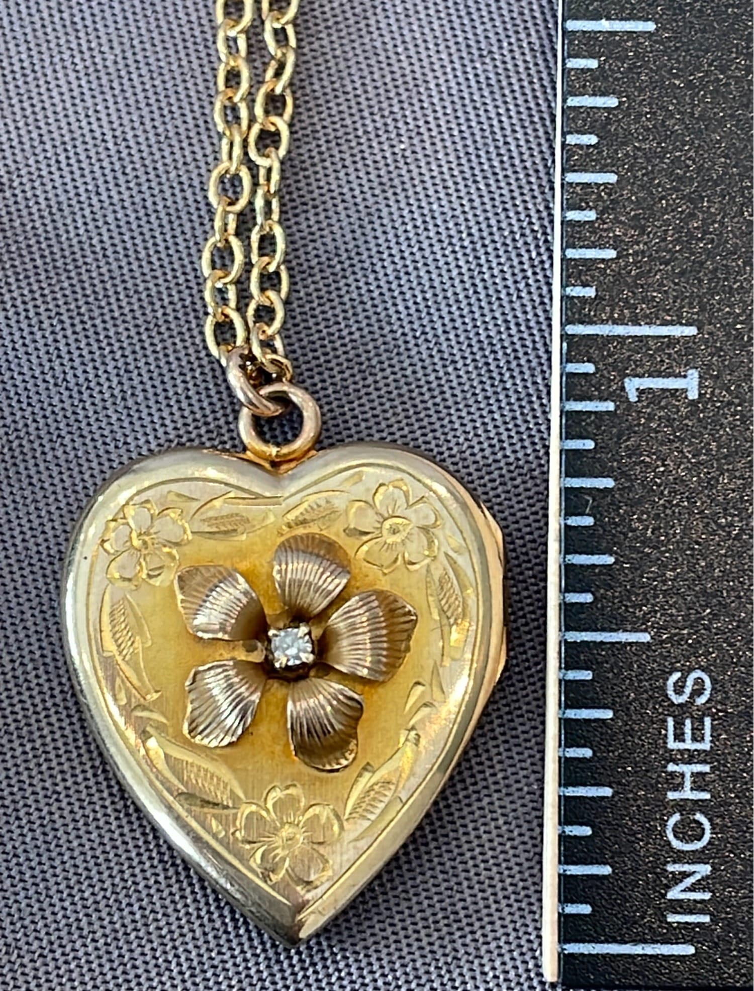 1048 B&N 10K Gold Heart Locket with Diamond Pendant, 3.4 G., on 18K GF 20 1/4 inch Chain