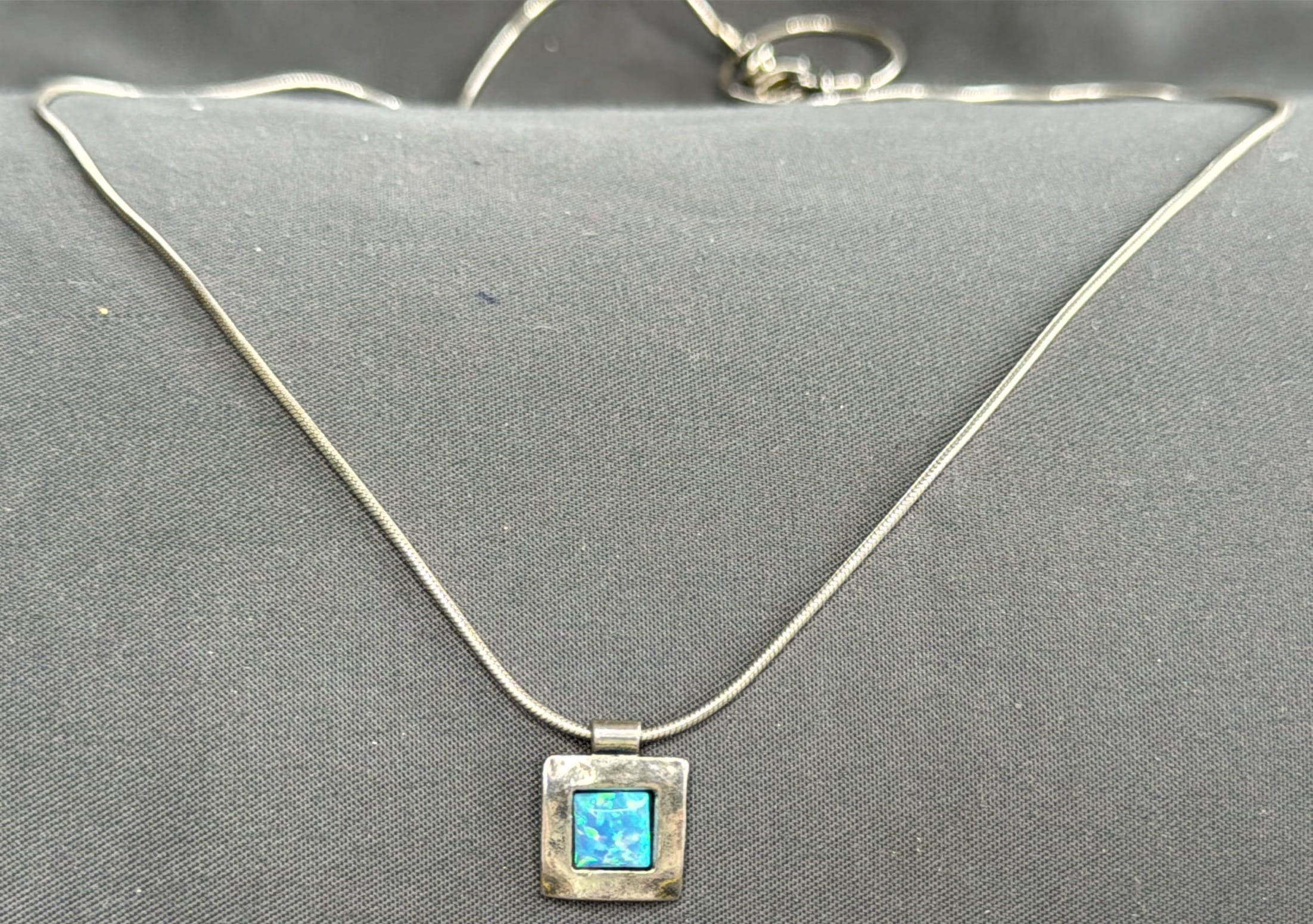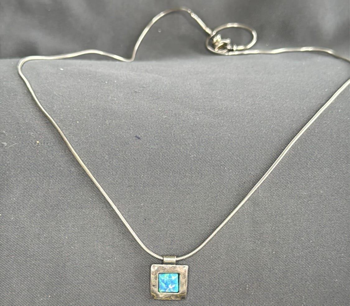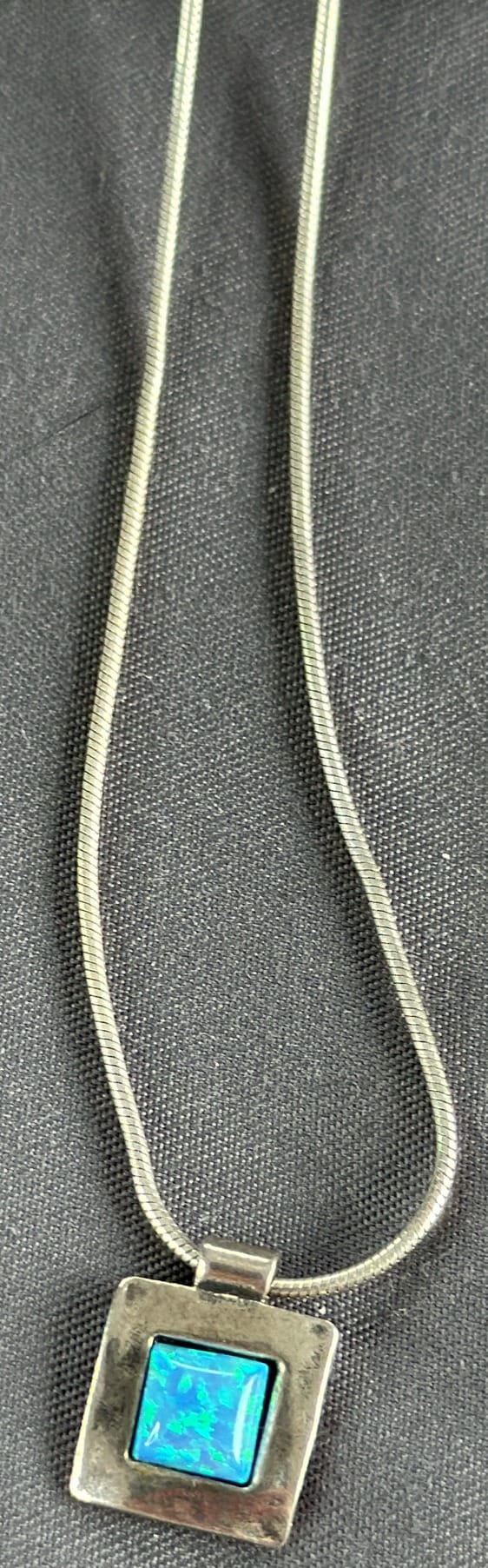 1049 .925 Silver and Opal Pendant- Israel- on 16 inch .925 Chain