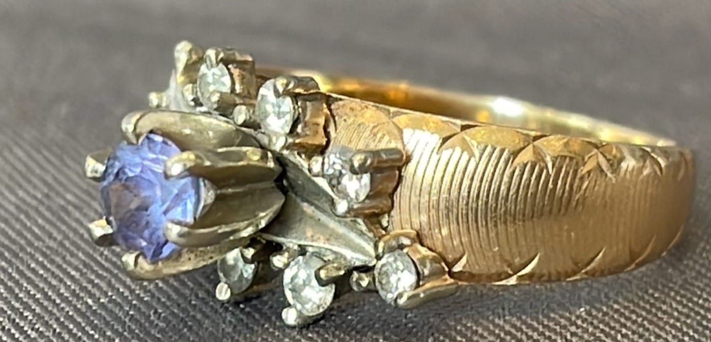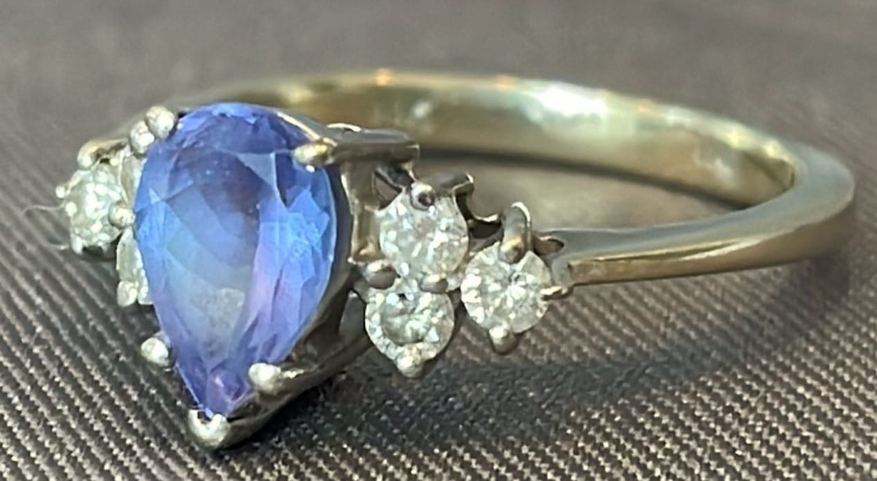 1051 Tanzanite and Diamond Ring 14 Karat Gold (unmarked)