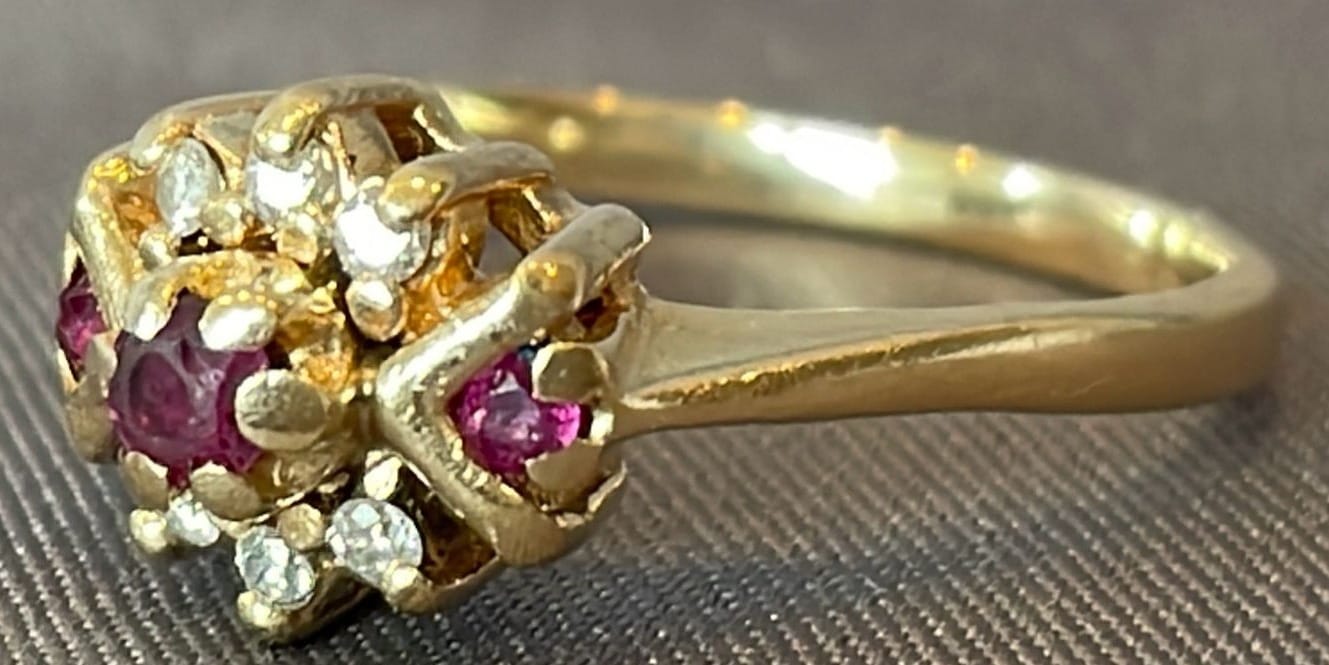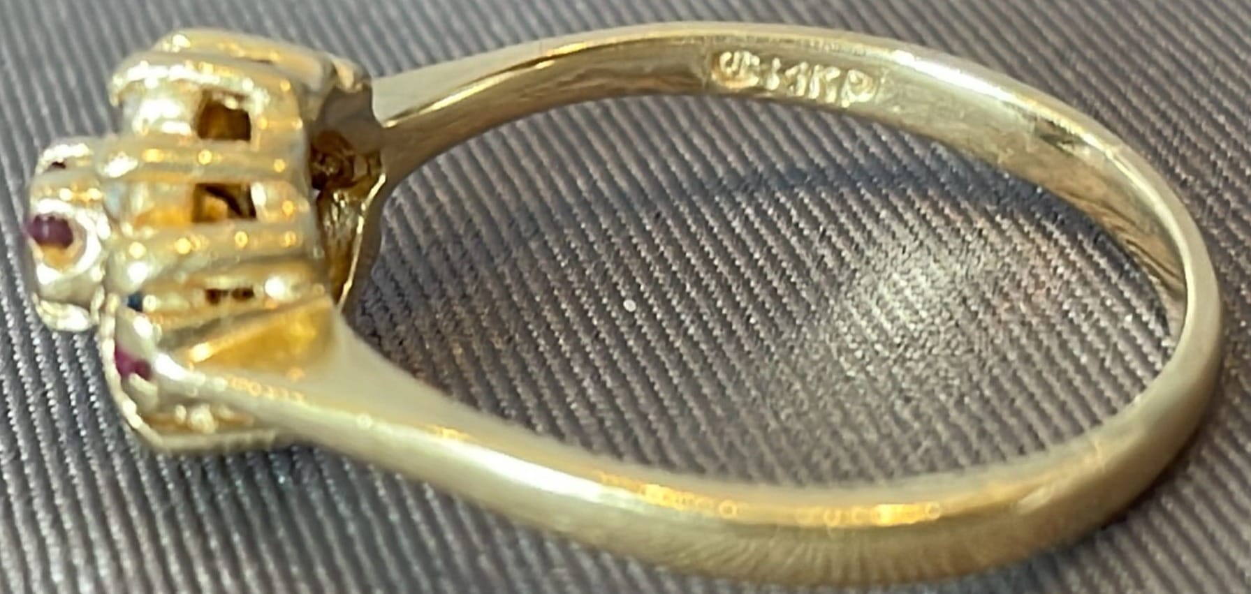1053 Diamond and Ruby Ring 14K Plumb Gold