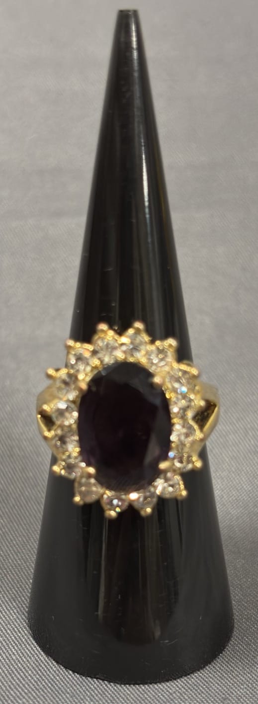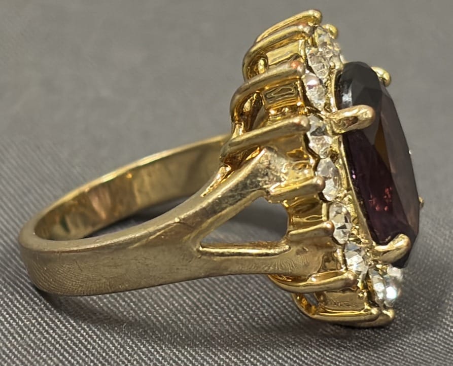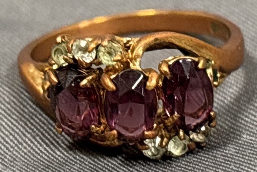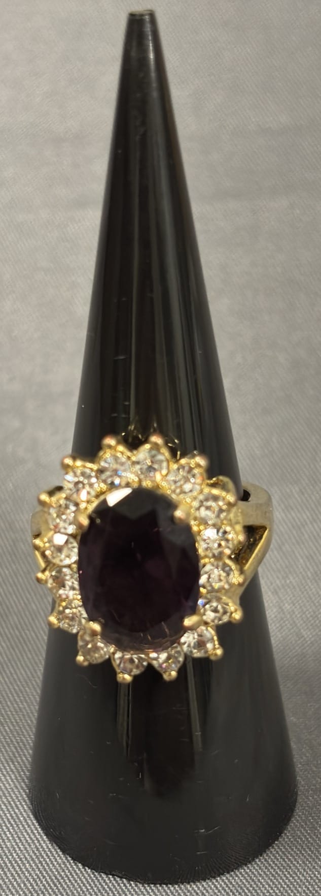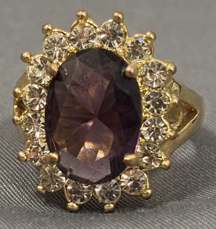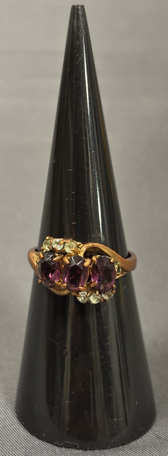 1135 Vintage Costume Ring with Purple and Clear Faceted Stones