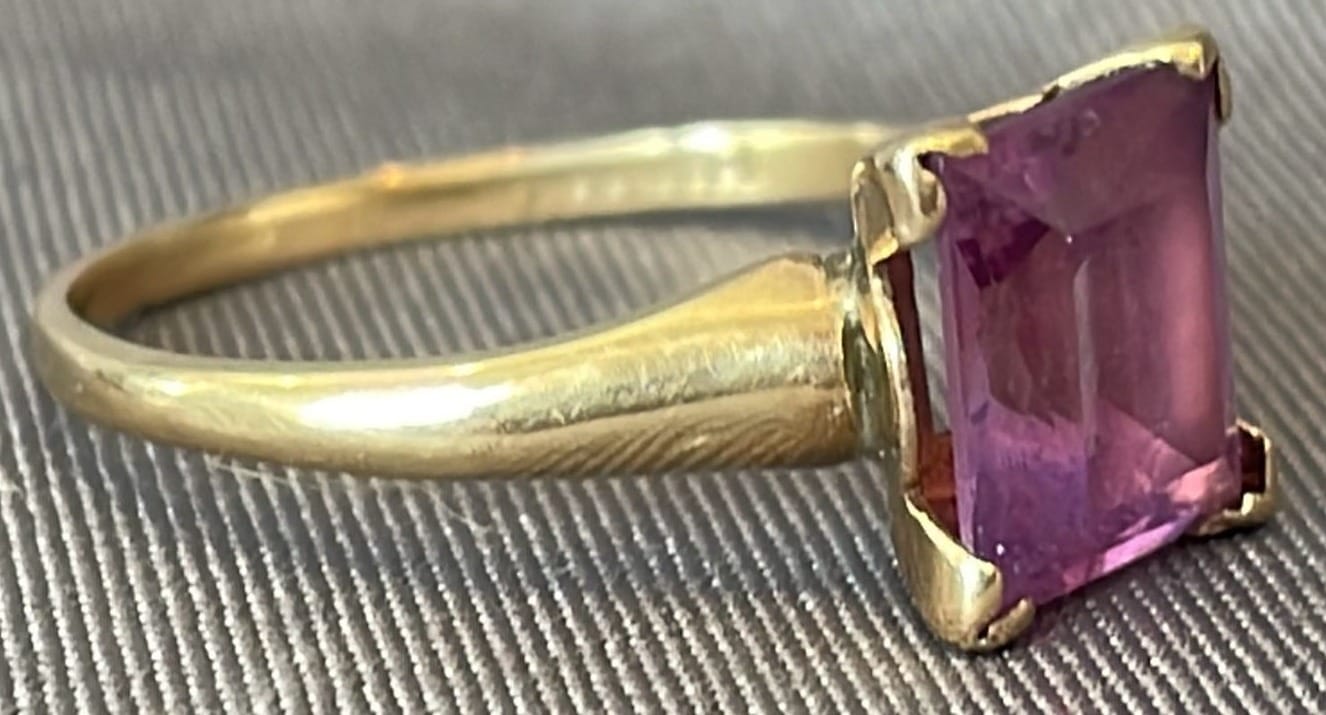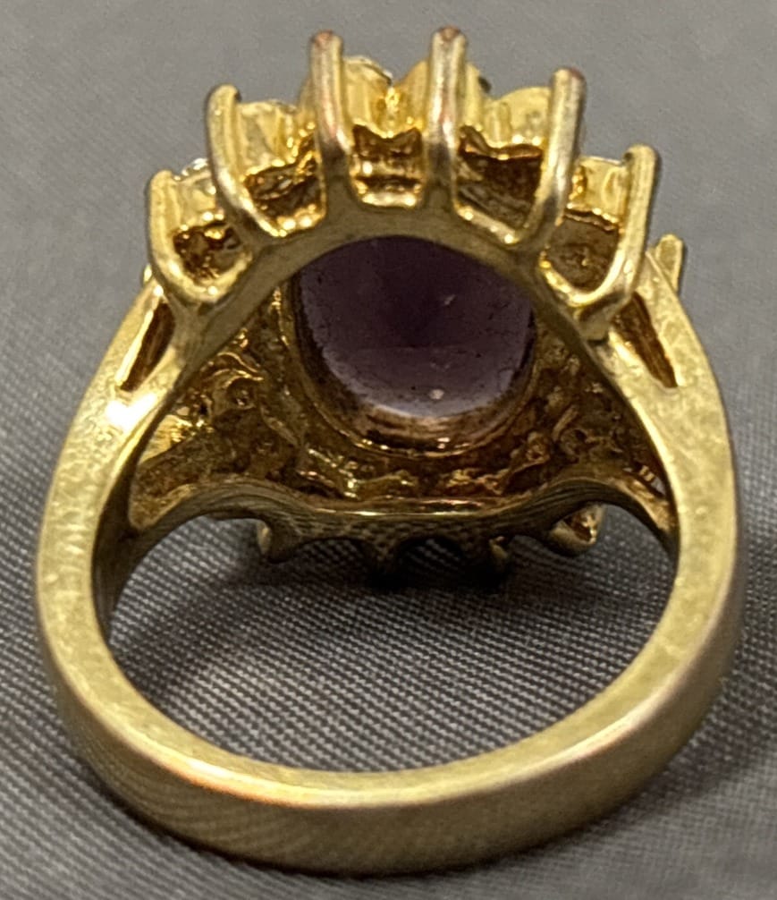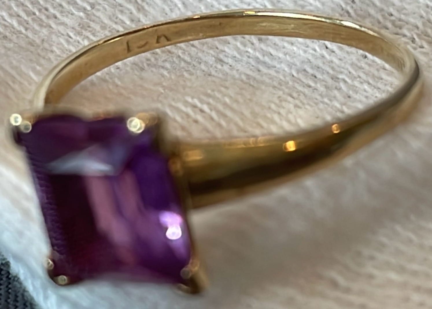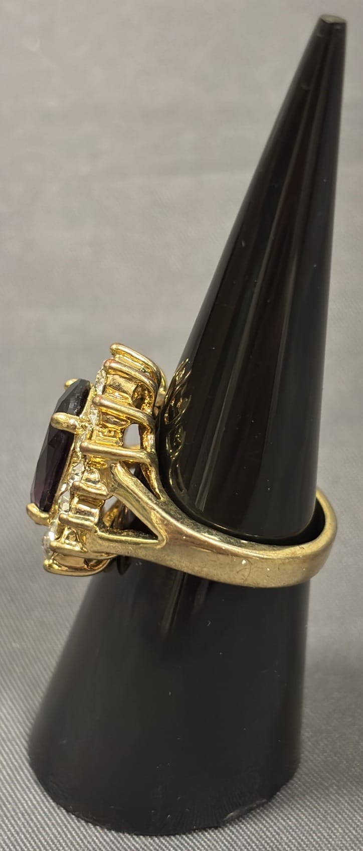 1135 Vintage Costume Ring with Purple and Clear Faceted Stones