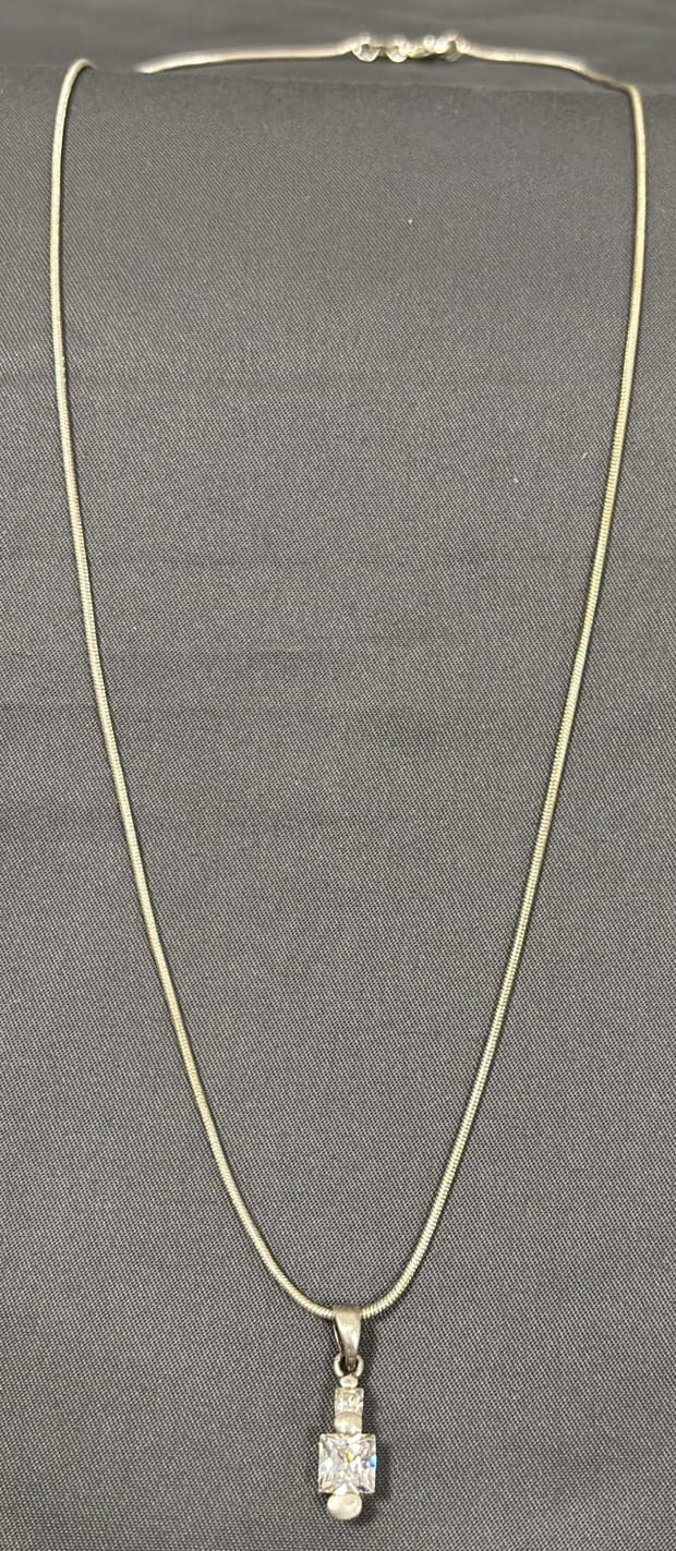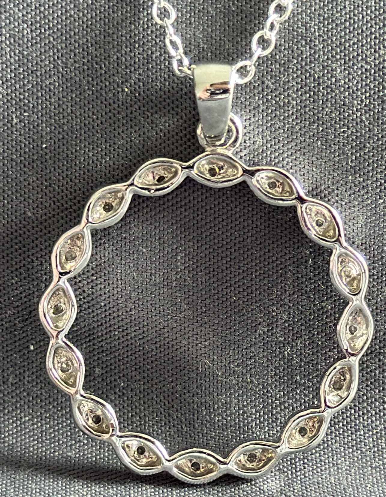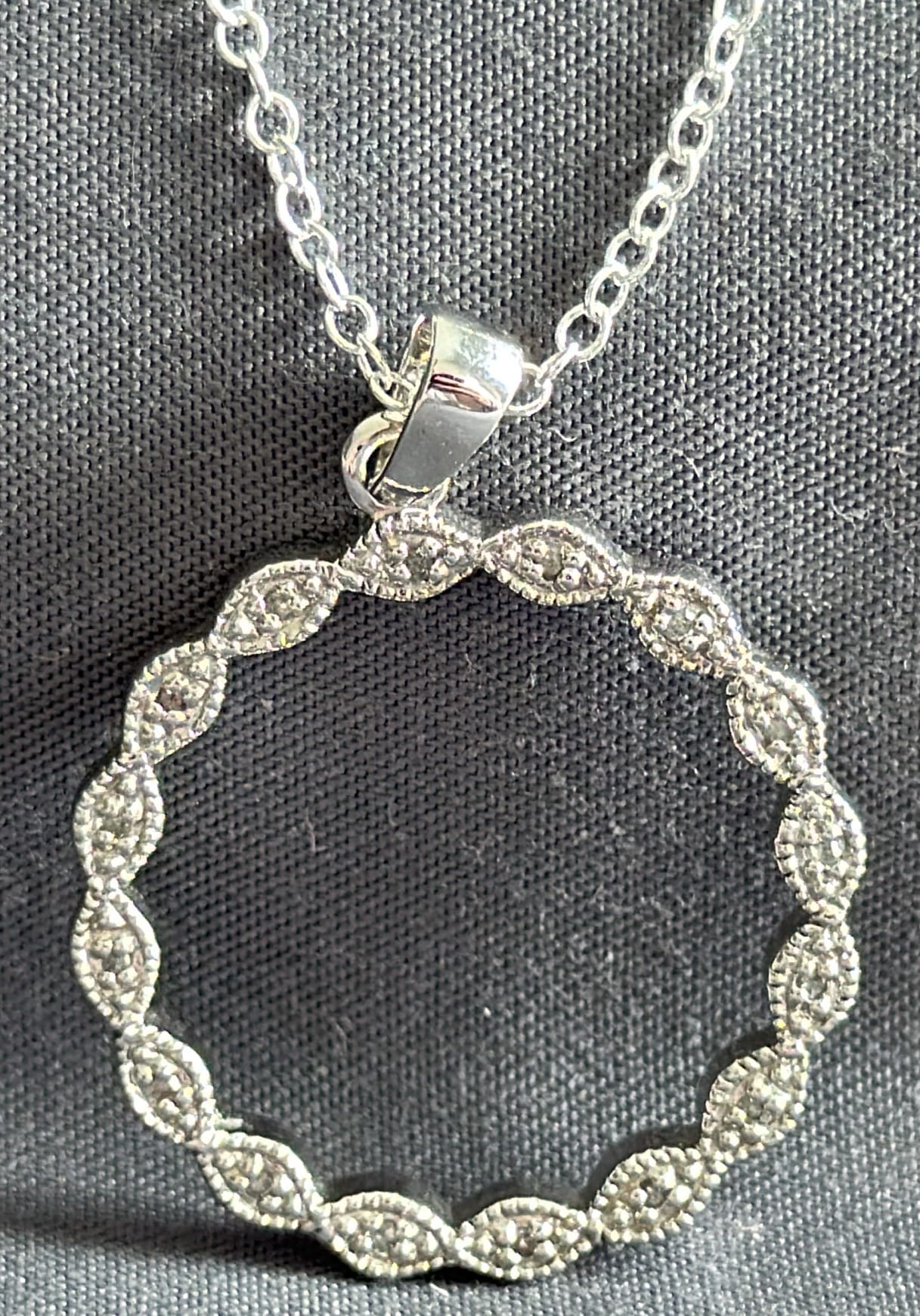 1060 .925 Silver and Diamond Pendant on 16 inch .925 Silver Chain