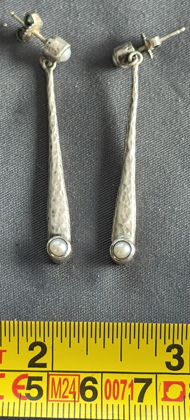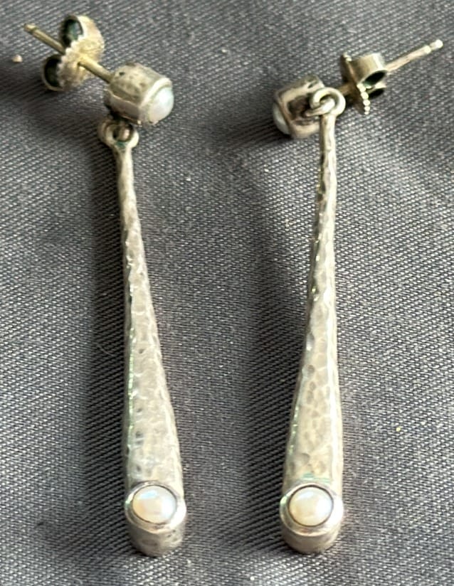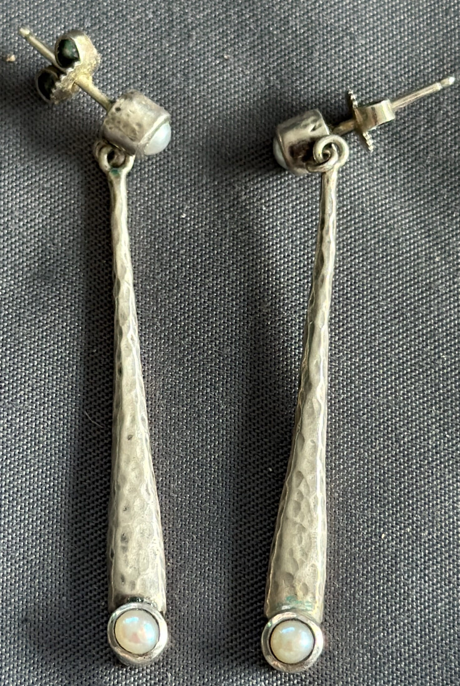 1062 Antique .925 Silver and Pearl Earrings Marked ZIA with Hallmark