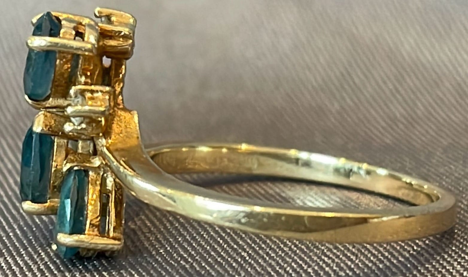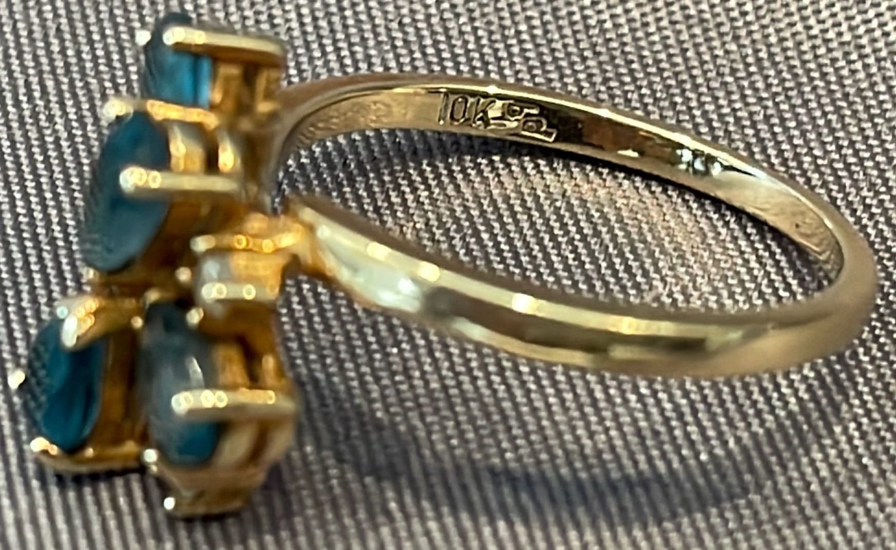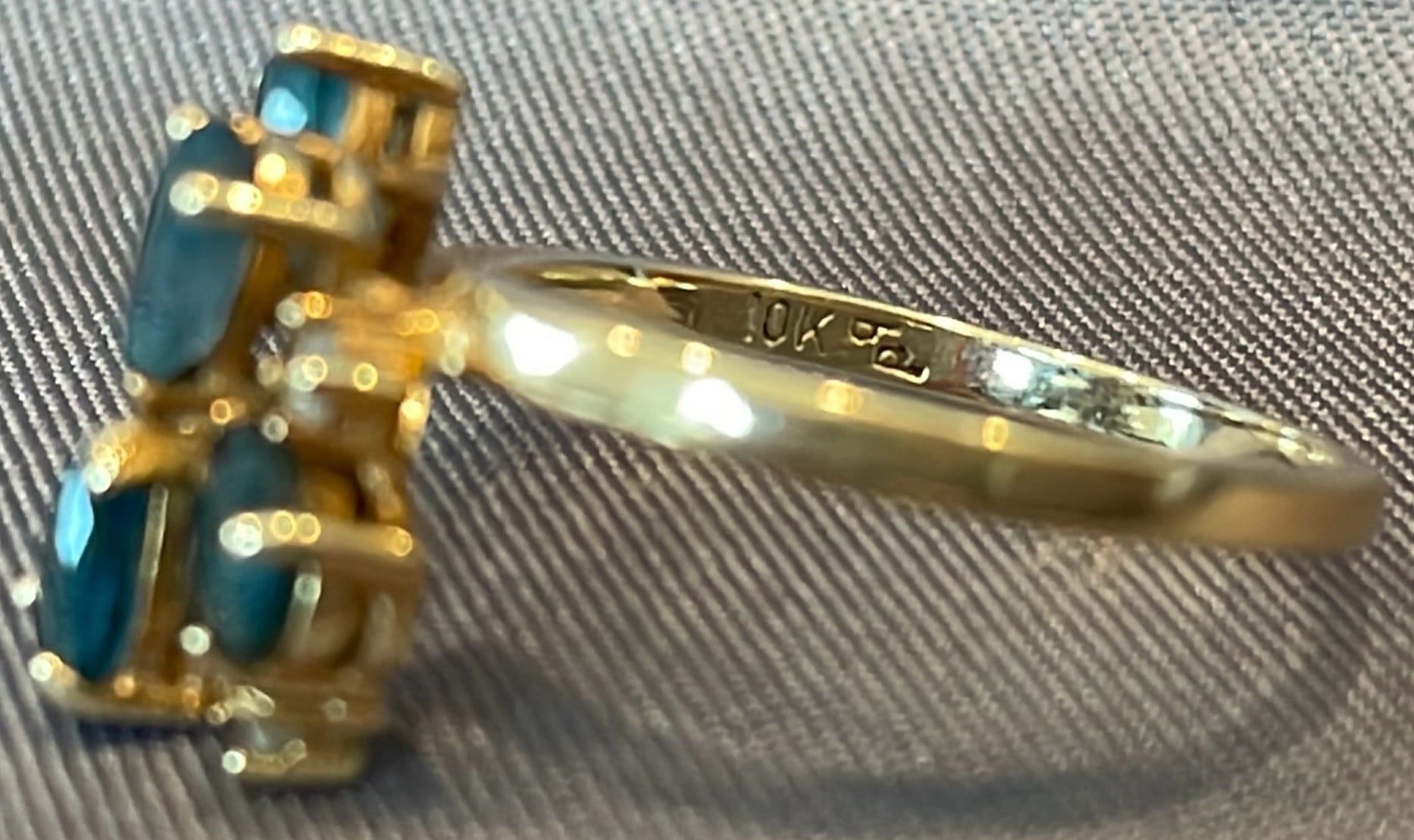 1066 1 Carat Total Weight London Blue Topaz and Diamond Ring, 10 Karat Gold, Stamped “BD”