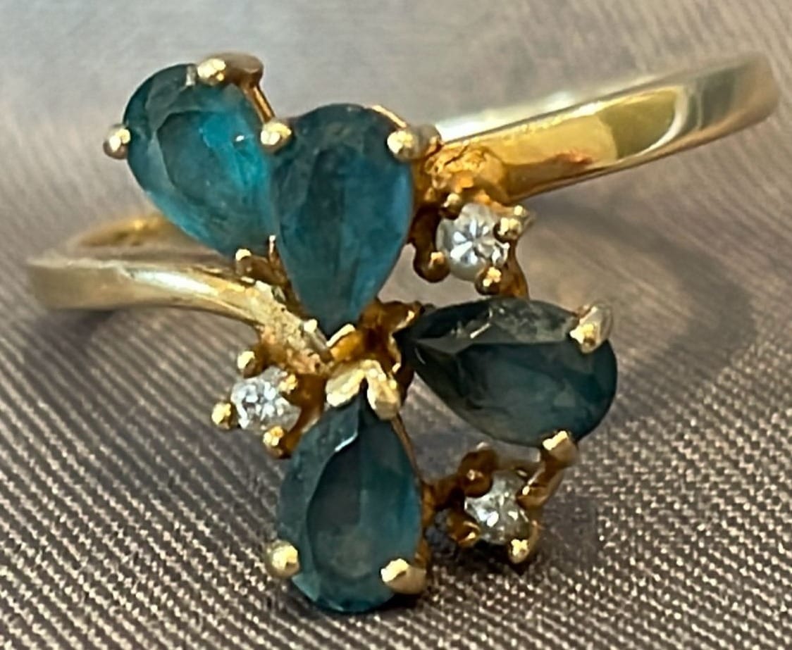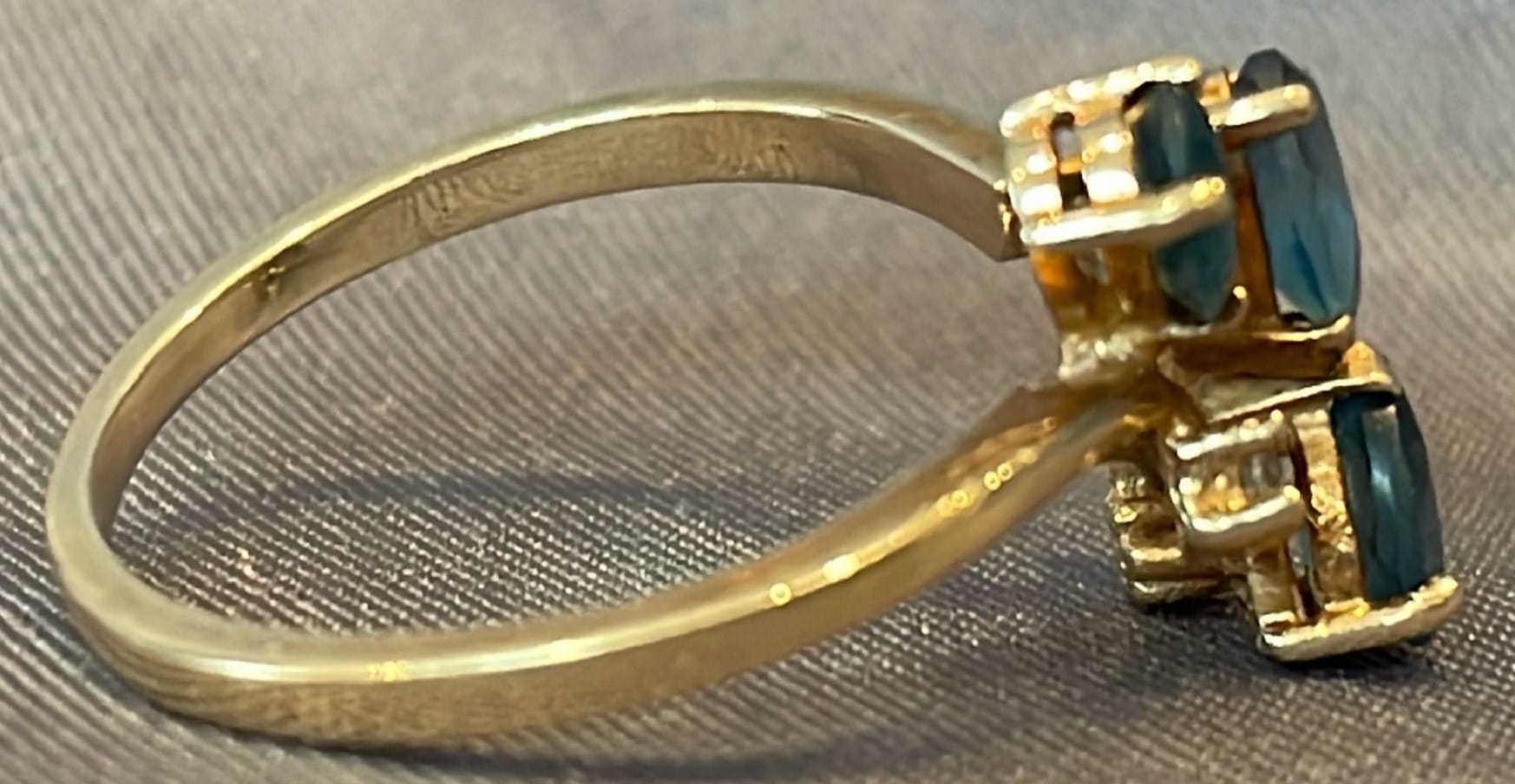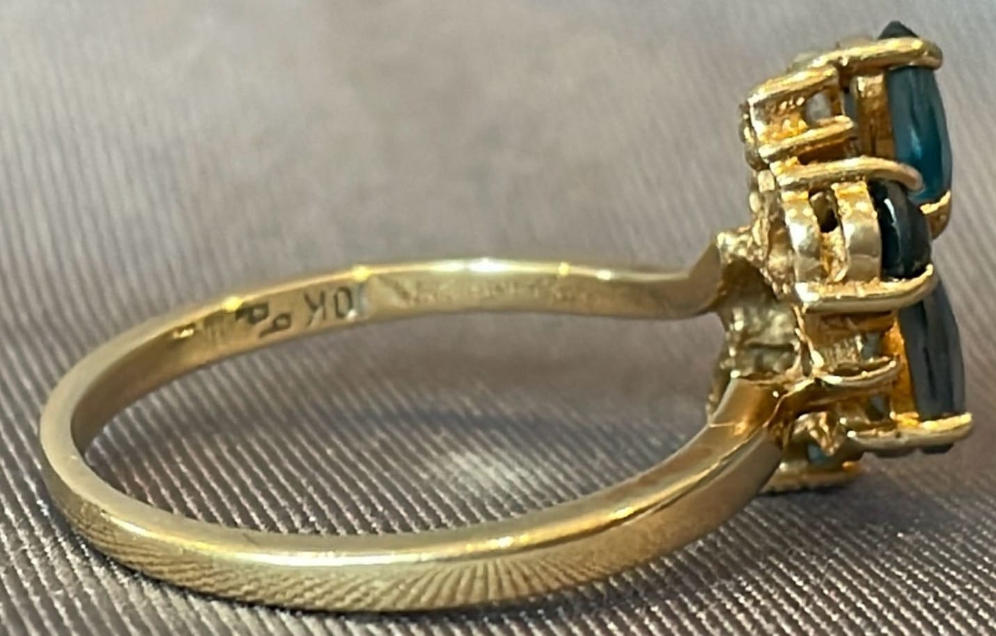 1066 1 Carat Total Weight London Blue Topaz and Diamond Ring, 10 Karat Gold, Stamped “BD”