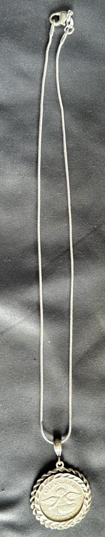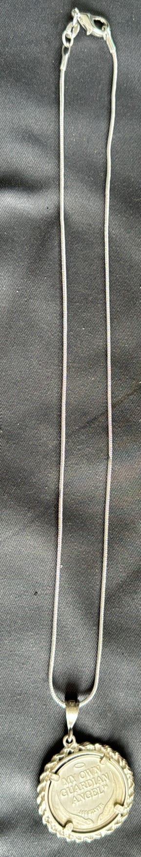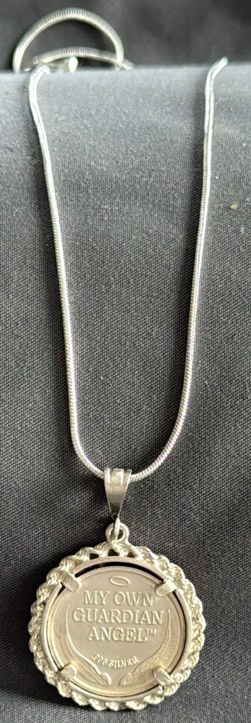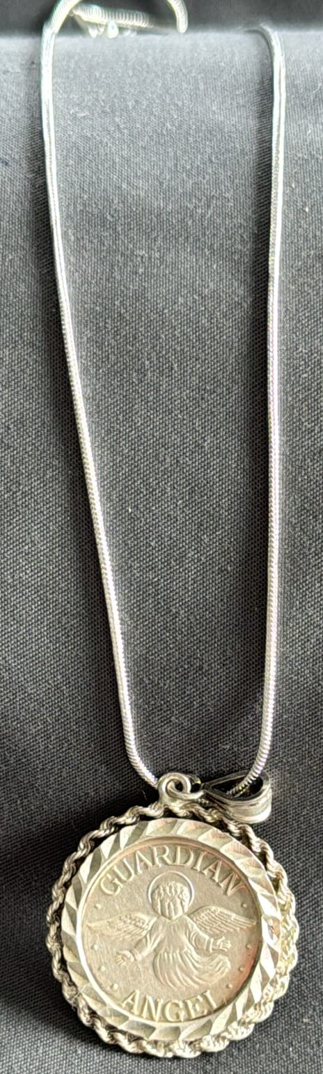 1067 Vintage .999 Silver Guardian Angel Pendant on 16 inch .925 Silver Chain- 8.9 Grams