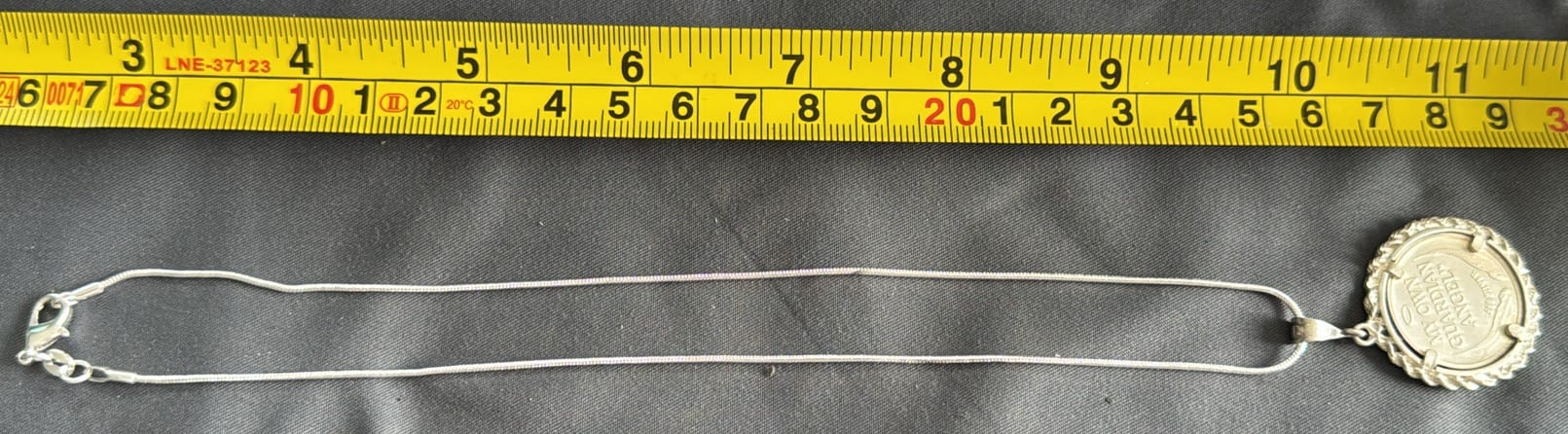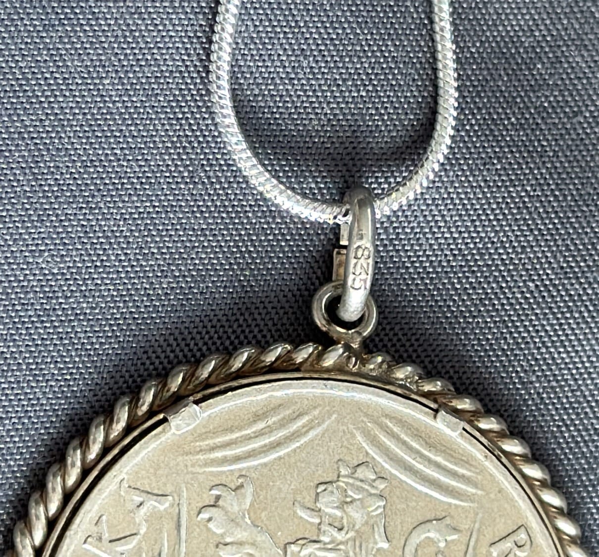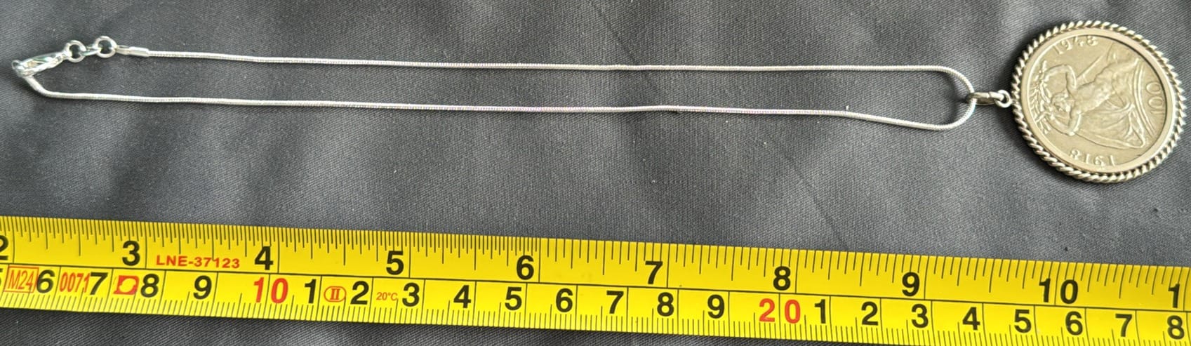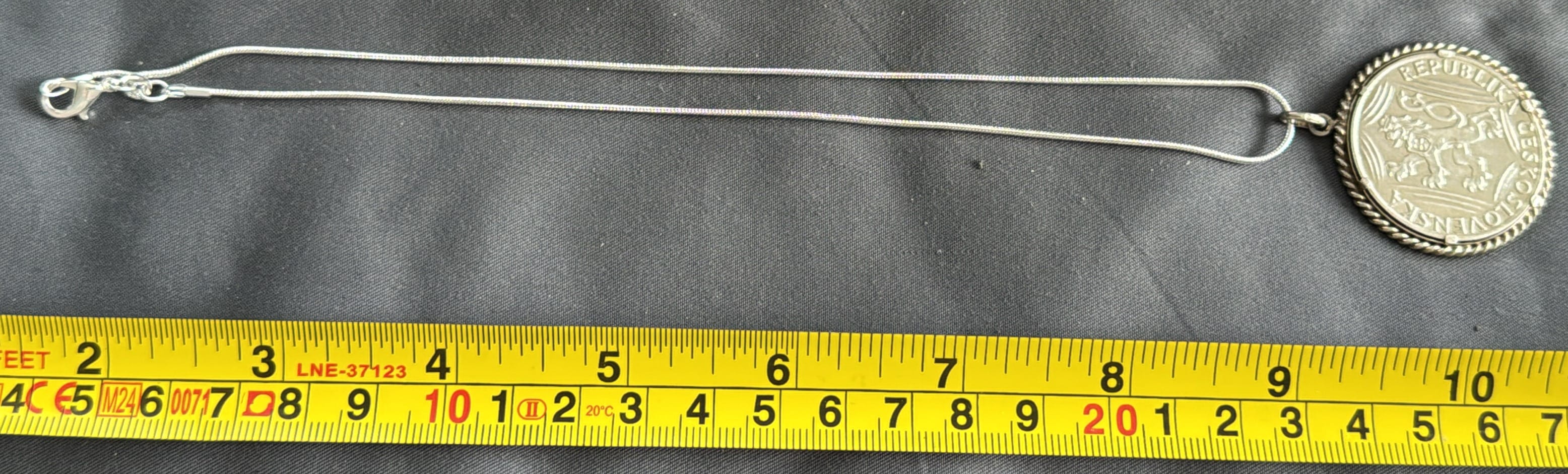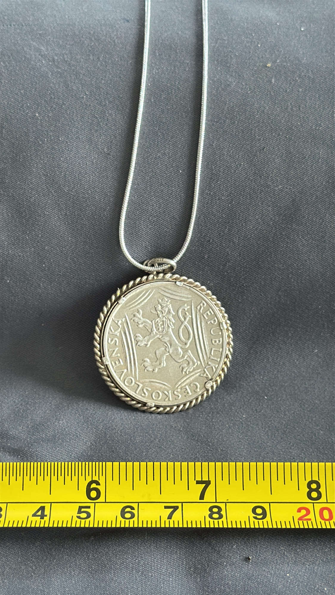 1074 1948 .500 Silver 100 Korun Czechoslovakian Coin Pendant with .835 Silver Bezel on 16 inch .925 Silver Chain