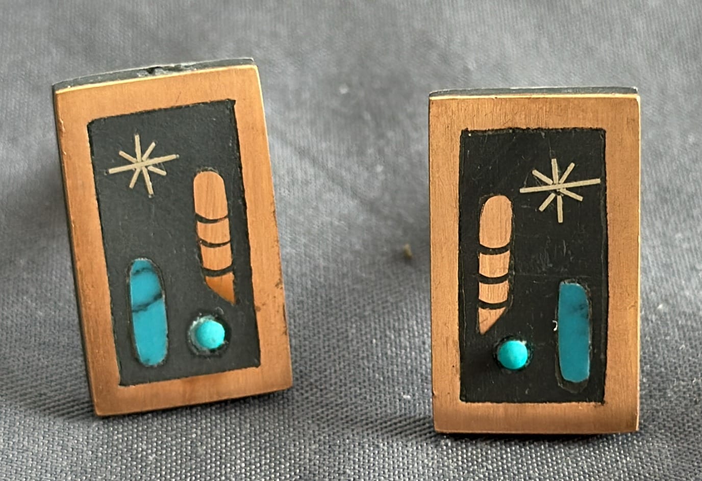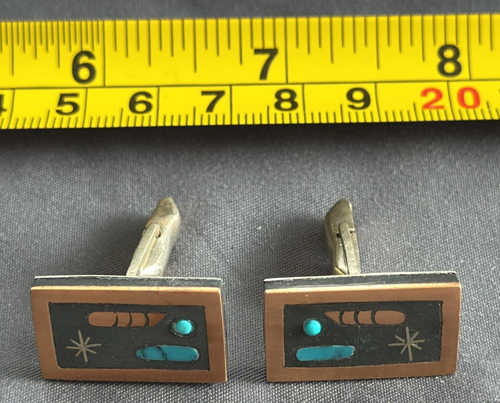 1069 Sterling and Turquoise Cufflinks Stamped Taxco Miquel
