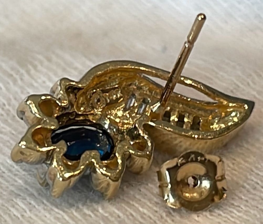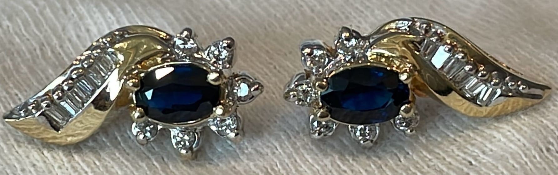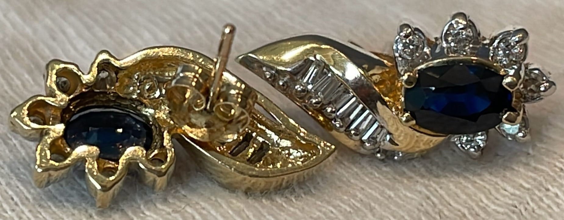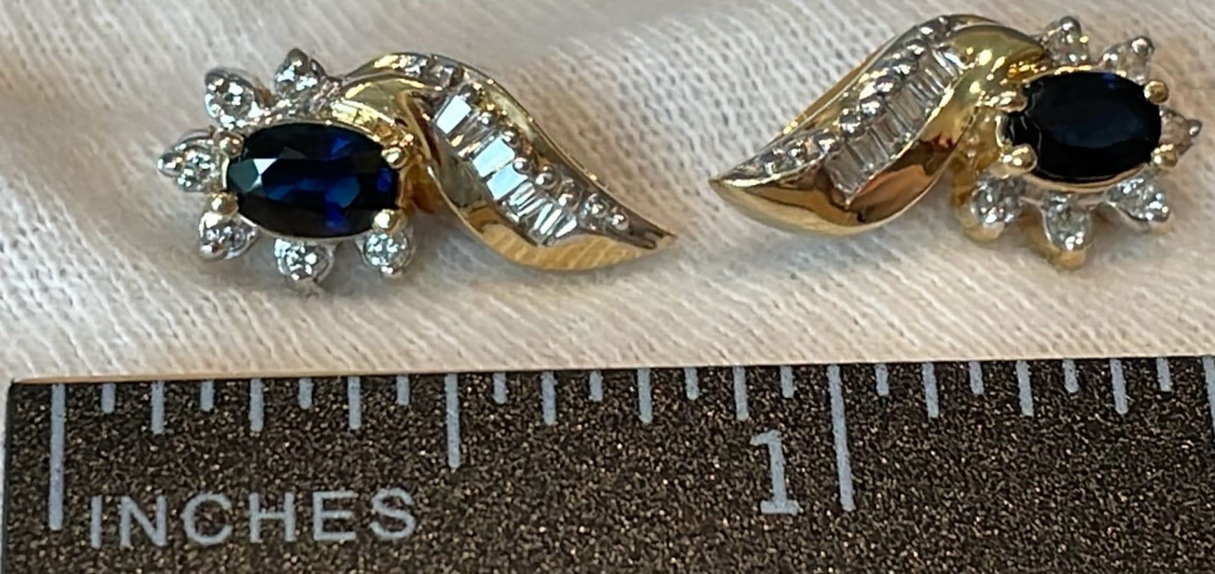 1070 14 Karat Gold 1 Carat Total Weight Sapphire and Diamond Earrings