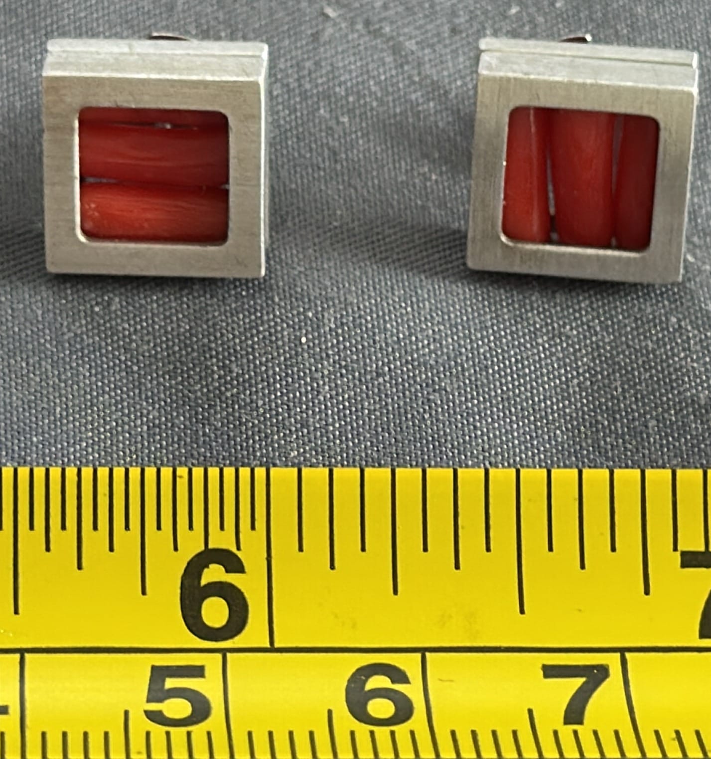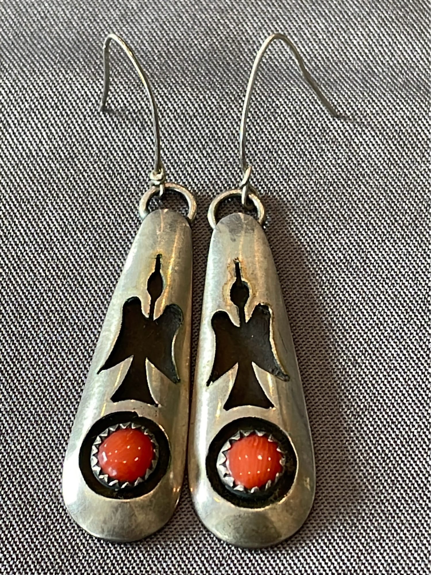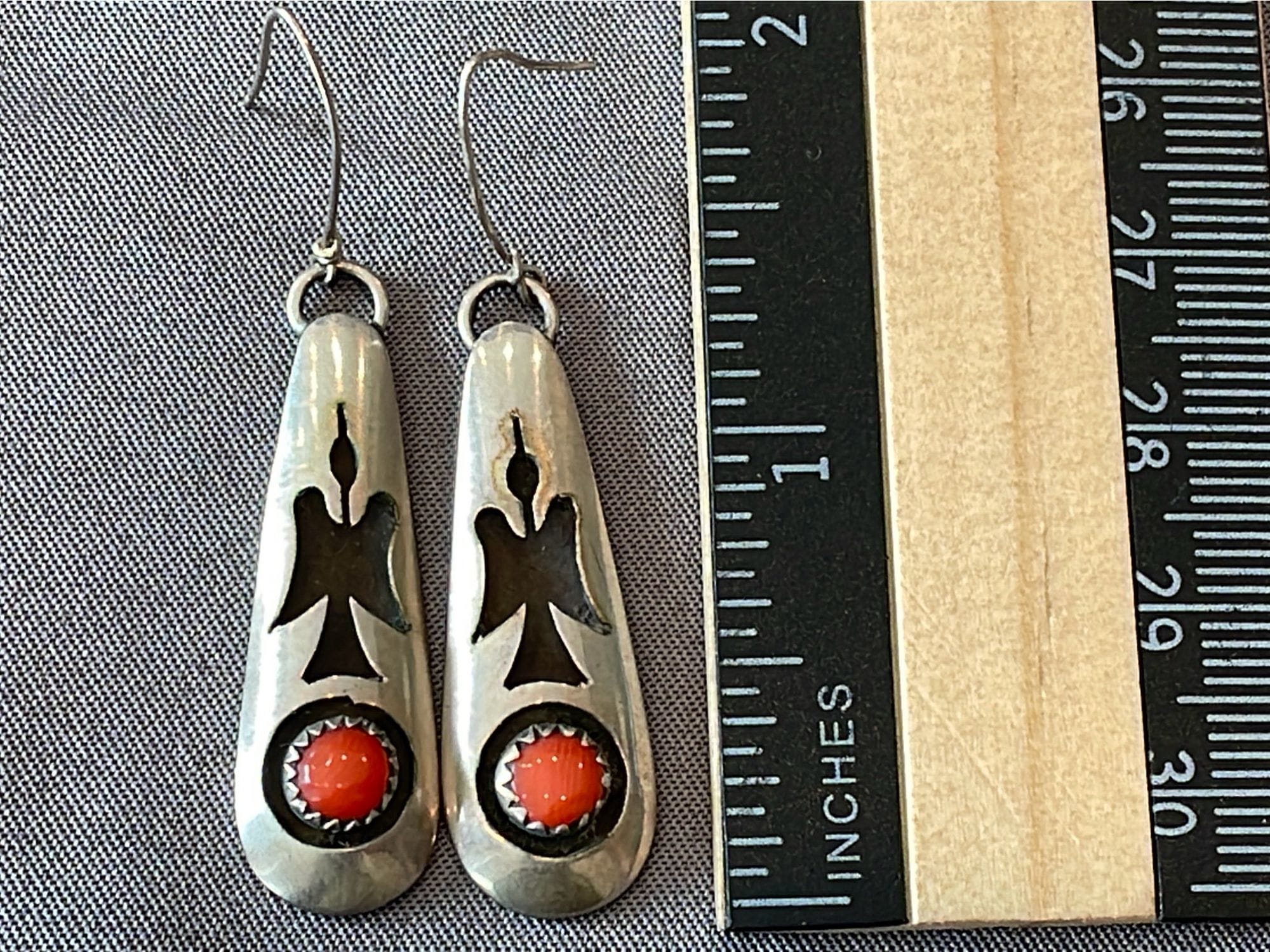 1155 Sterling Silver Navajo Coral A/B Earrings, unmarked
