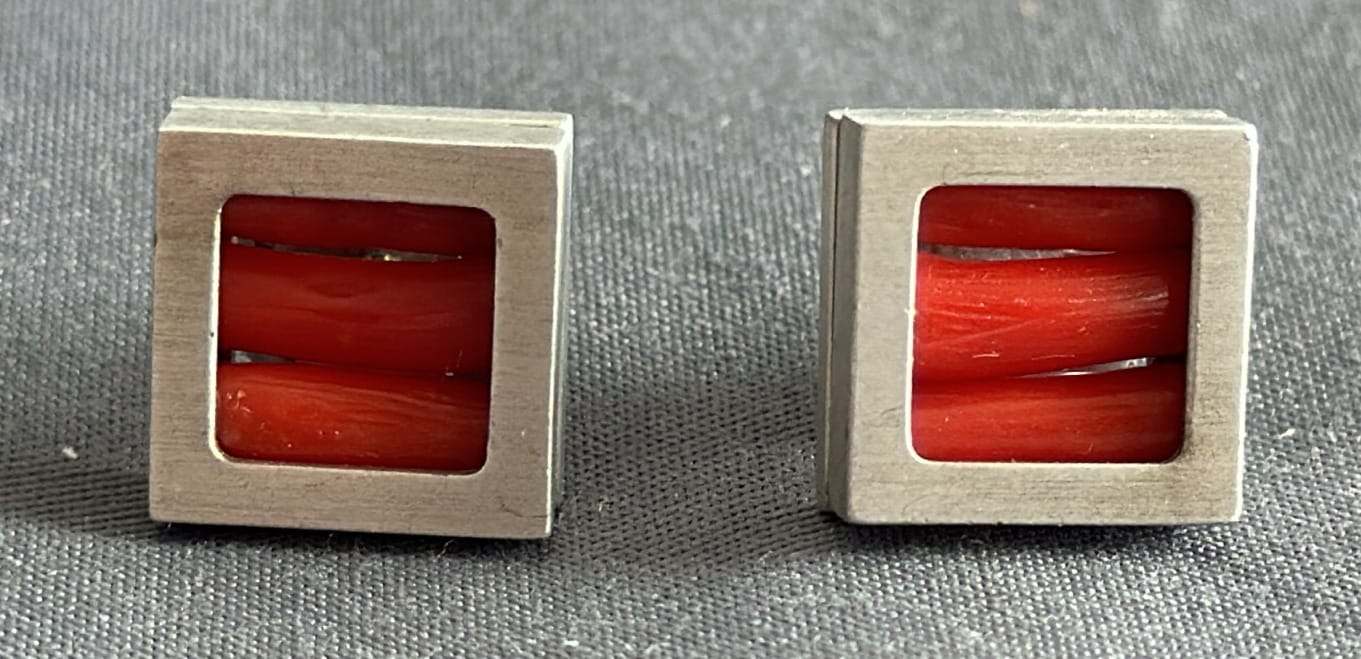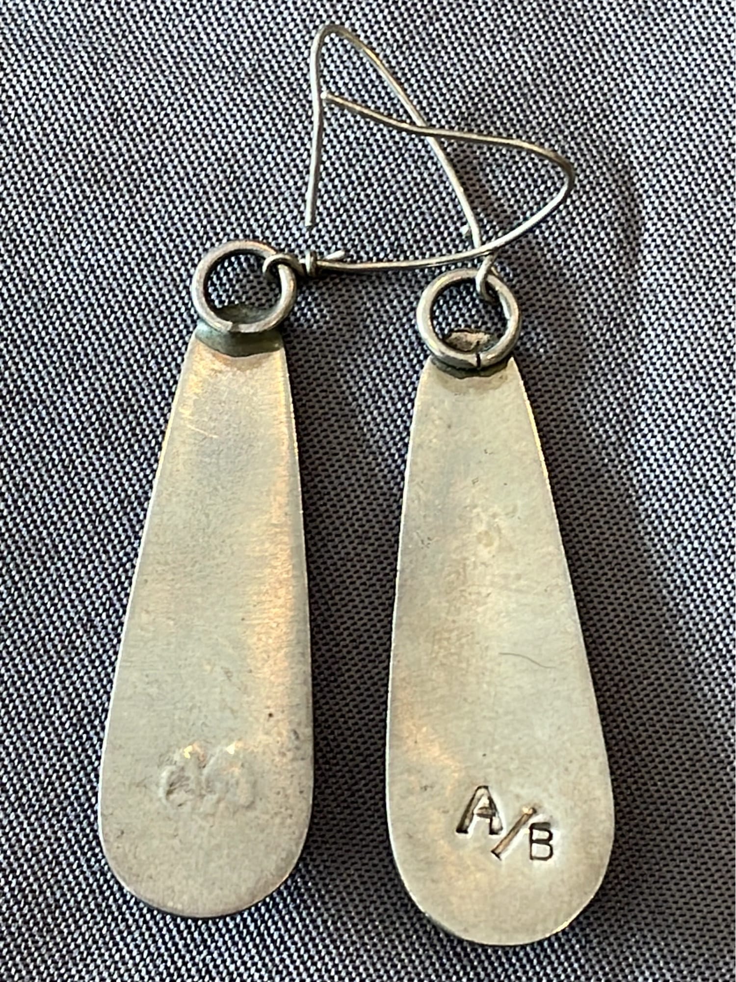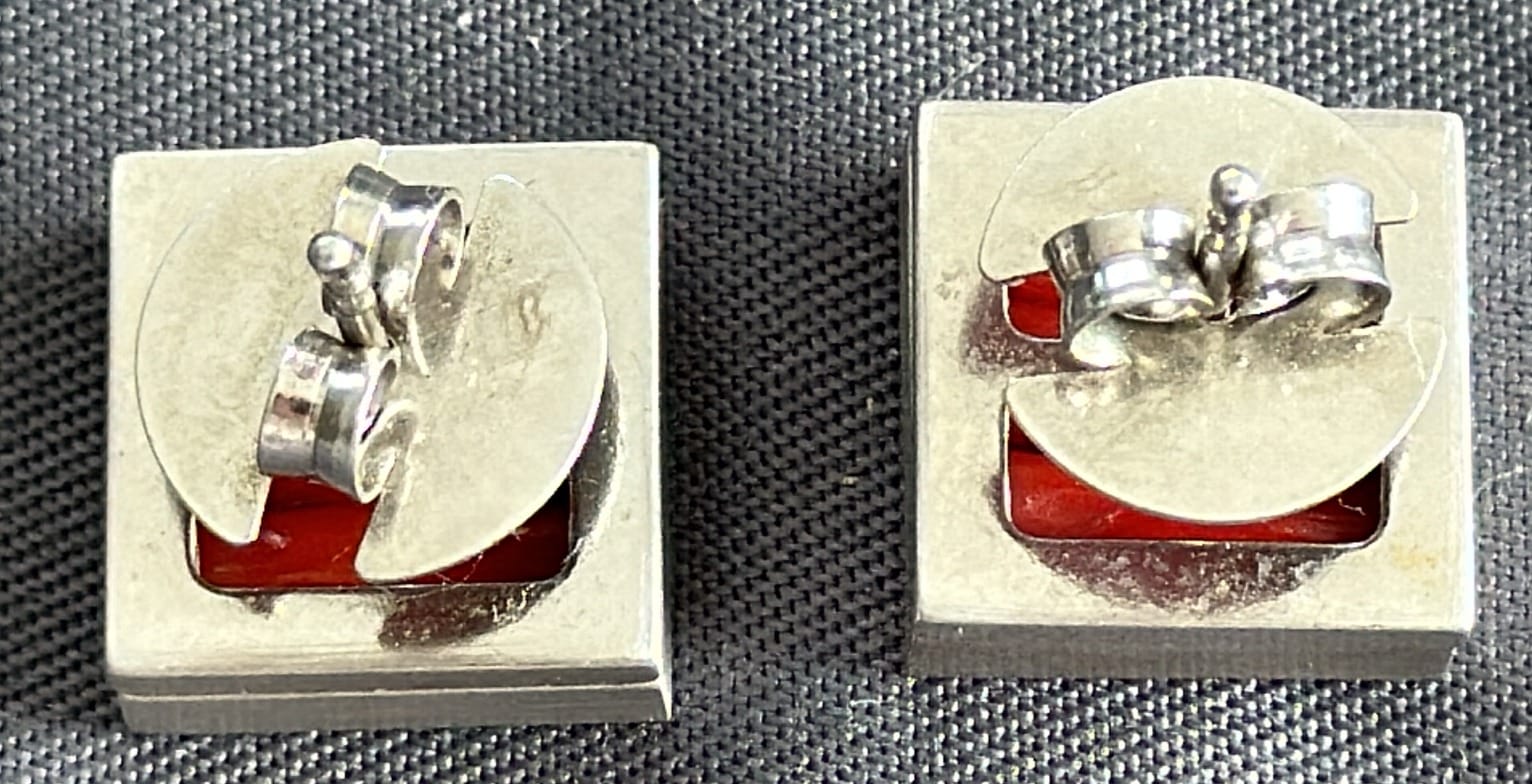 1155 Sterling Silver Navajo Coral A/B Earrings, unmarked