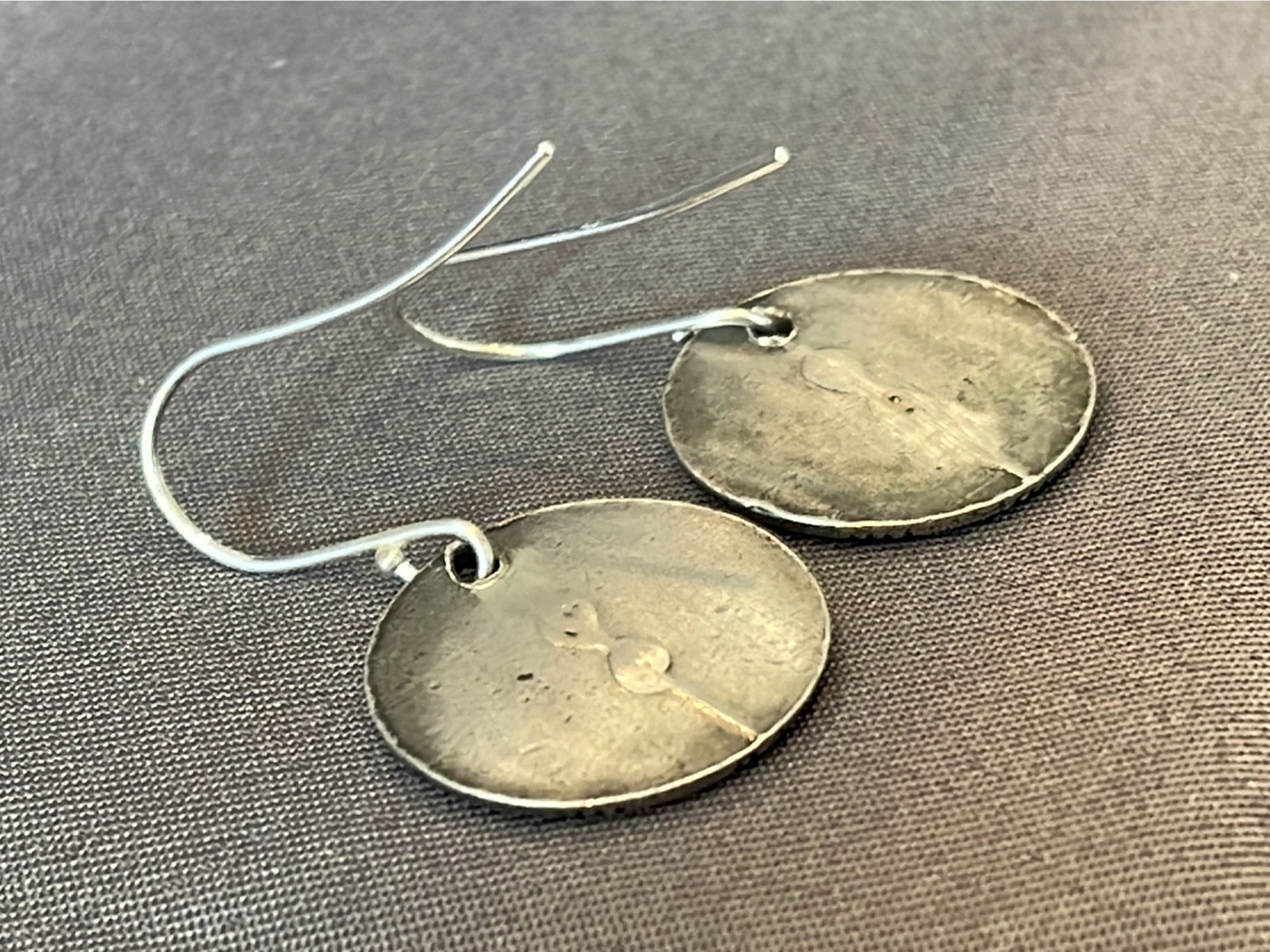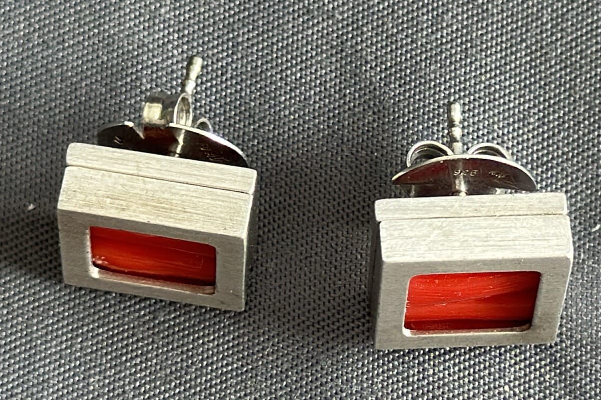 1071 .925 Silver and Red Center Earrings Marked FD AUT