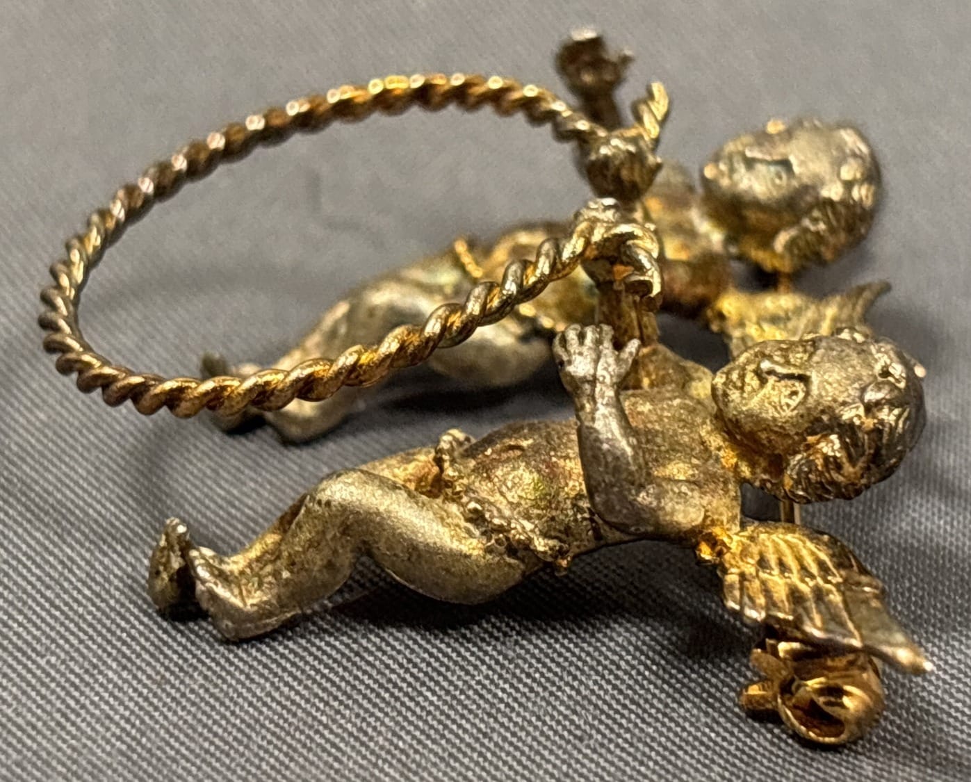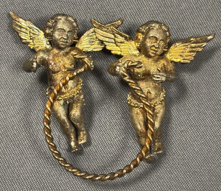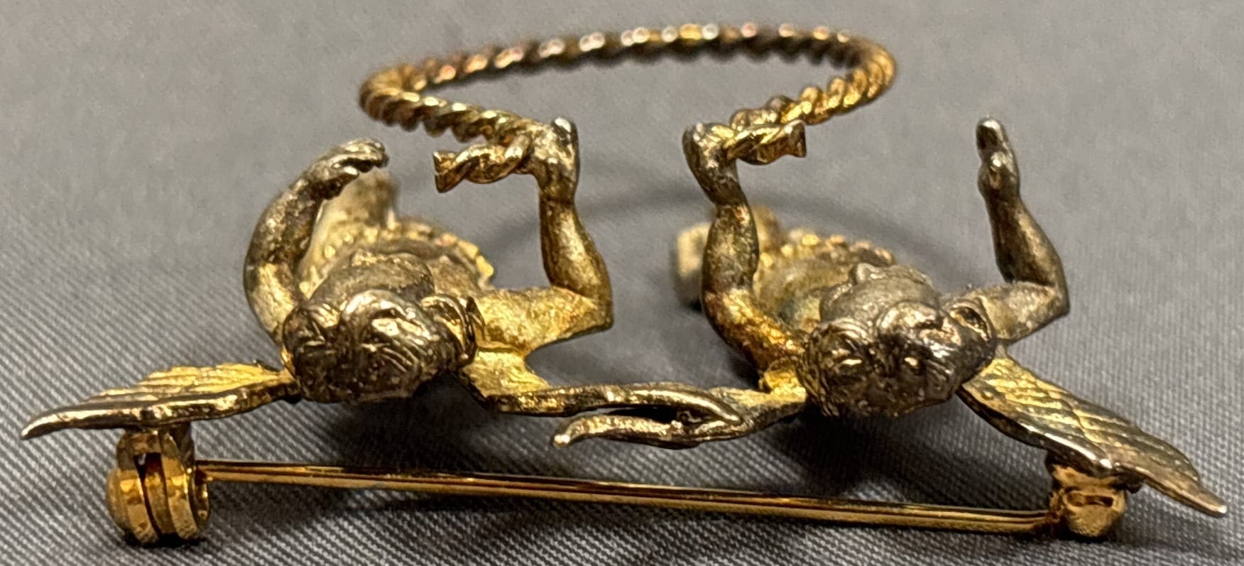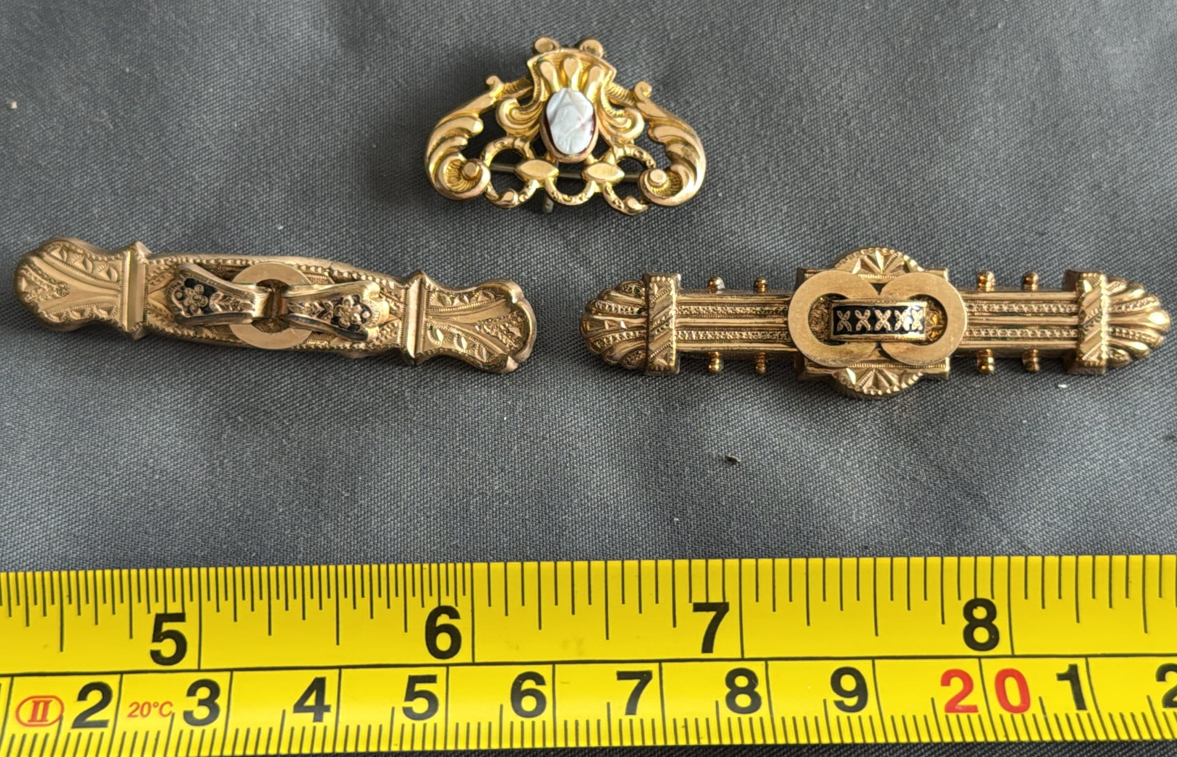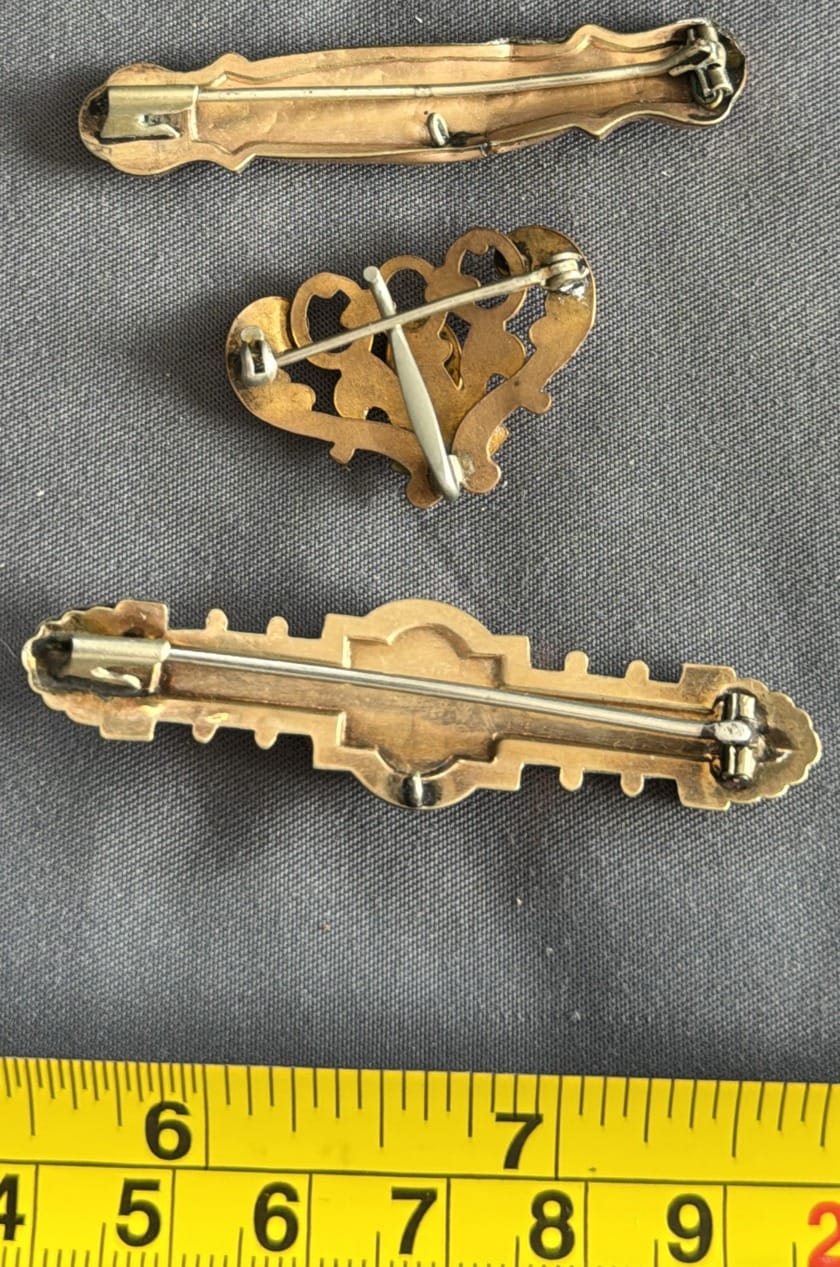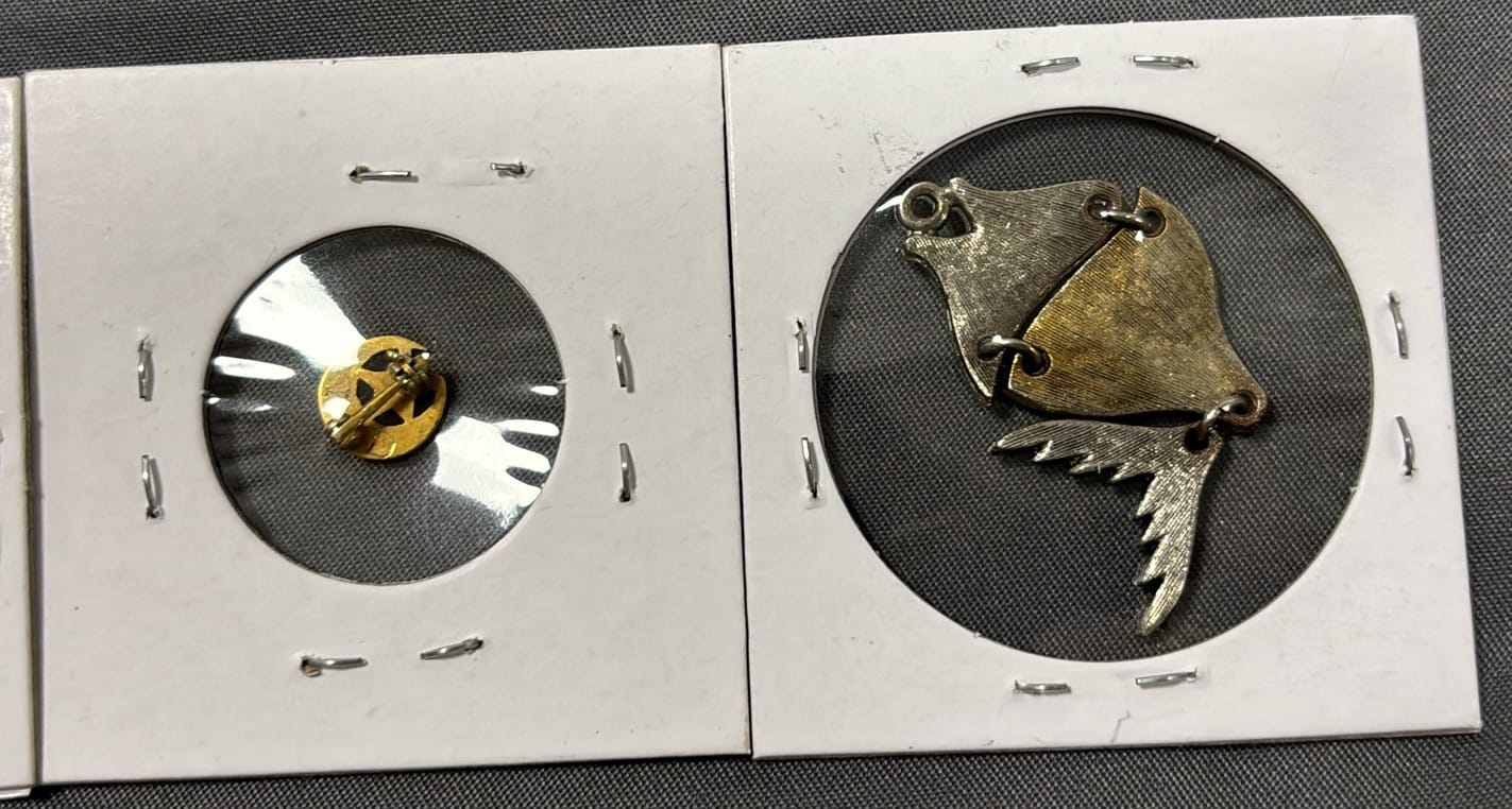 1122 2 Gold Sorority Pins Unmarked, 1 Metal Fish Pin