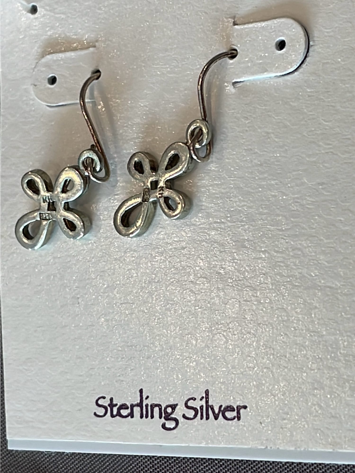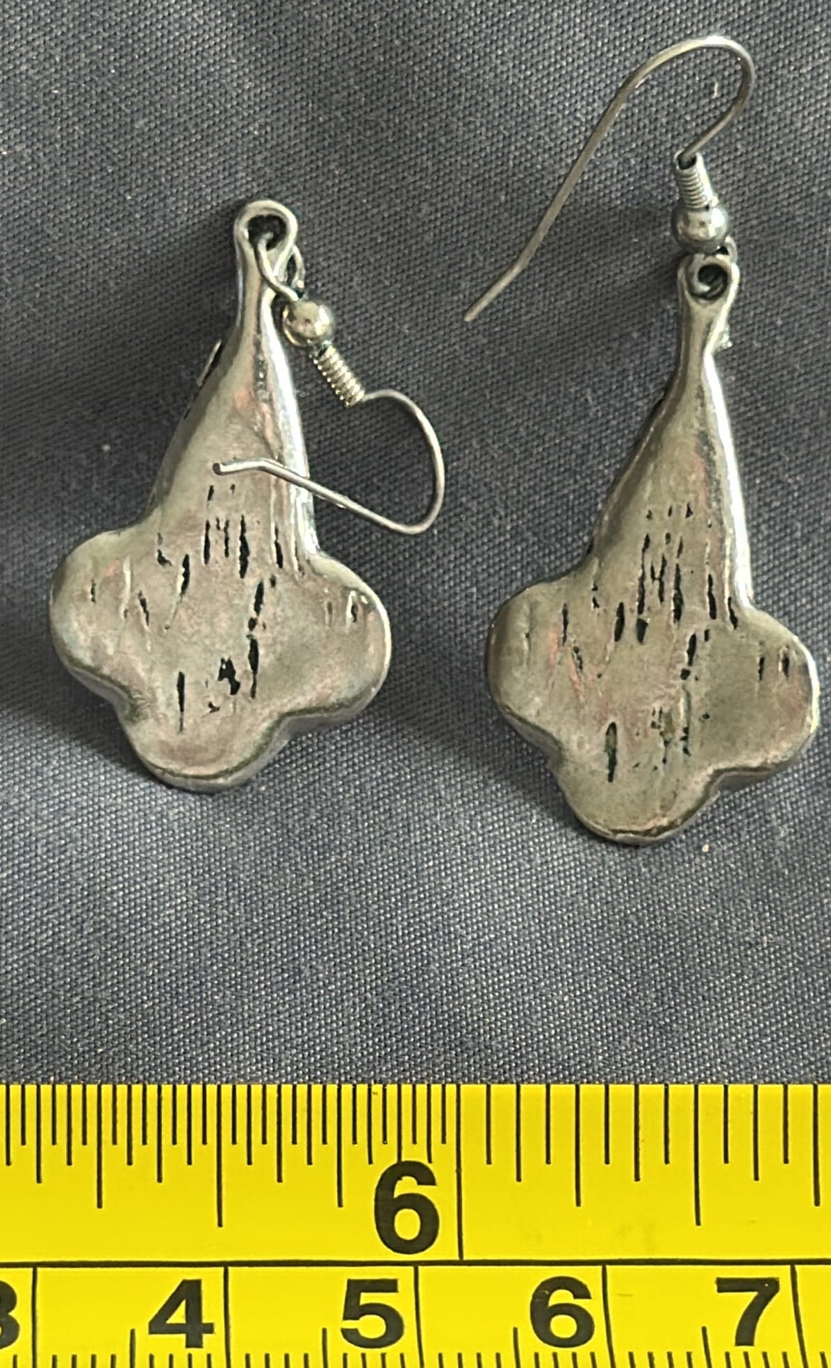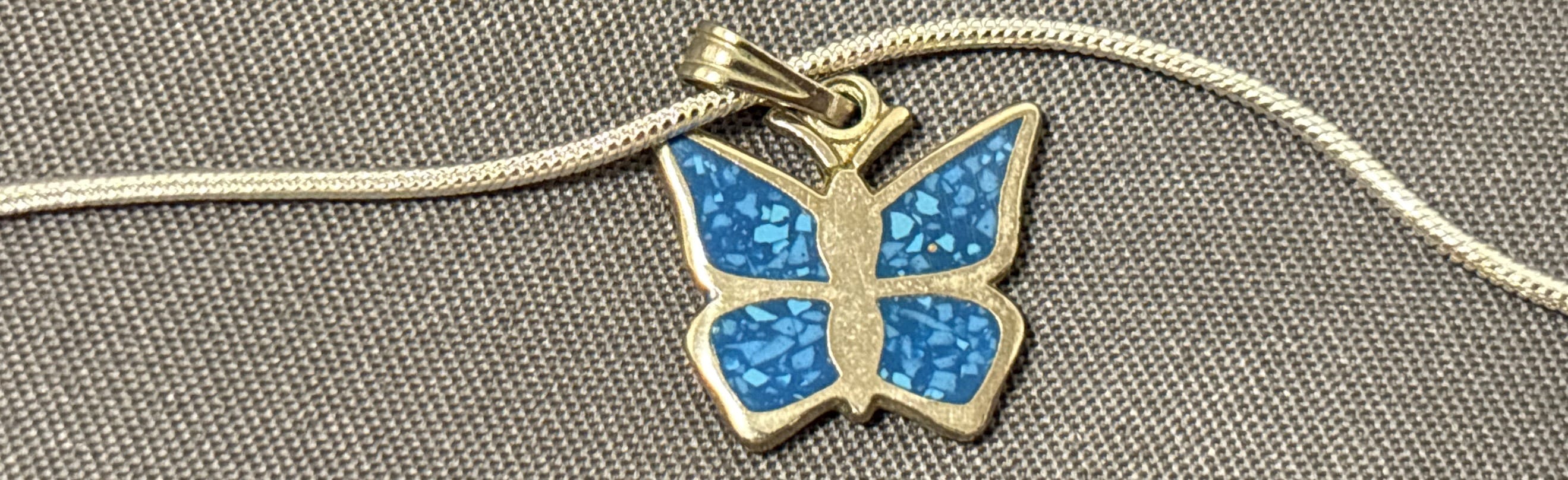 1086 Silver and Turquoise Unmarked Butterfly Earrings and Pendant Set on 16 inch .925 Silver Chain