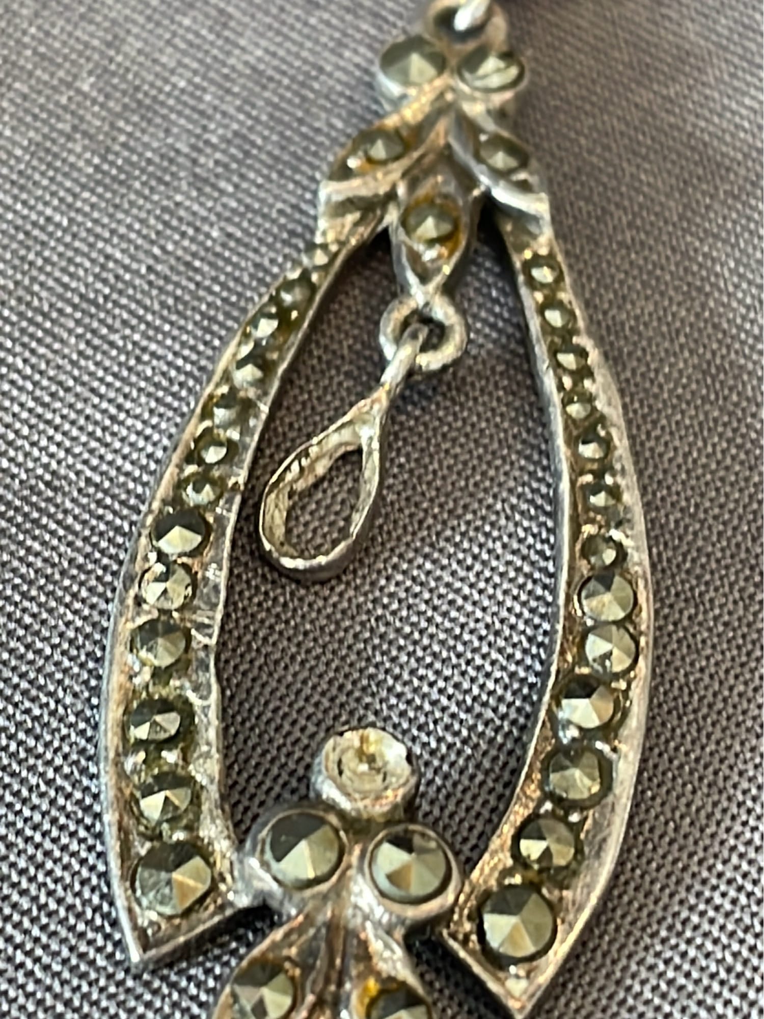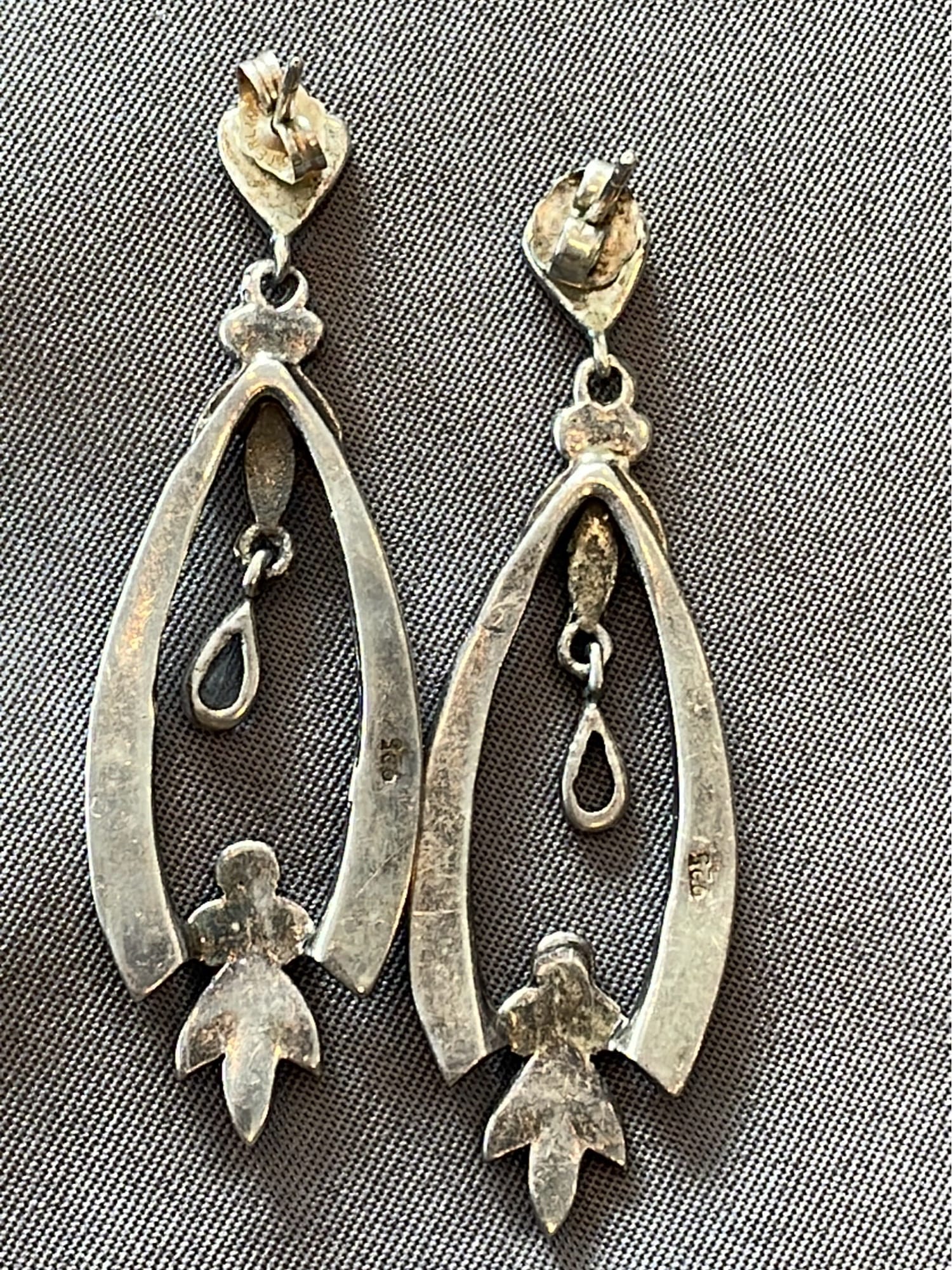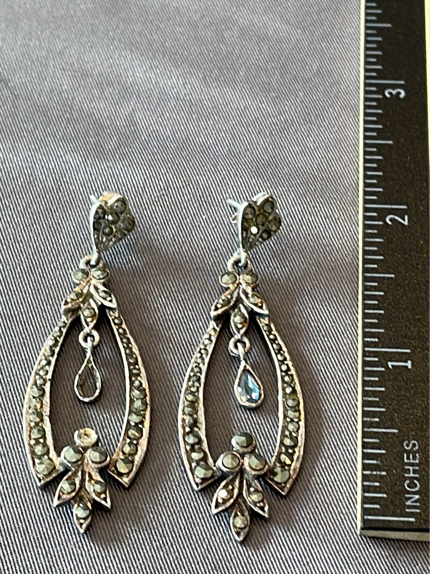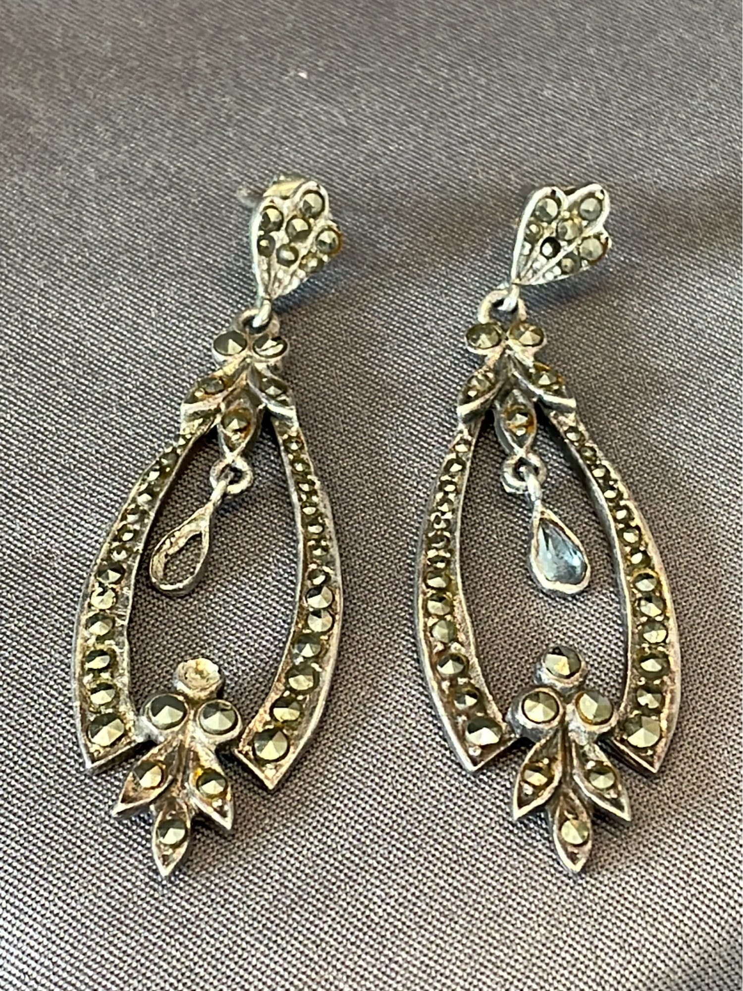 1156 .925 Silver Marcasite Earrings (missing faceted blue stone)