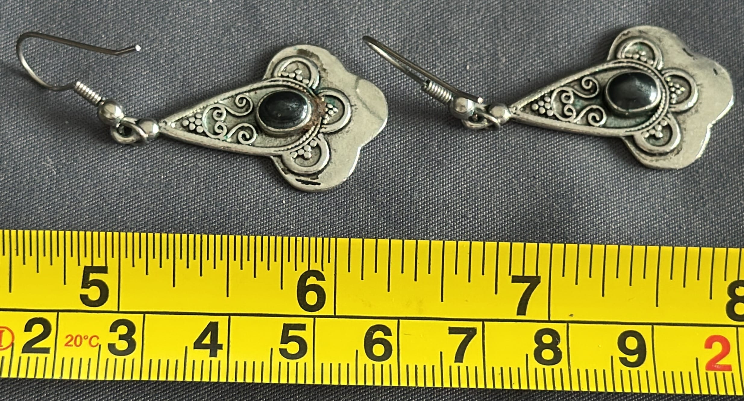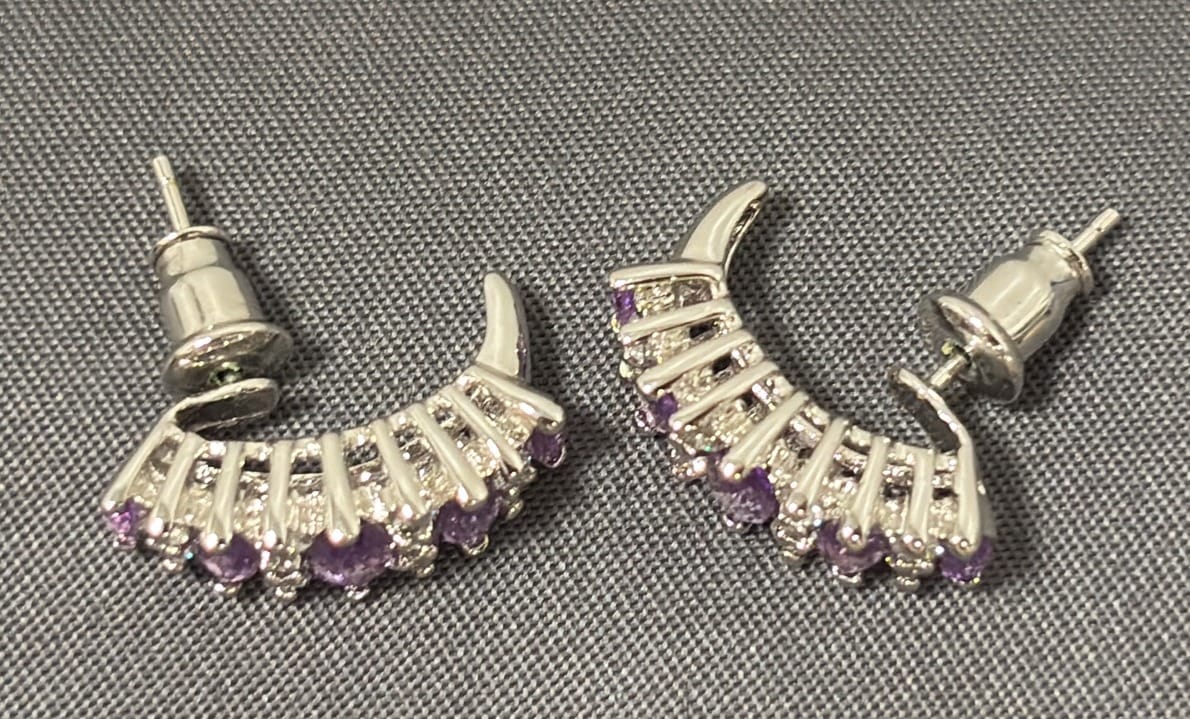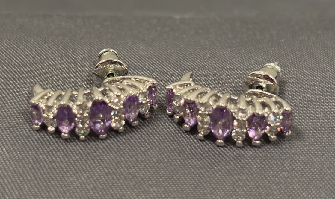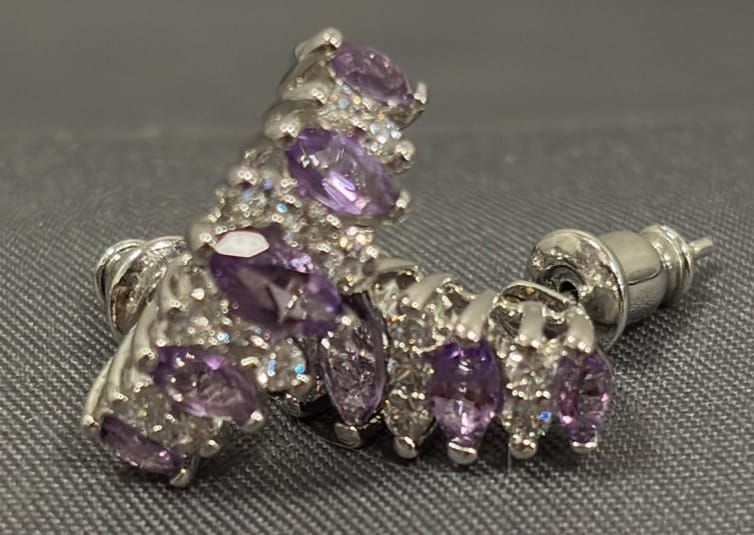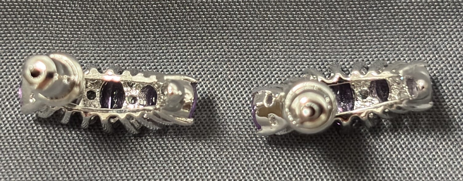 1156 .925 Silver Marcasite Earrings (missing faceted blue stone)