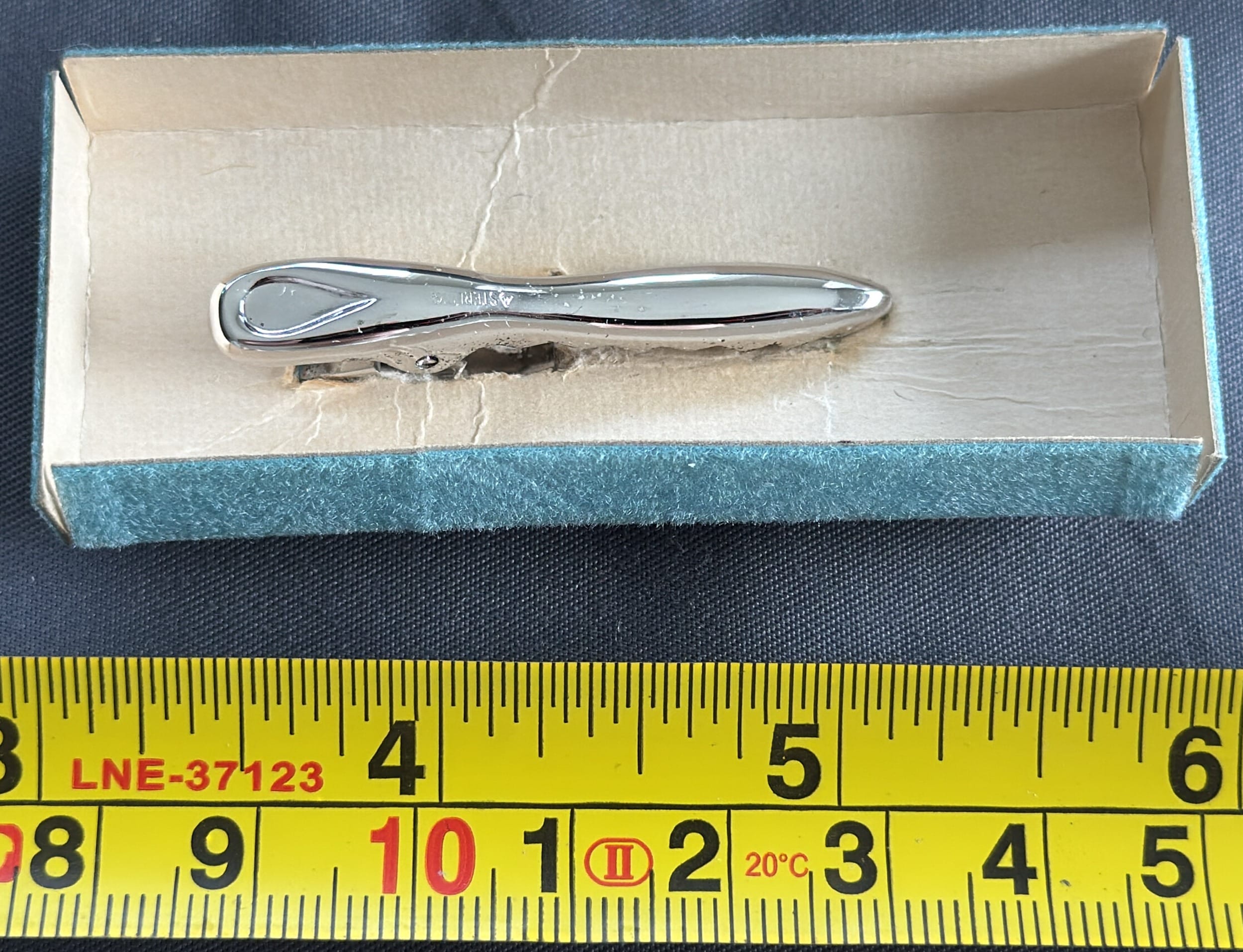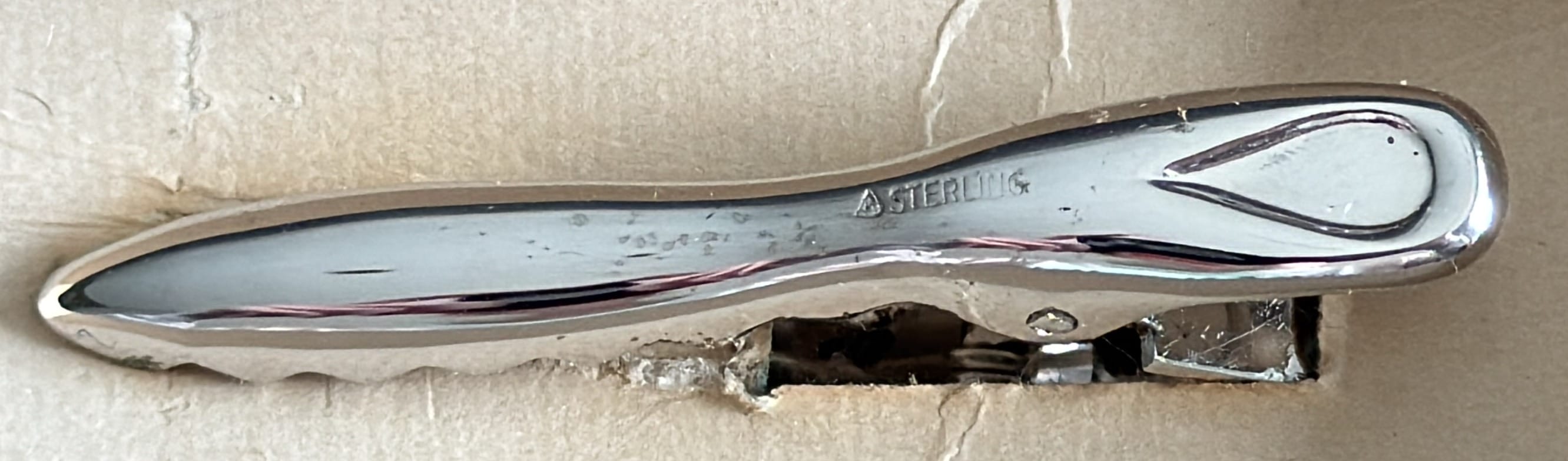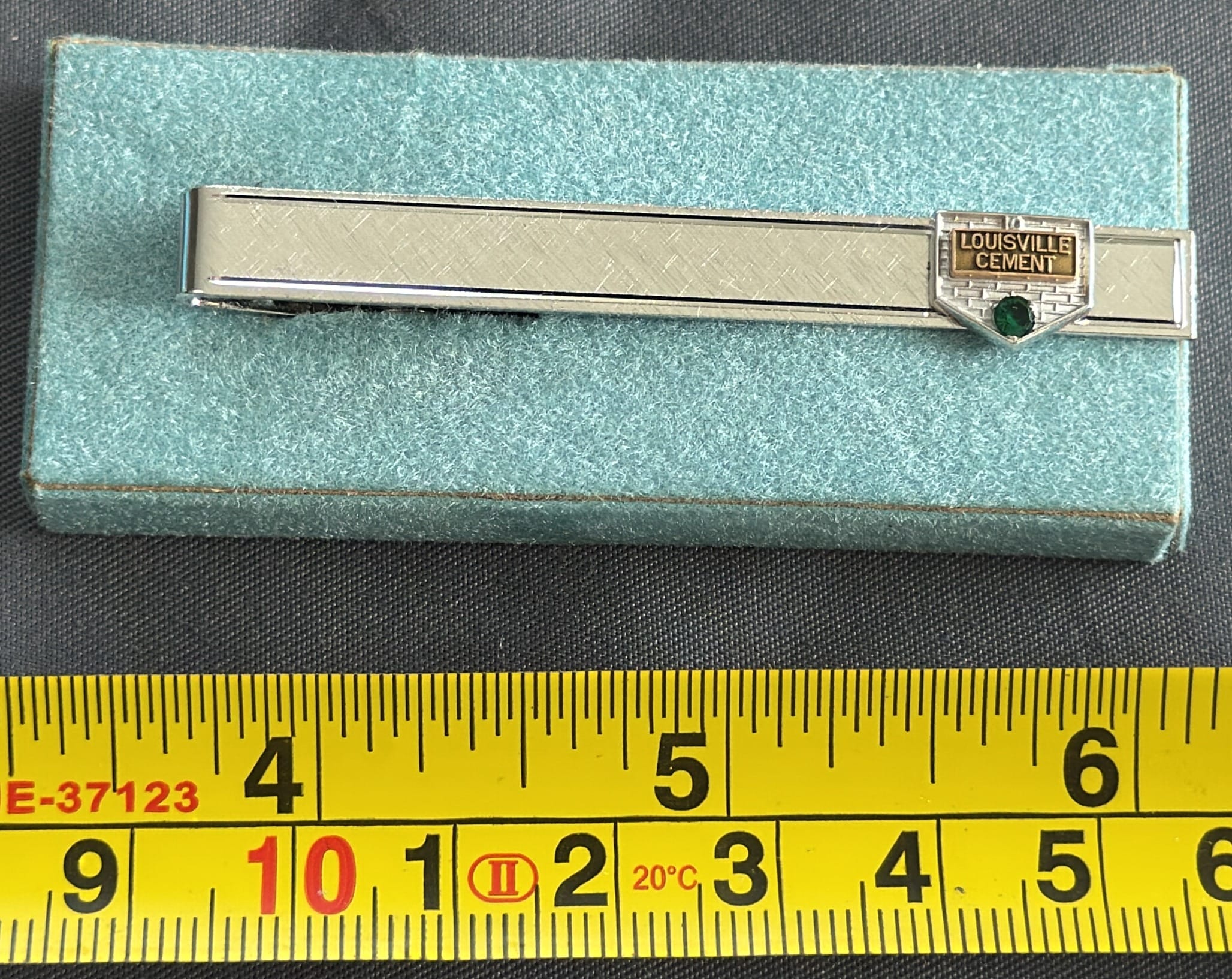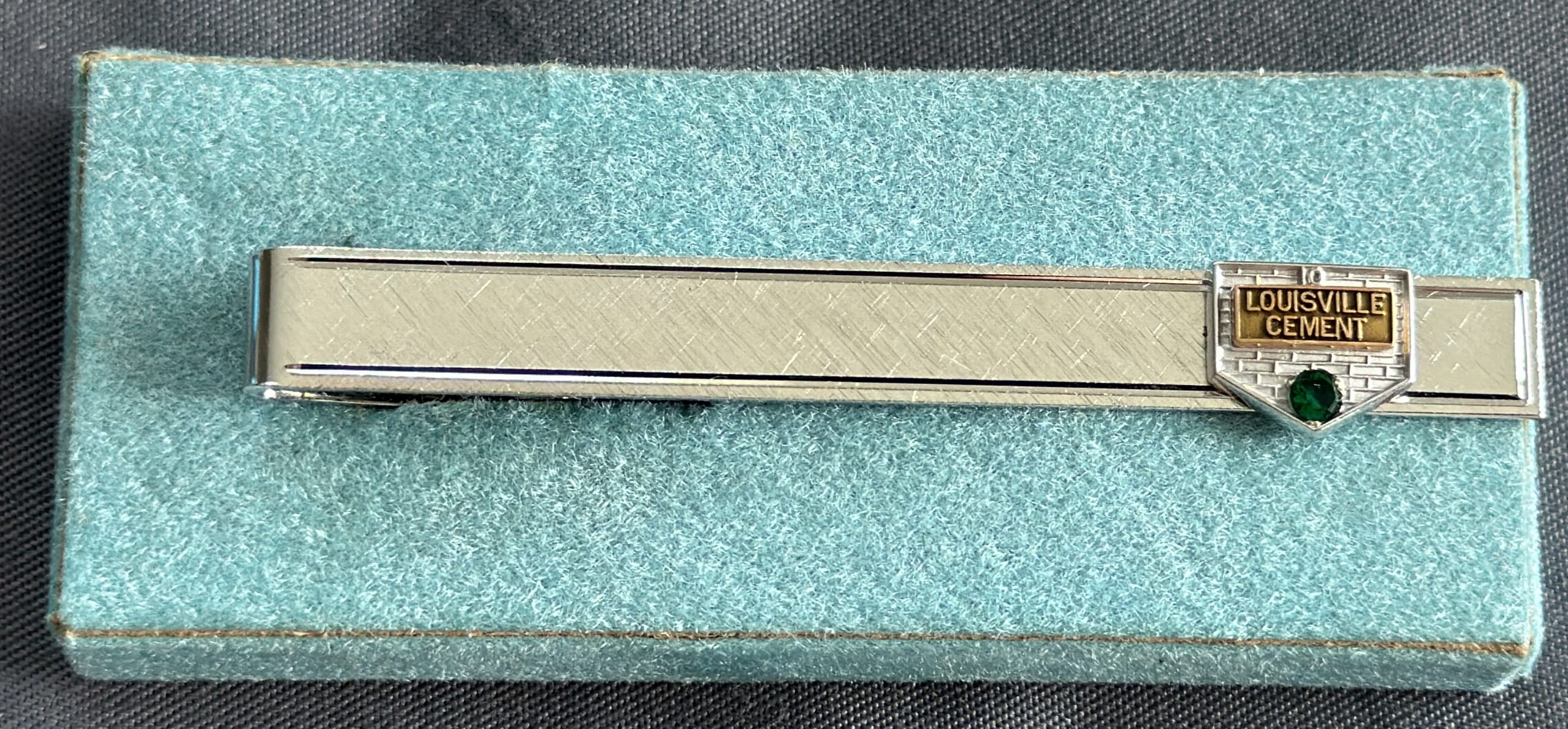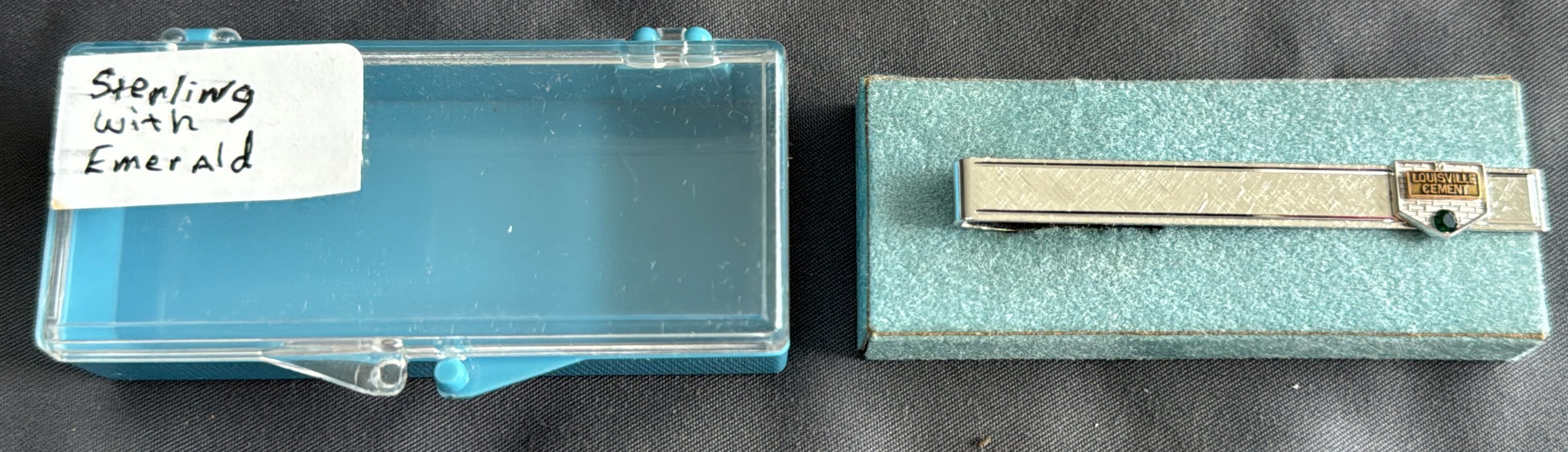 1076 Sterling and Emerald Louisville Cement Tie Clip with Box