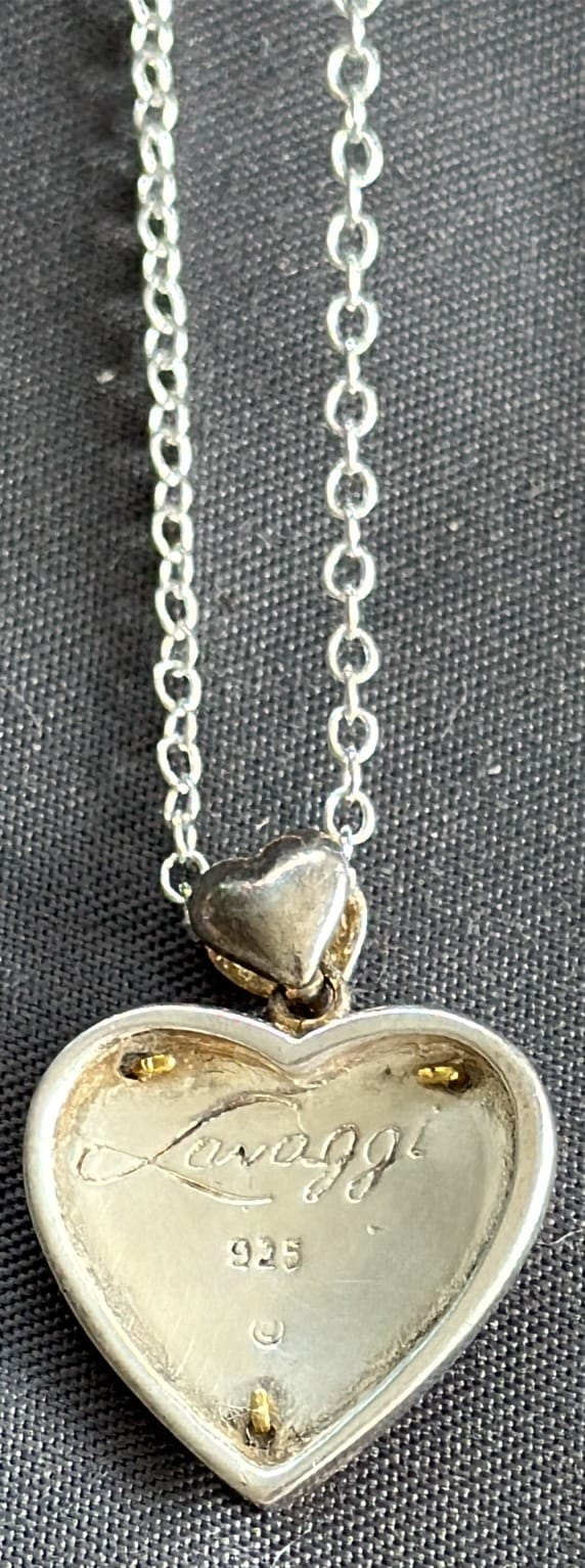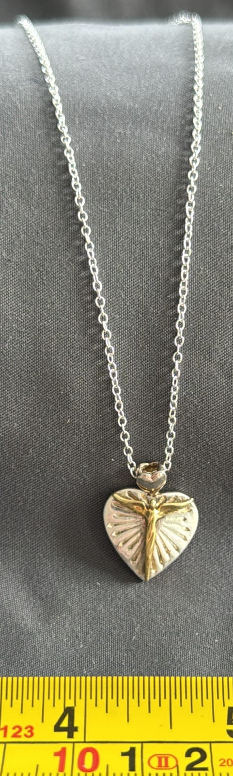 1077 Vintage Lavaggi .925 Silver Angel of Hope Heart Pendant on 16 inch .925 Chain