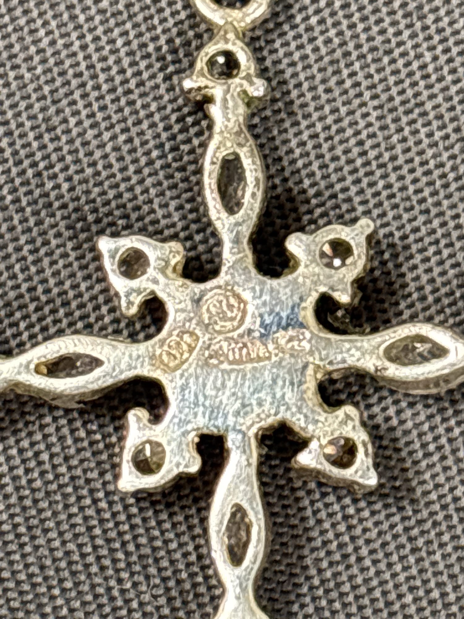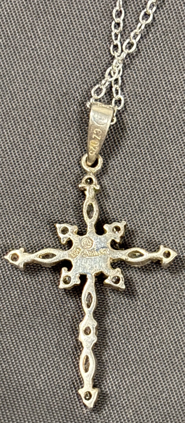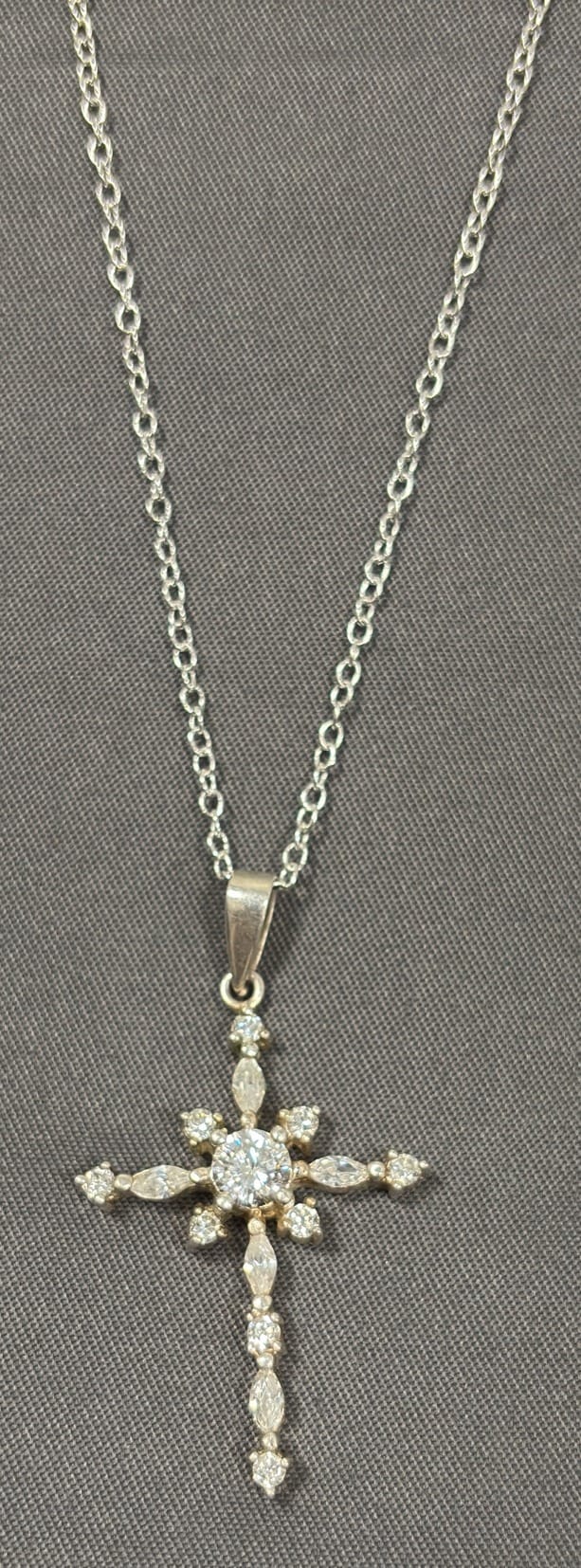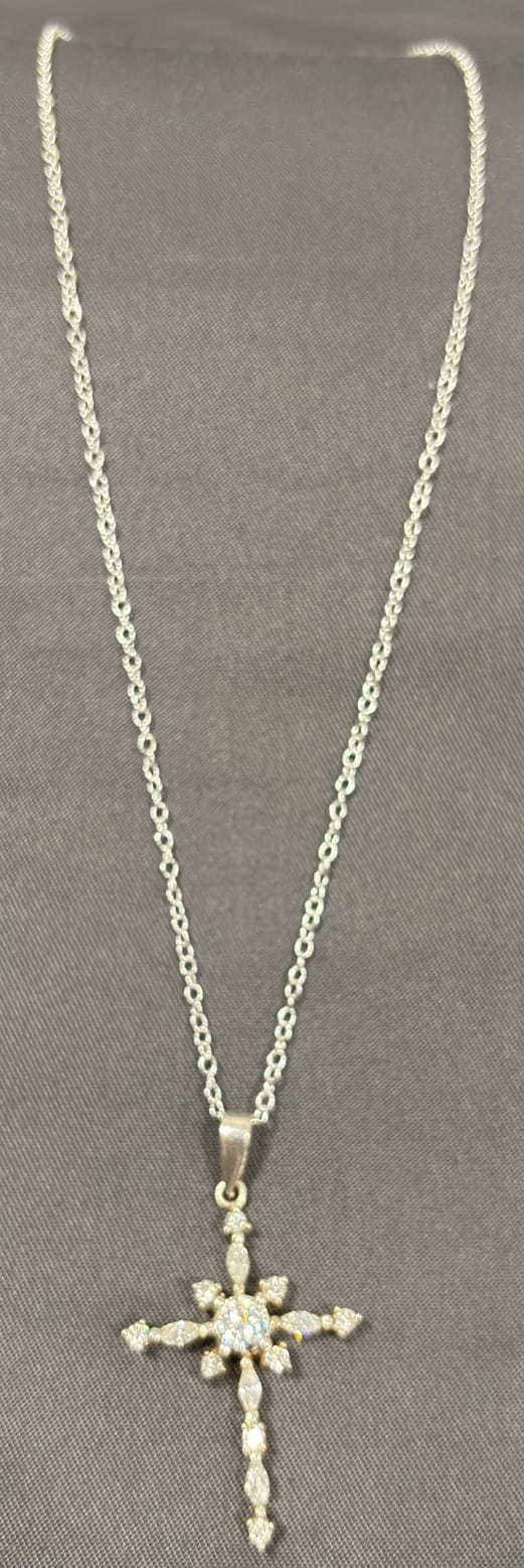 1081 .925 Silver and Clear Stone Cross Pendant on 16 inch 925 Silver Chain