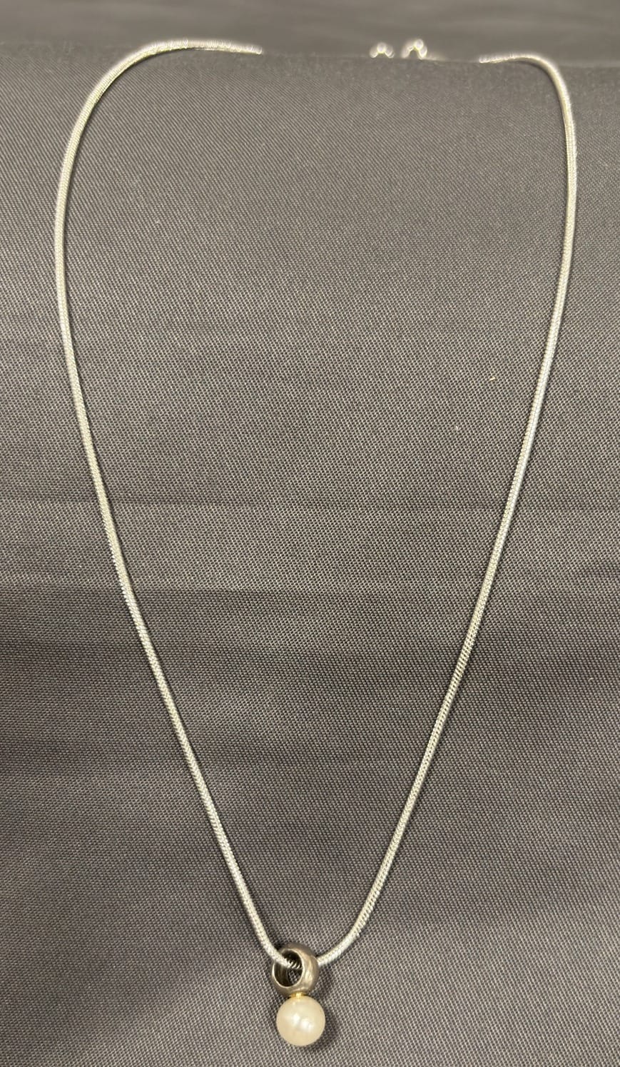 1087 Sterling and Pearl Pendant on 16 inch .925 Silver Chain