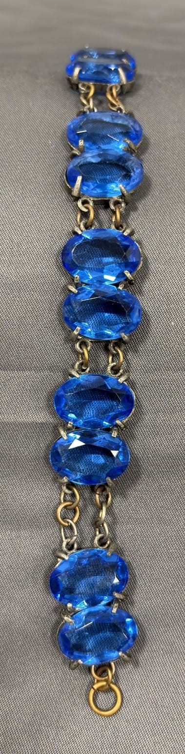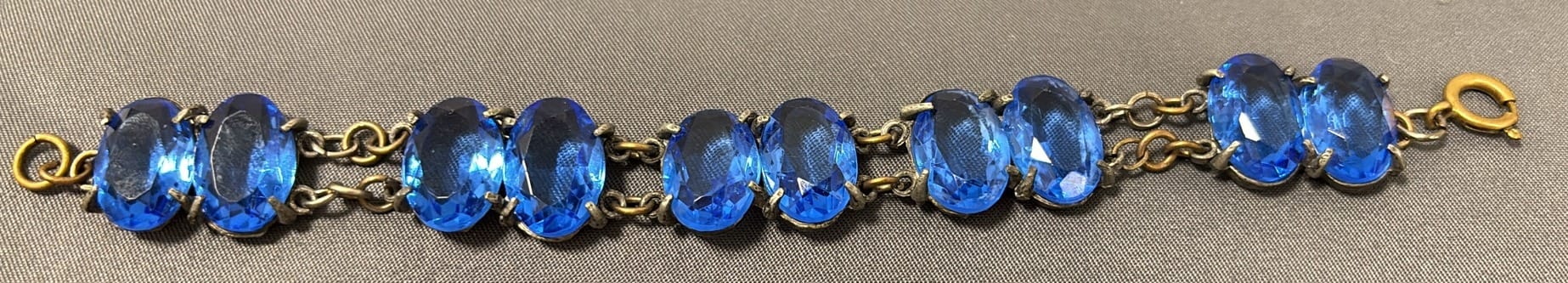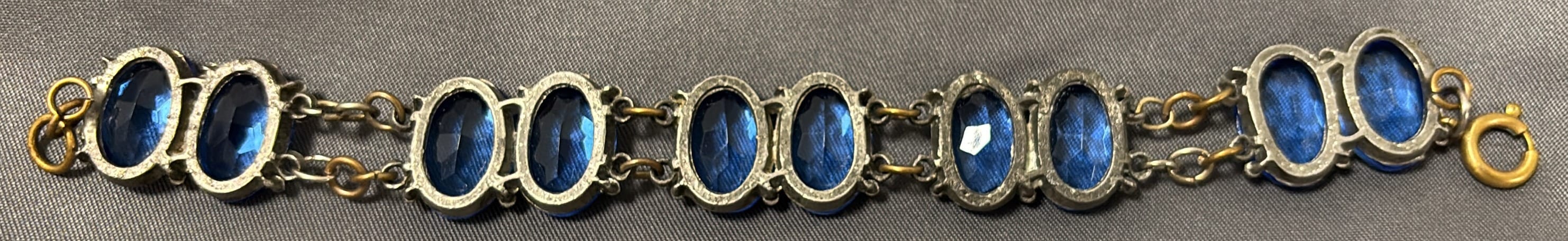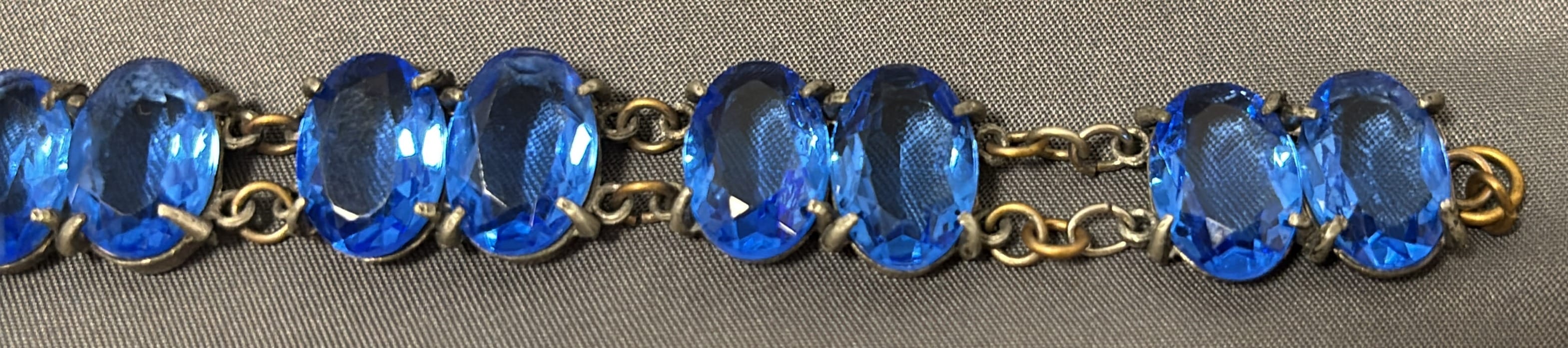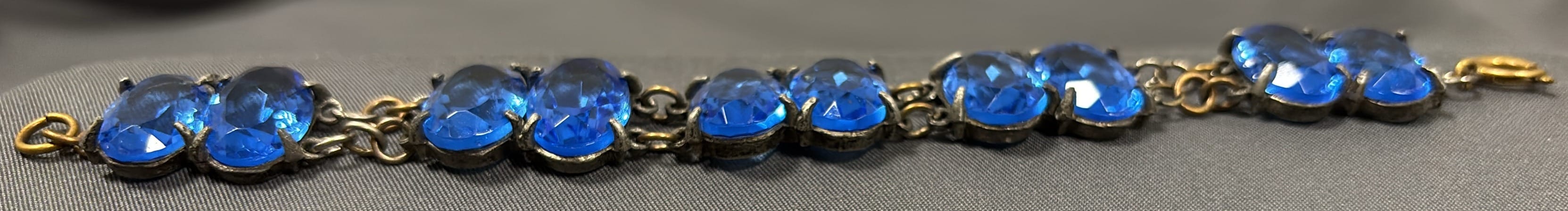 1088 Antique 6 inch Bracelet with Blue Faceted Stones
