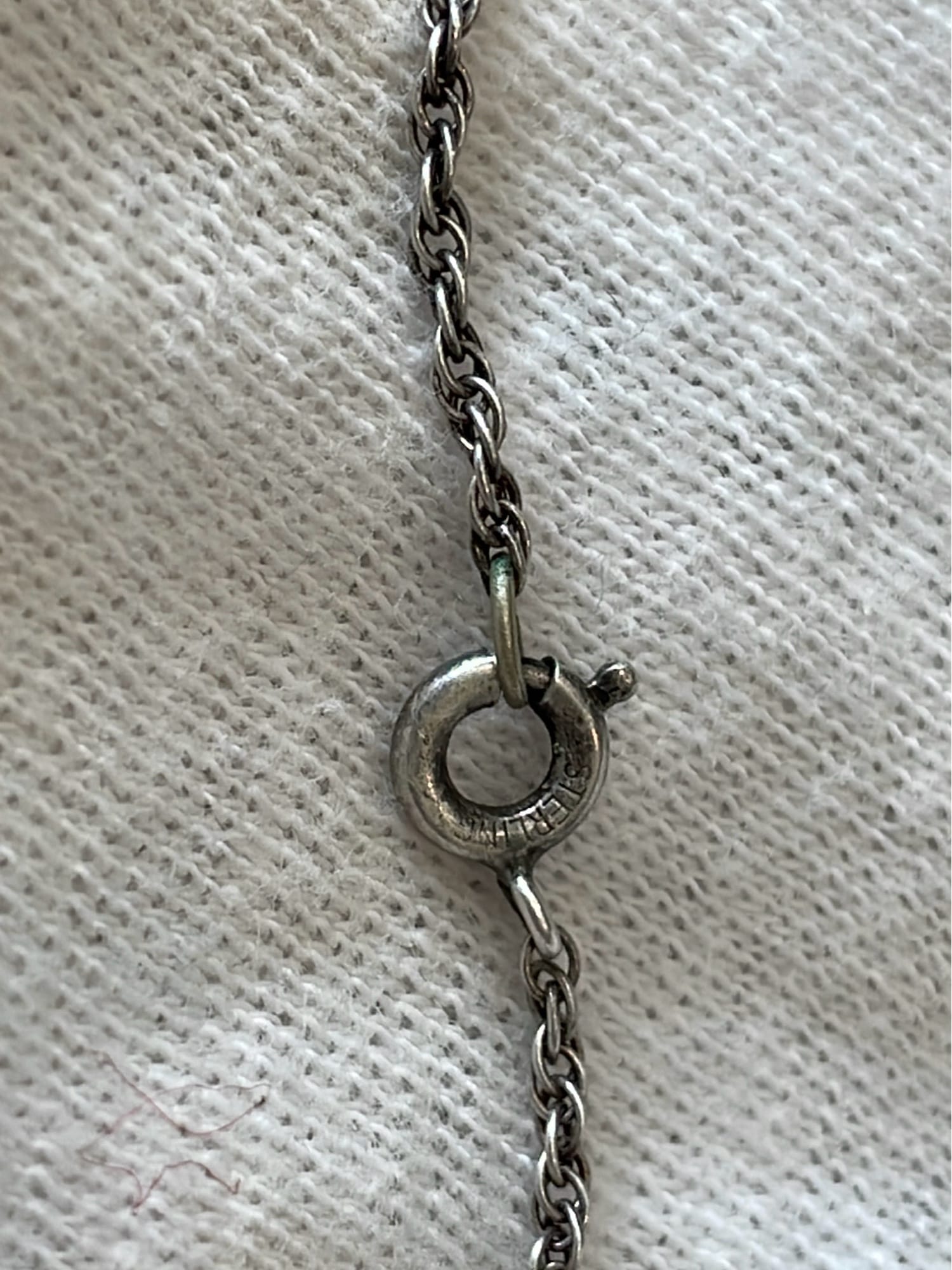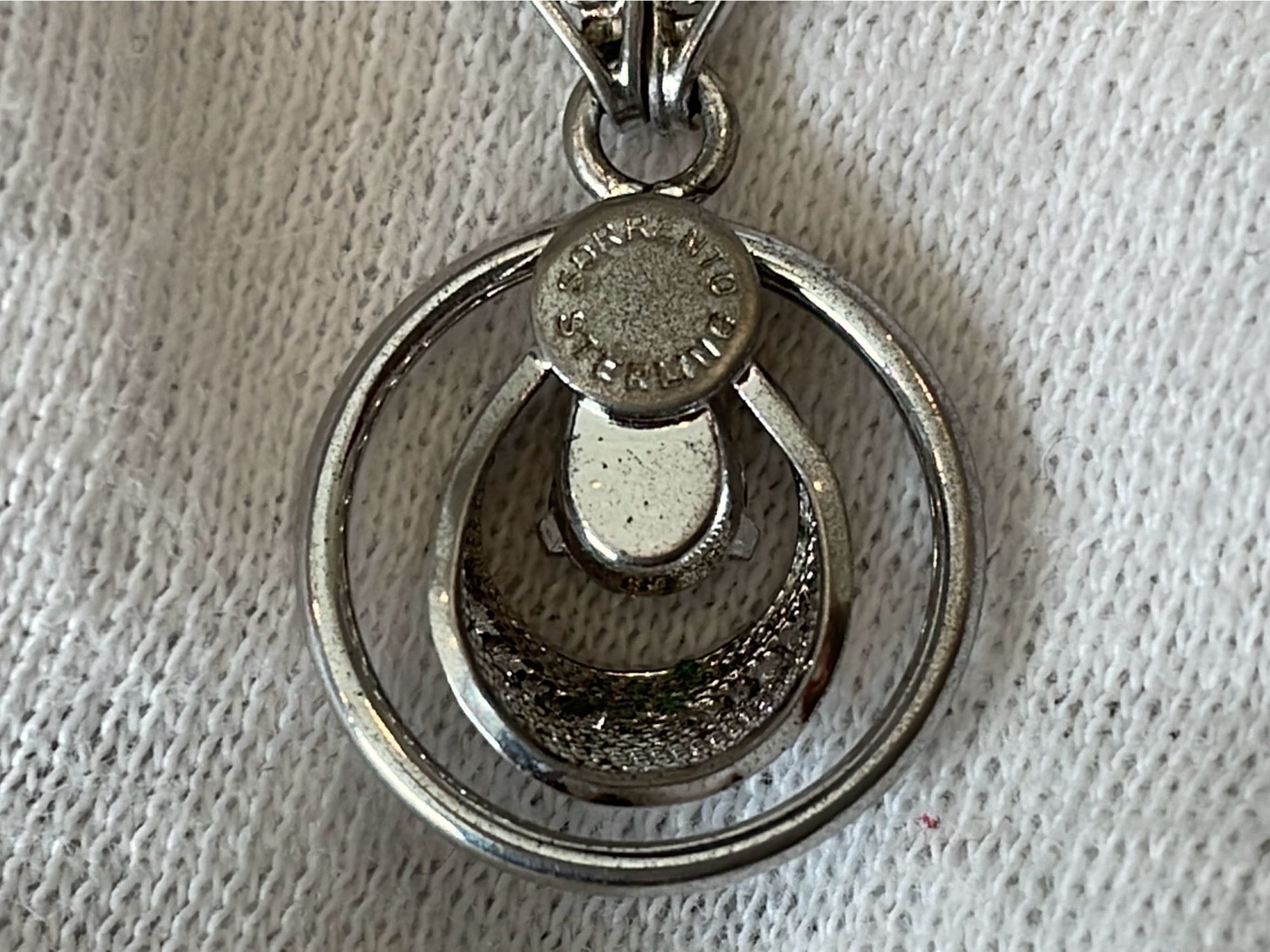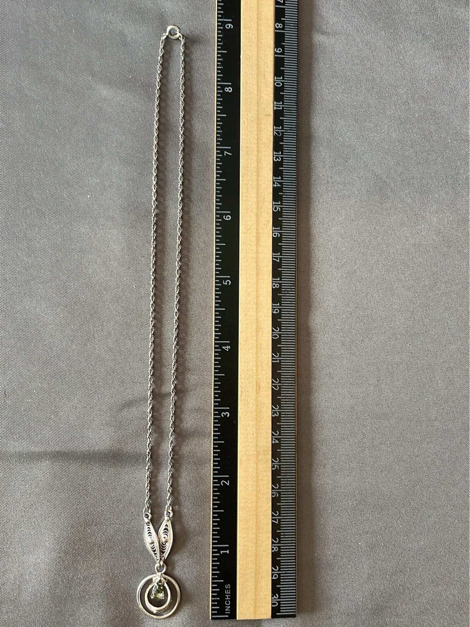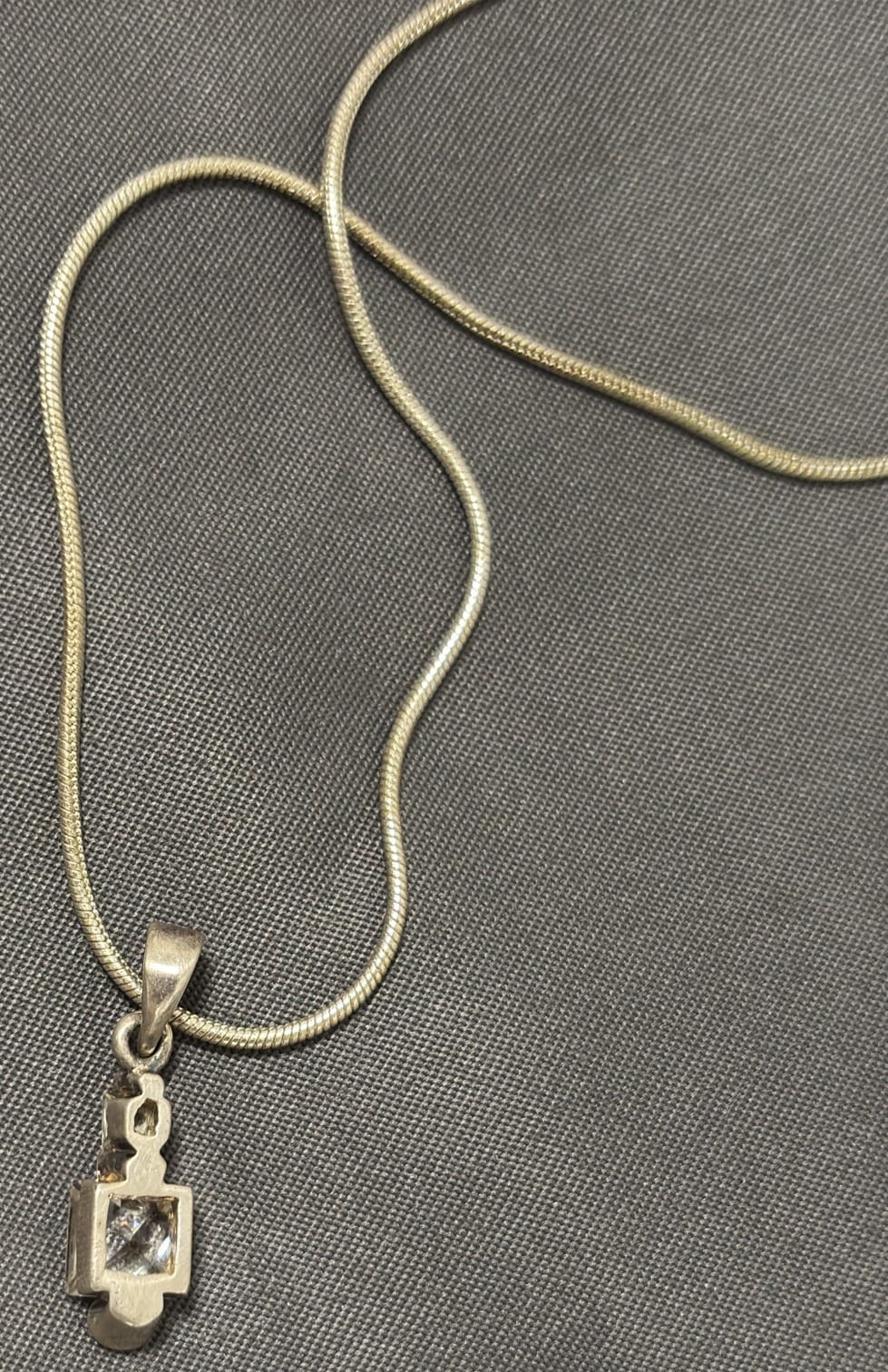 1029 Vintage .925 Silver Tourmaline Pendant on 16 inch .925 Silver Chain