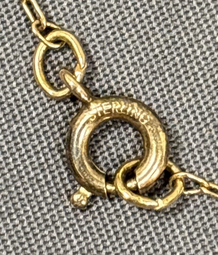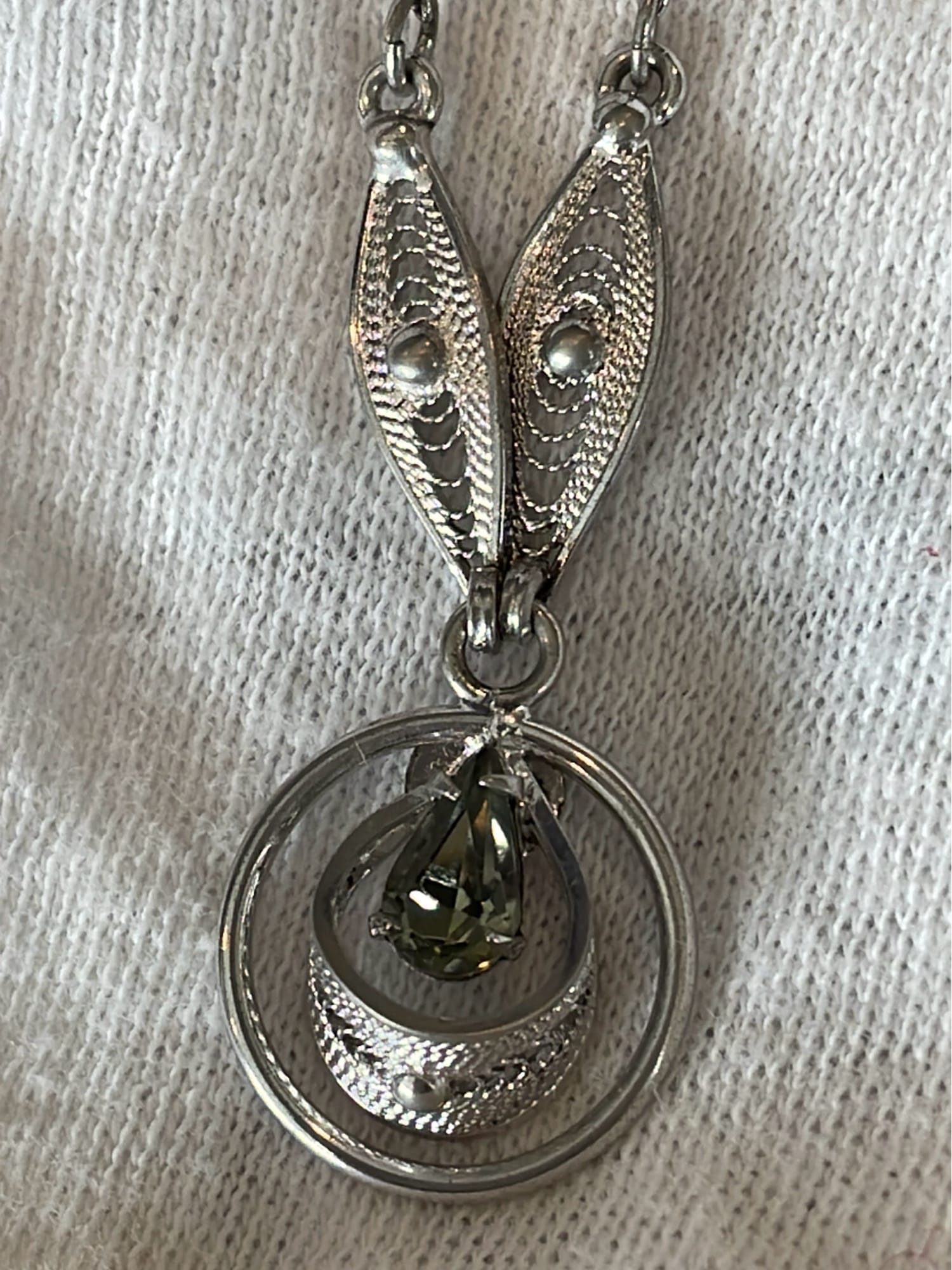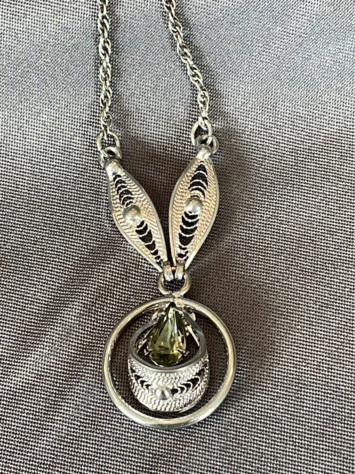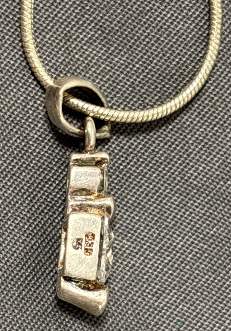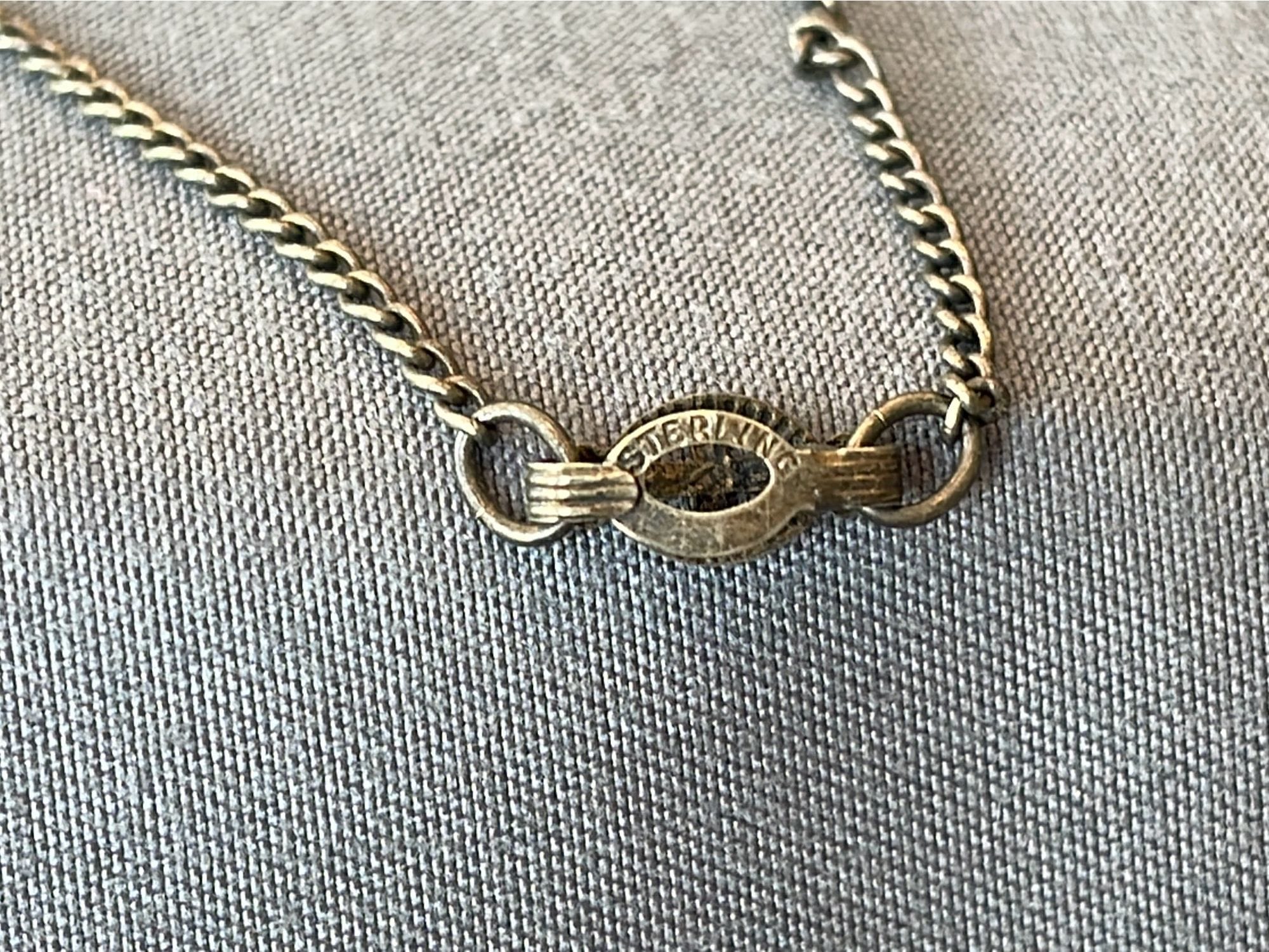 1029 Vintage .925 Silver Tourmaline Pendant on 16 inch .925 Silver Chain