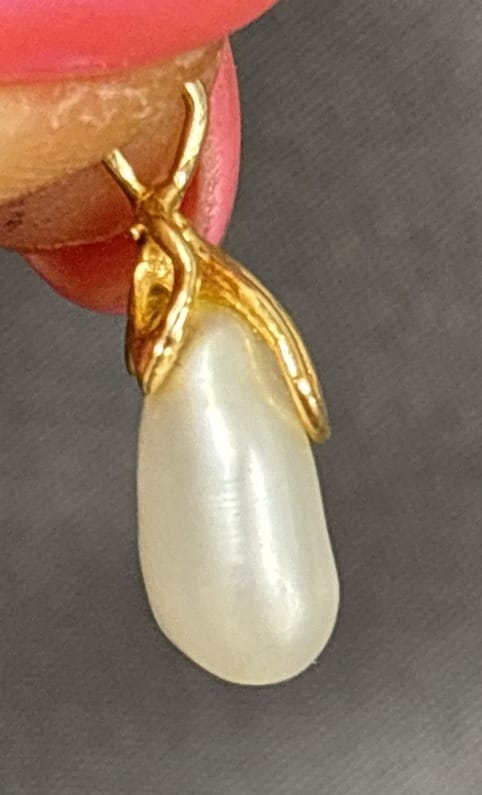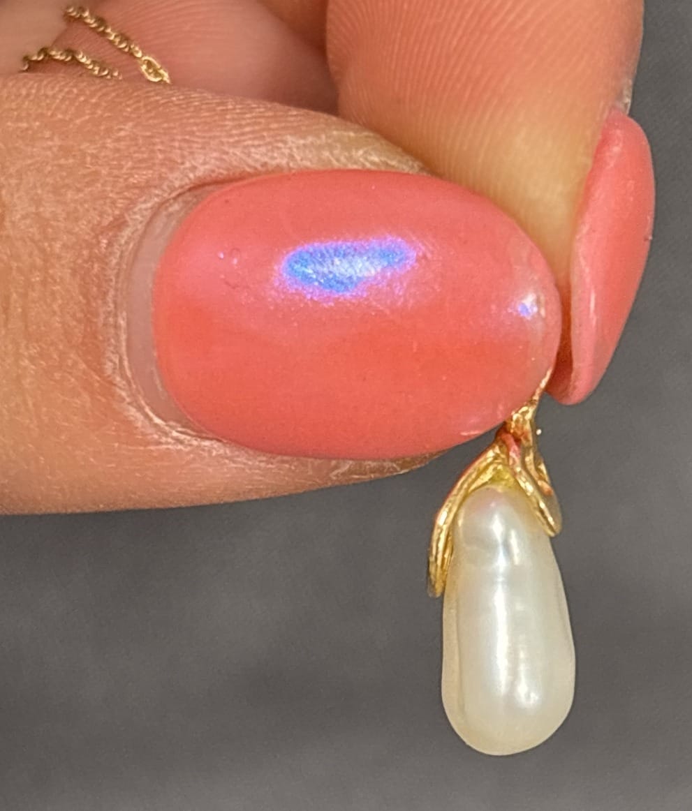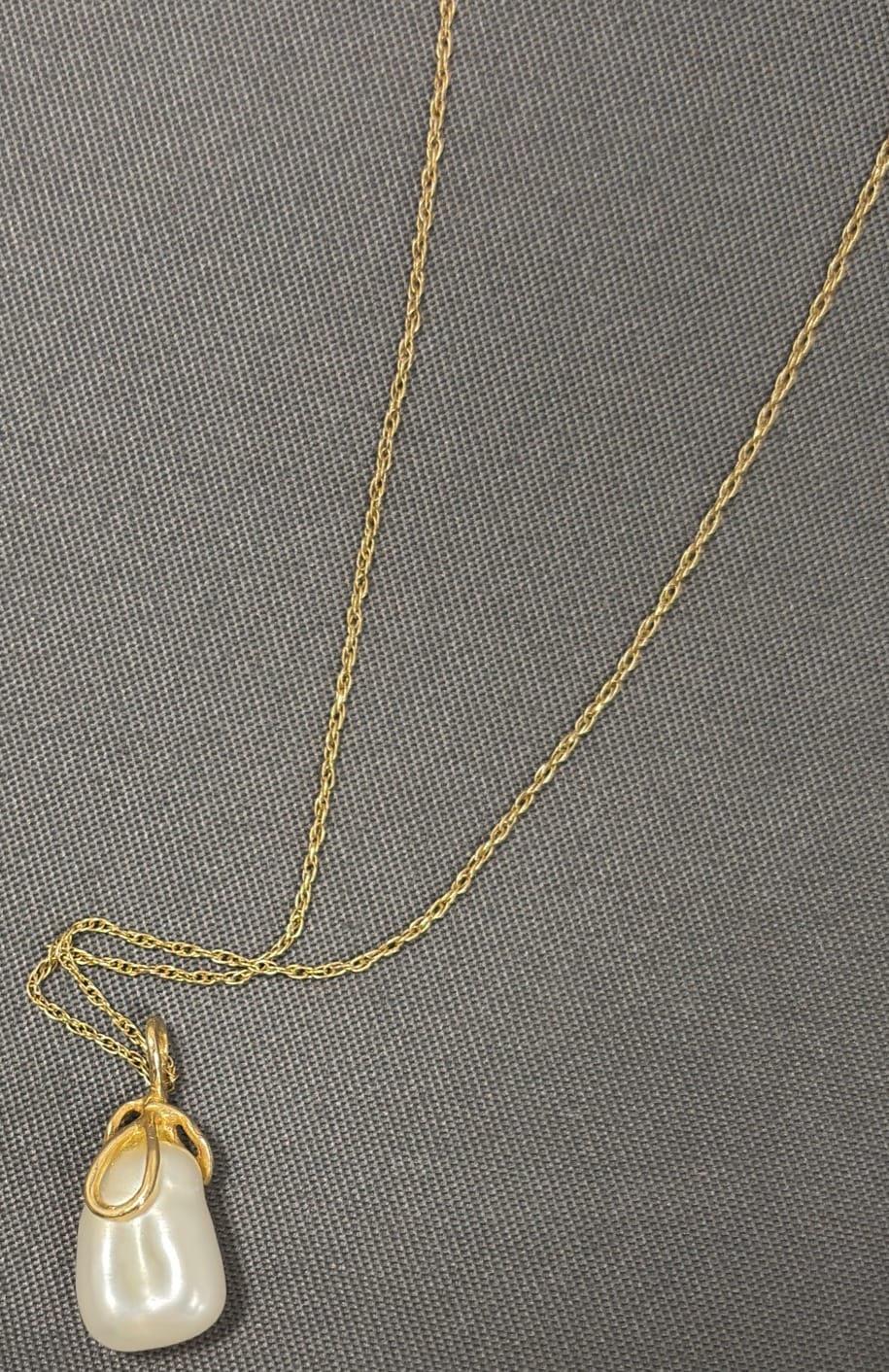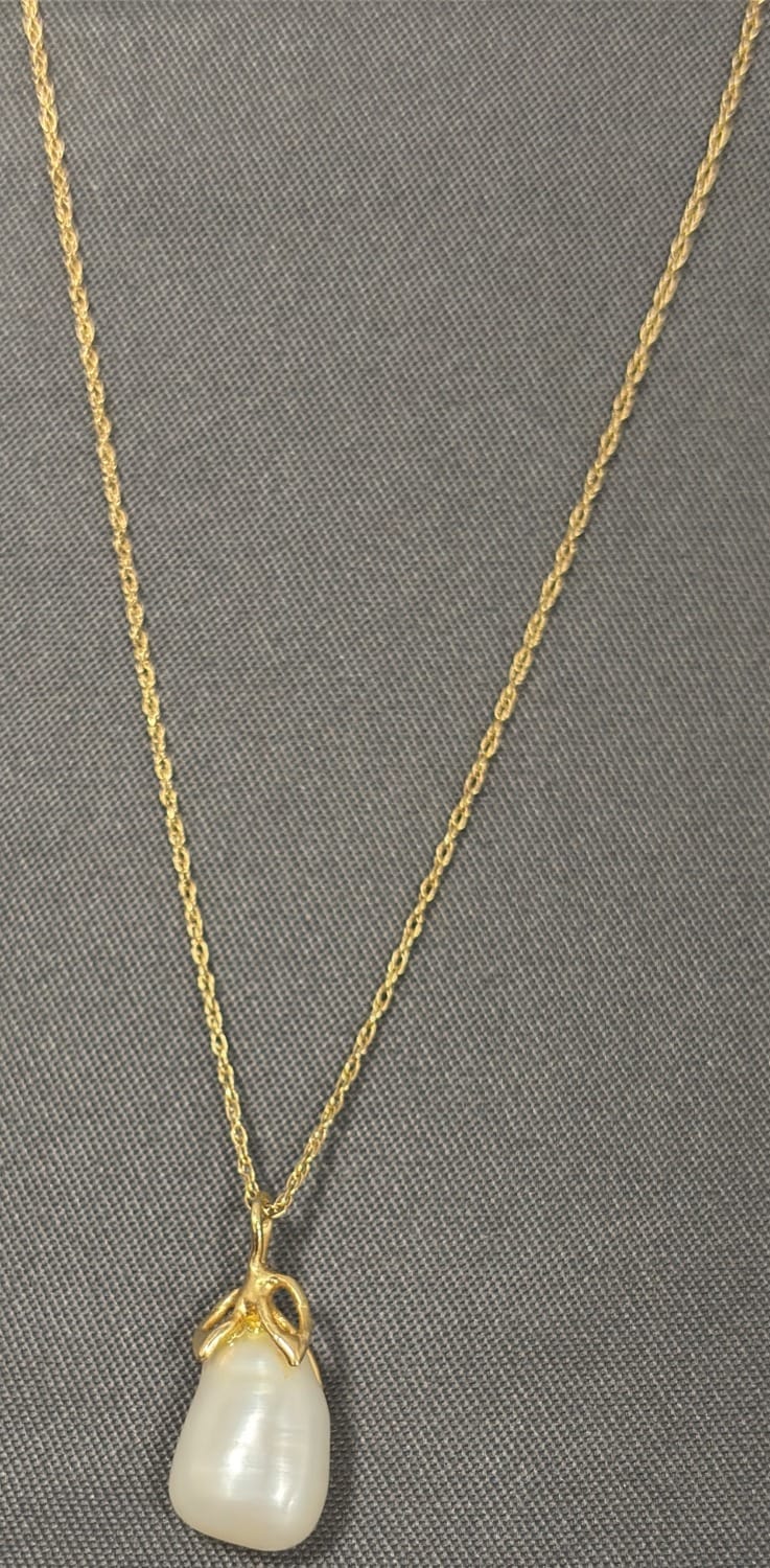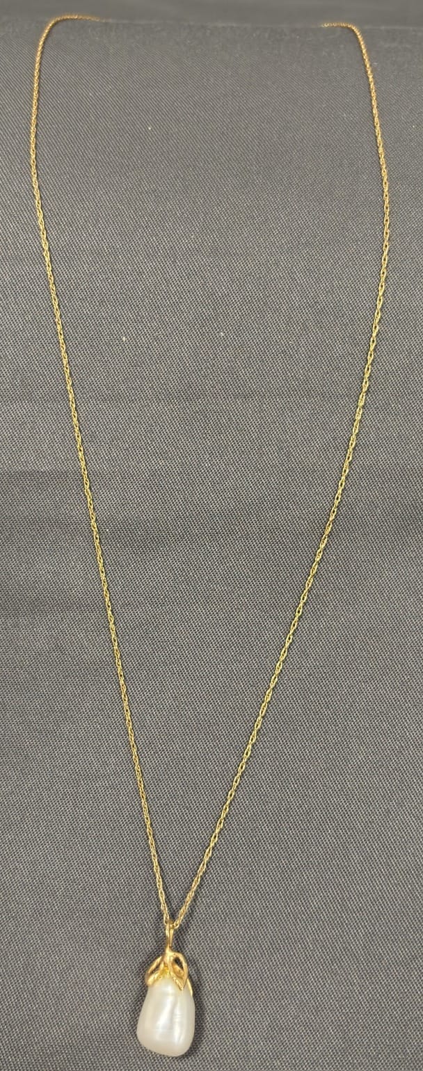 1090 Gold and Large Natural Pearl Necklace Unmarked 16 inch