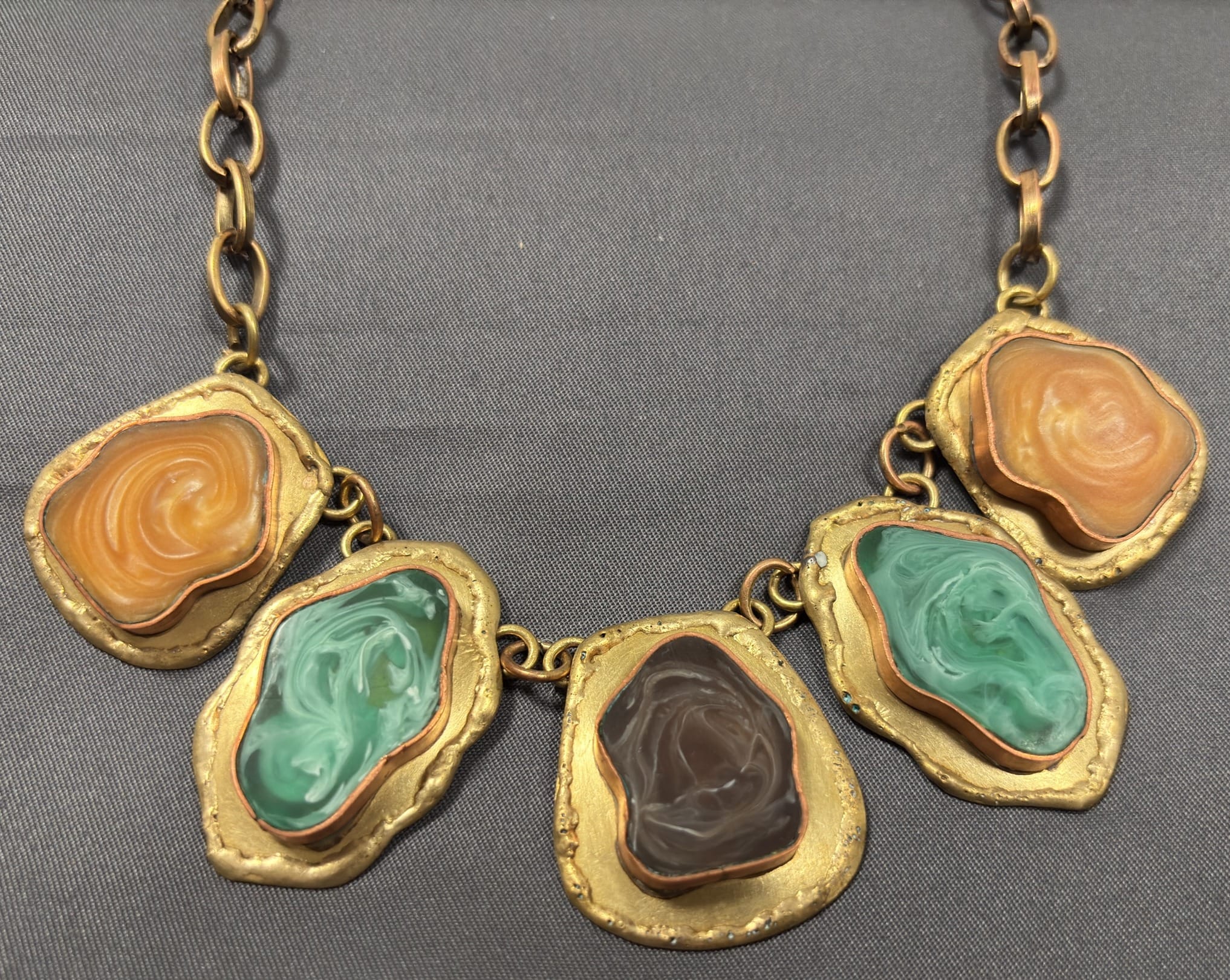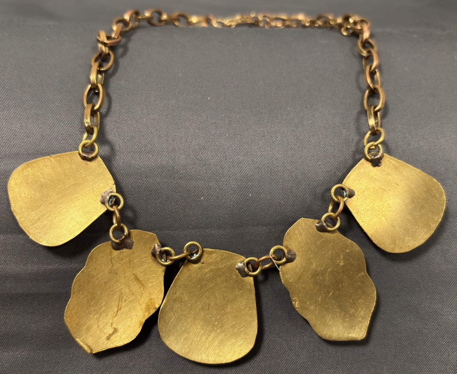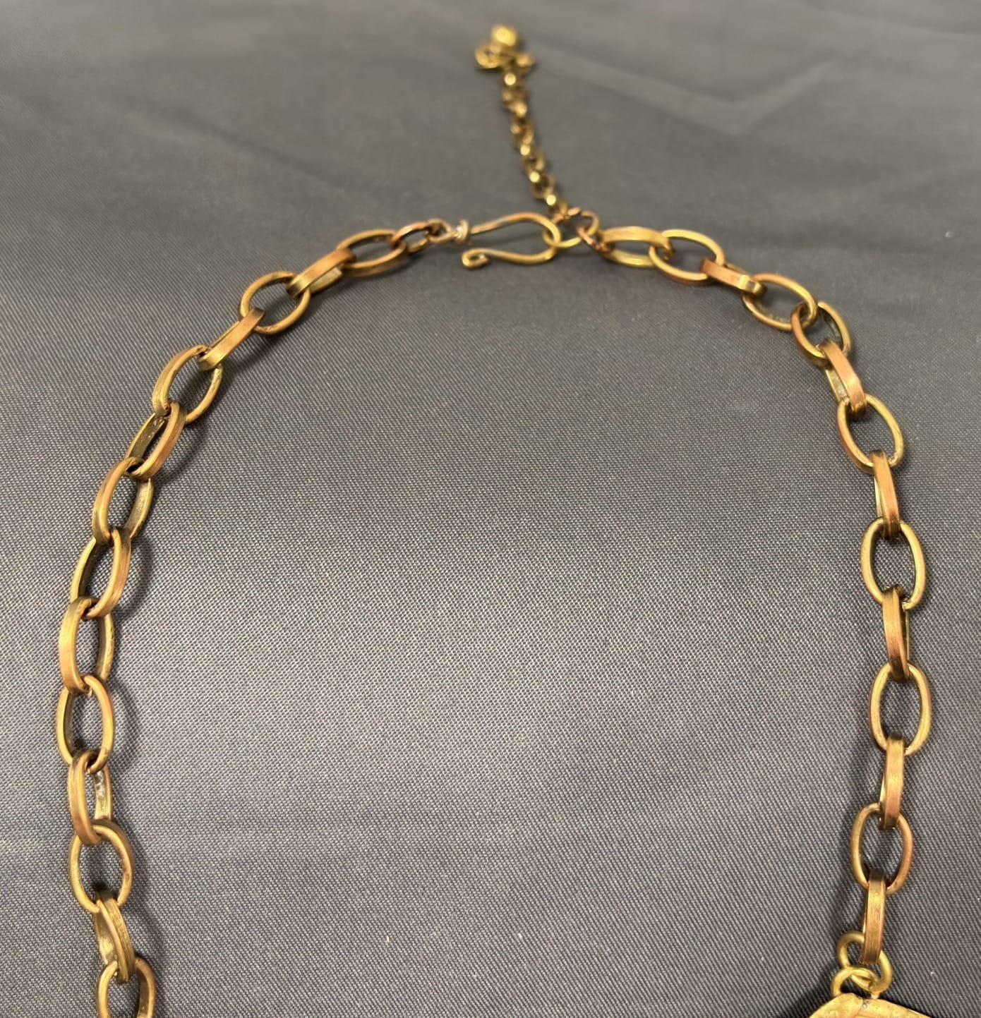 1092 Vintage 18 inch Hand Made Brass and Copper Necklace with Polished Natural Stones