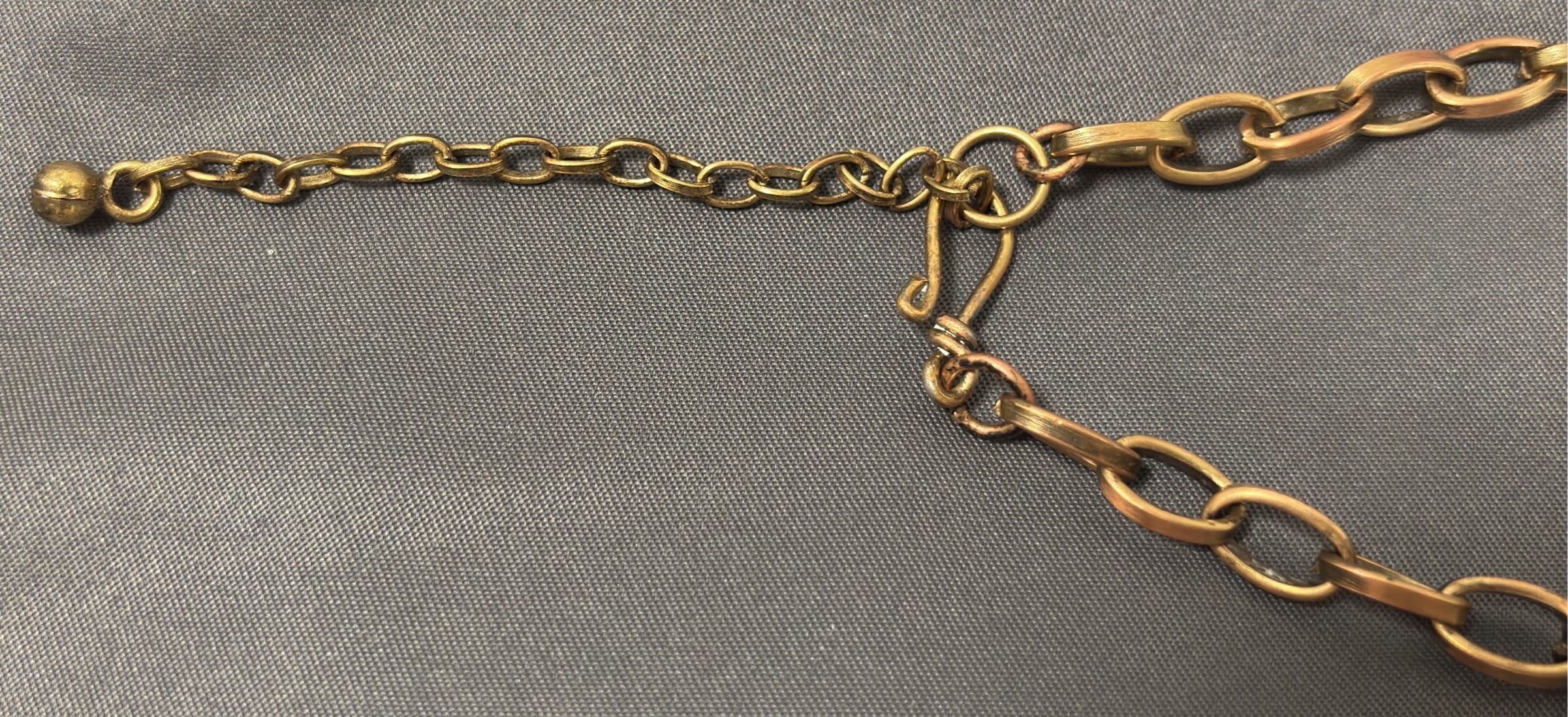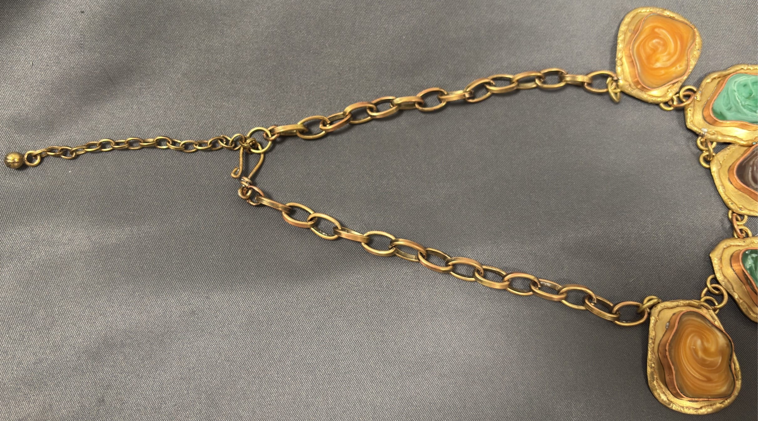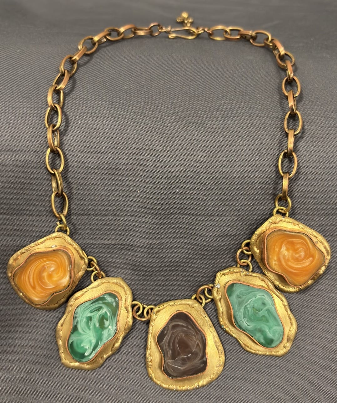 1092 Vintage 18 inch Hand Made Brass and Copper Necklace with Polished Natural Stones