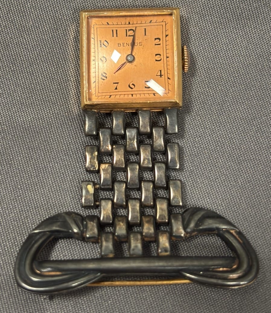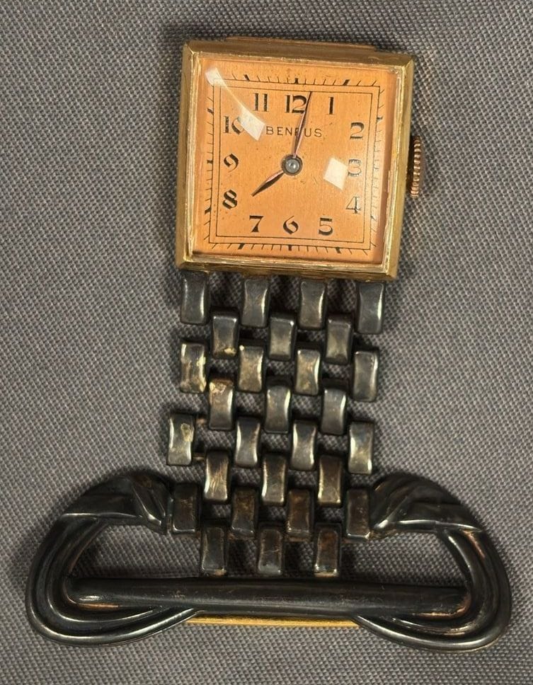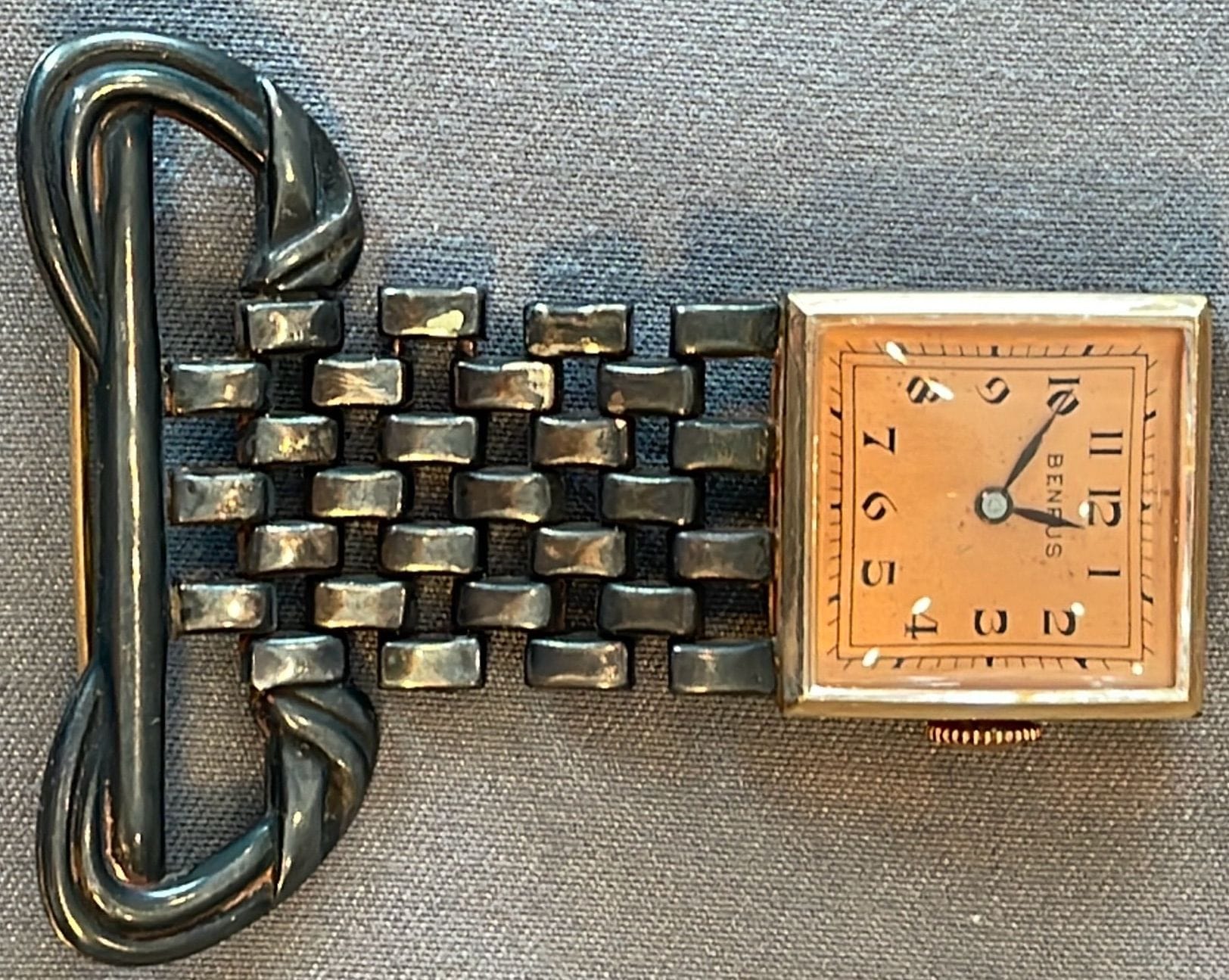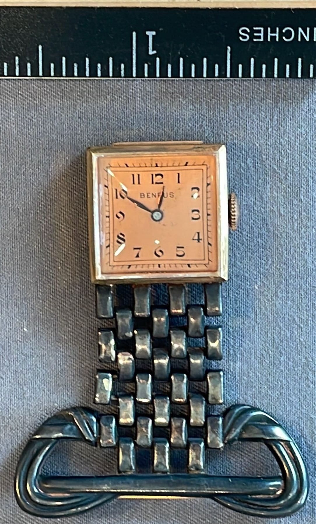 1094 1960s 12 Karat Gold Benrus 17 Jewel Lapel Pin Watch - Watch Runs and Keeps Time, Approx 5 Grams Gold