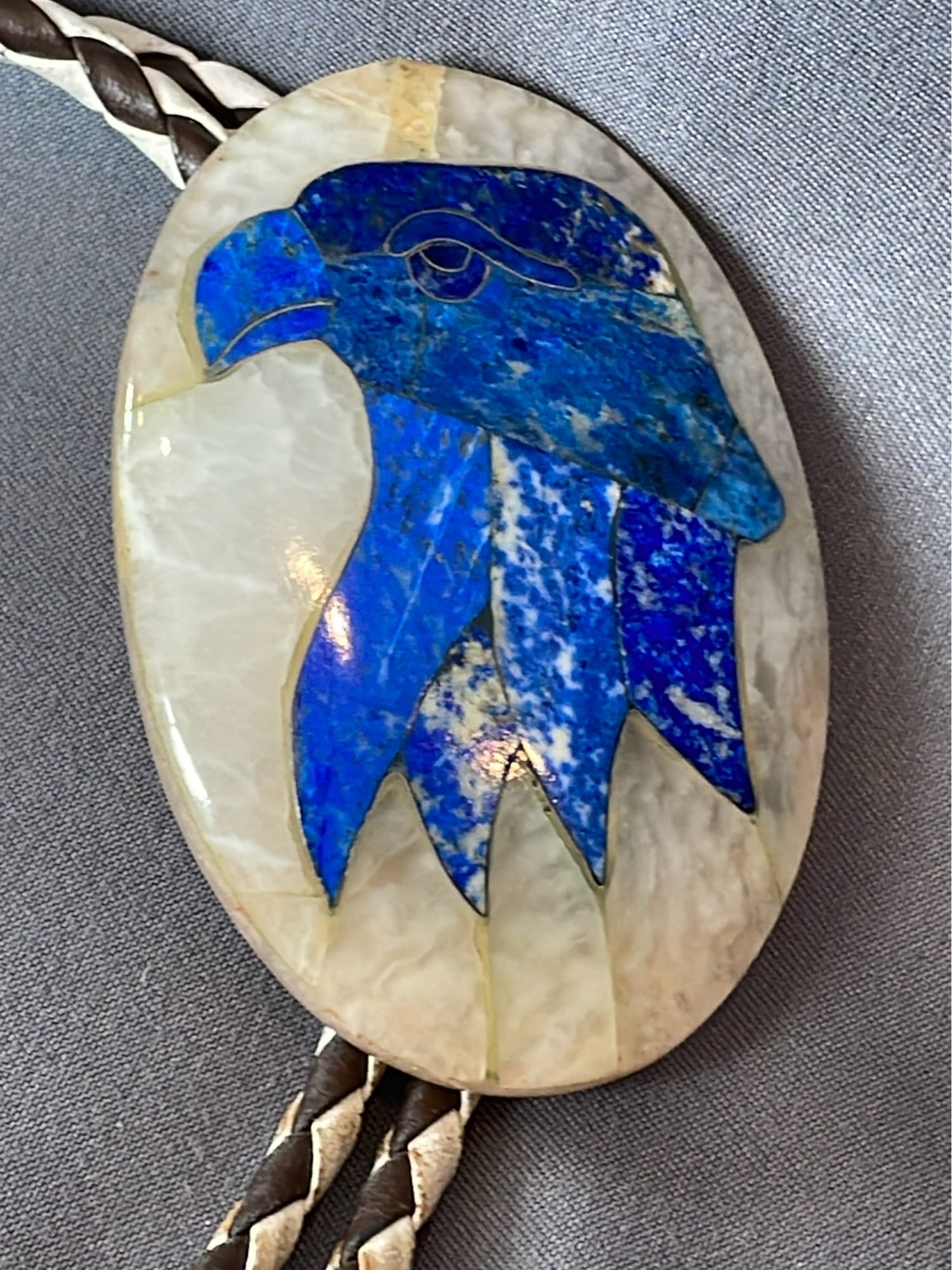 1095 1940s Handmade Bennett Bolo Tie - La Paz Eagle Set in Quartz Stone