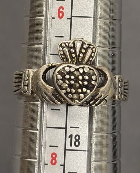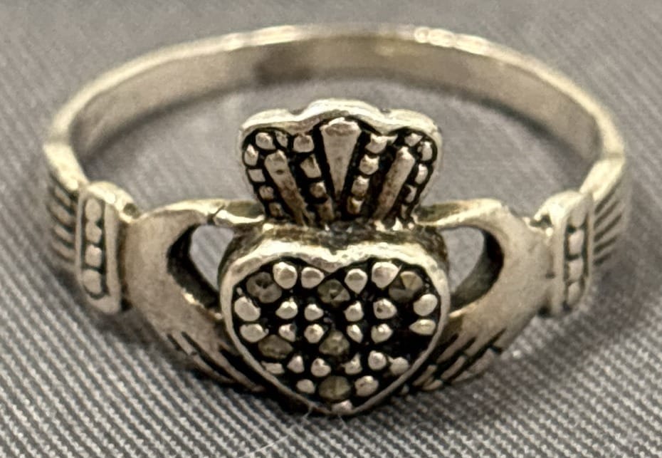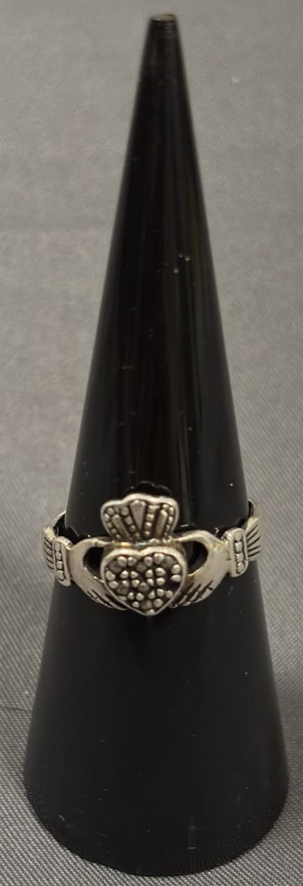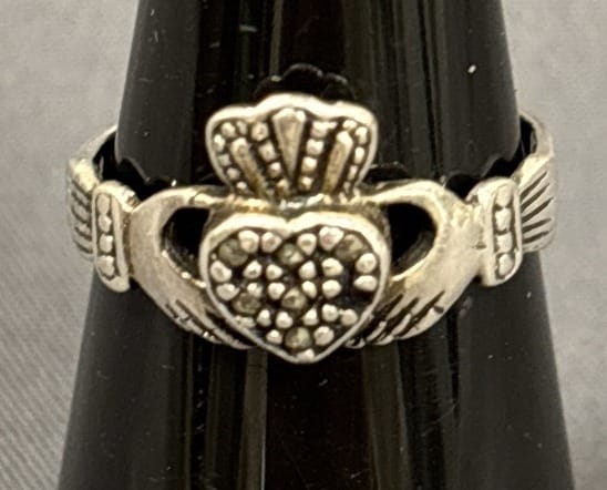 1096 Vintage .925 Silver Celtic Claddagh Ring, size 7