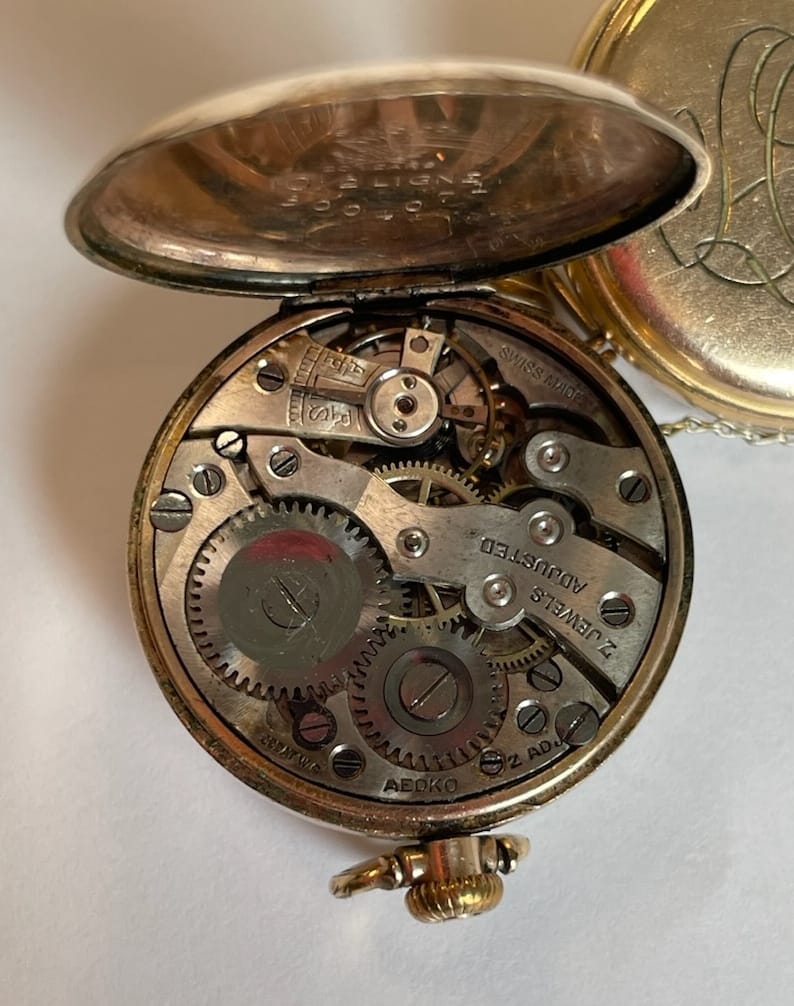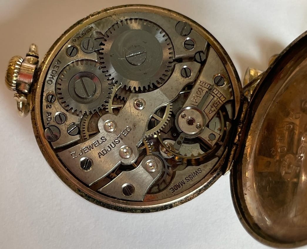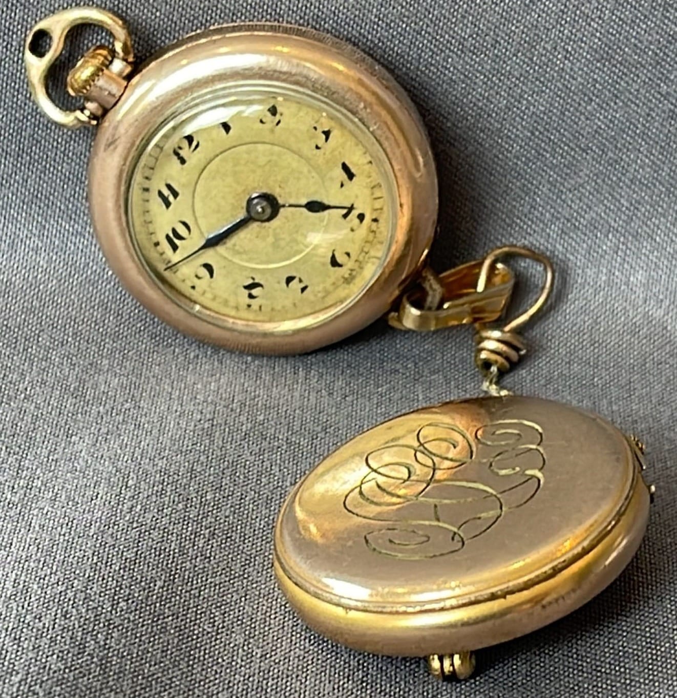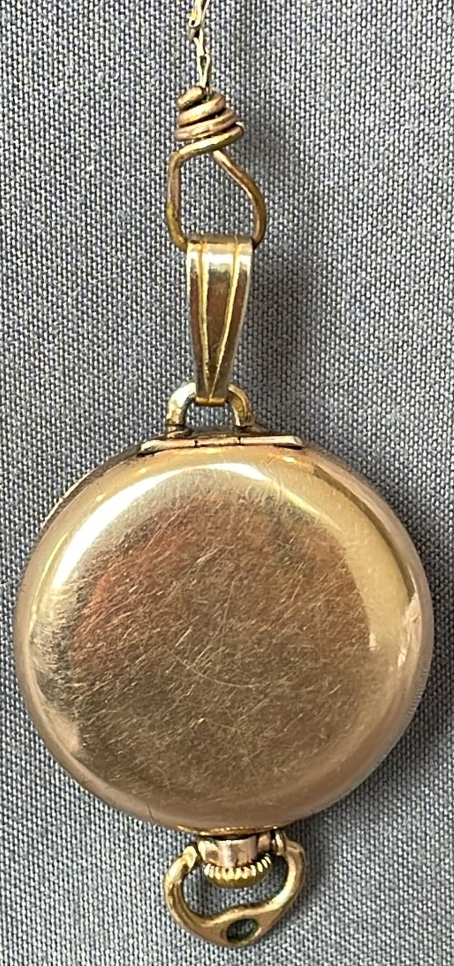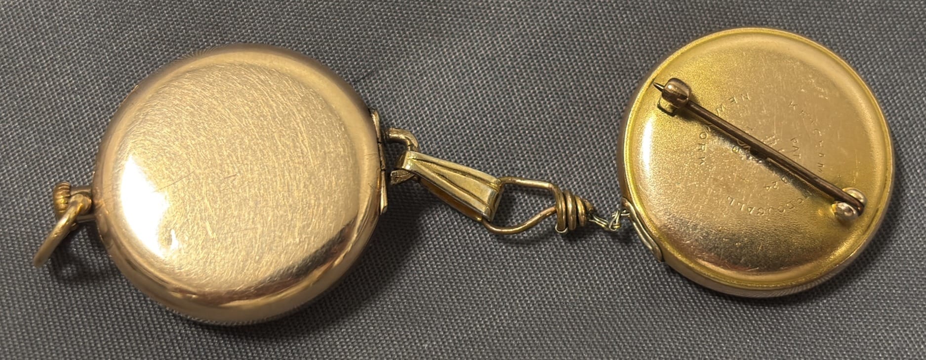 1098 1920s 7 Jewel Swiss Made Gold Filled Lapel Pin Watch - Runs