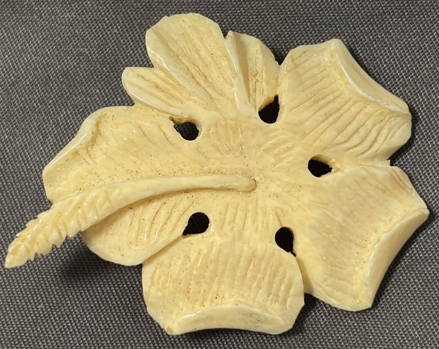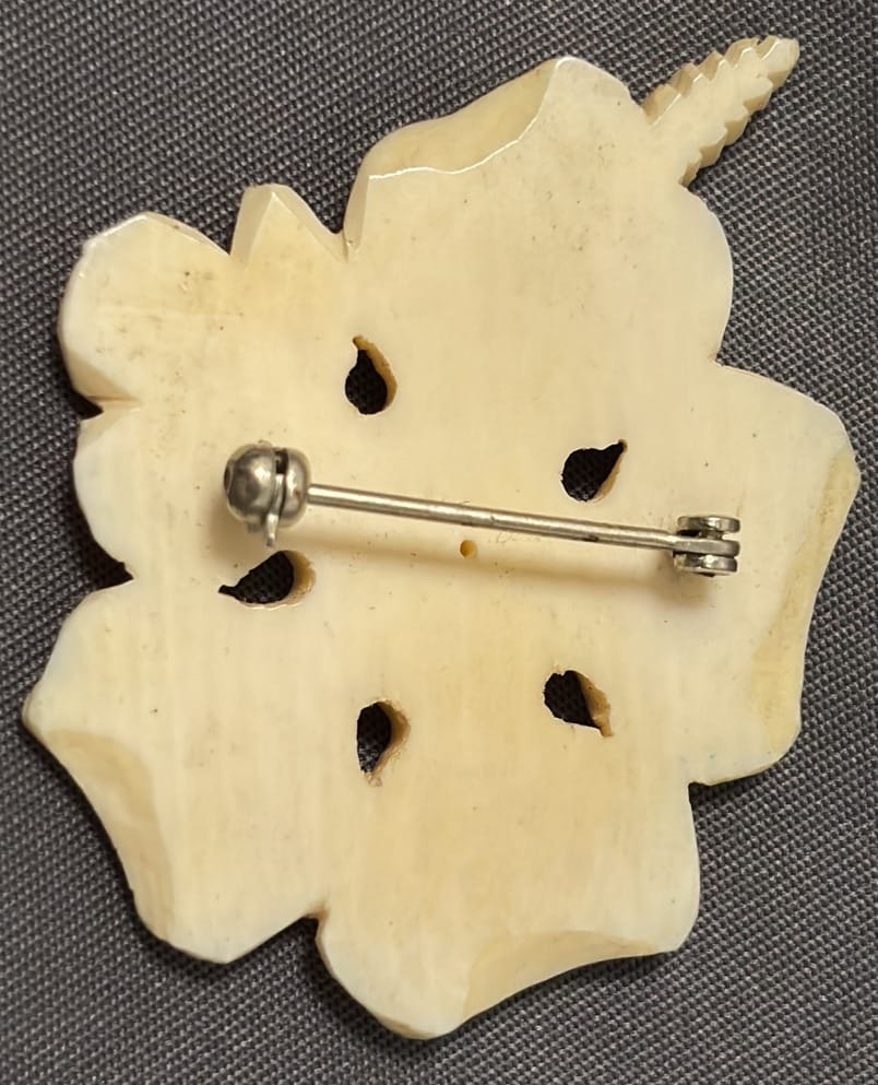 1099 Vintage Carved Buffalo Bone Flower Pin