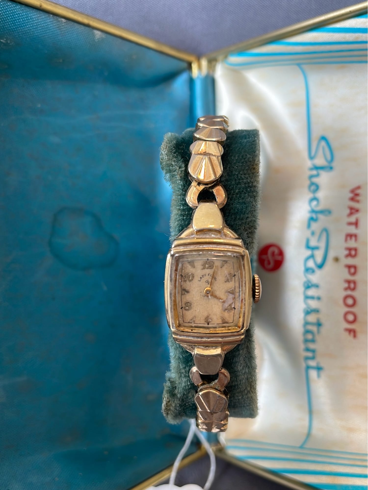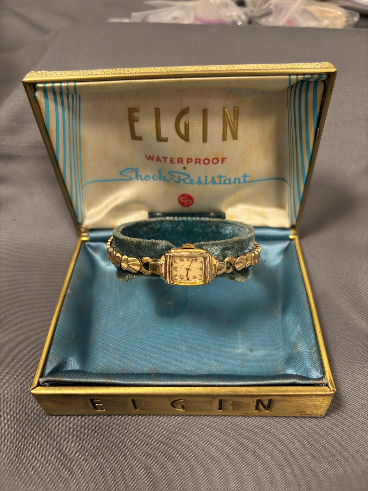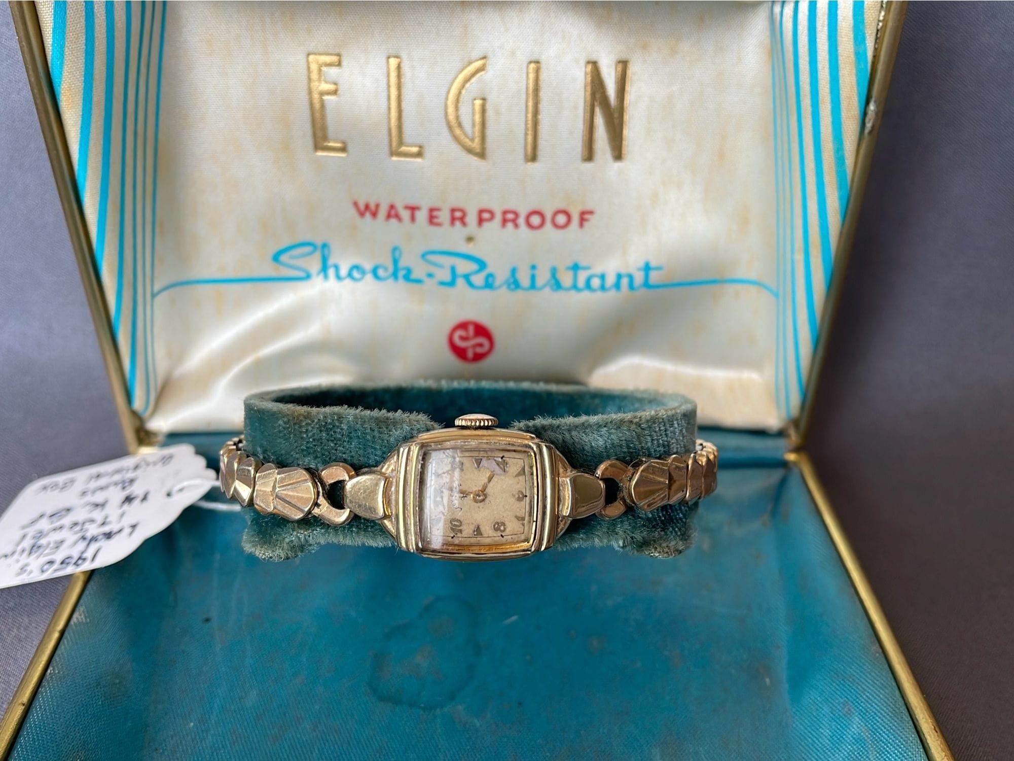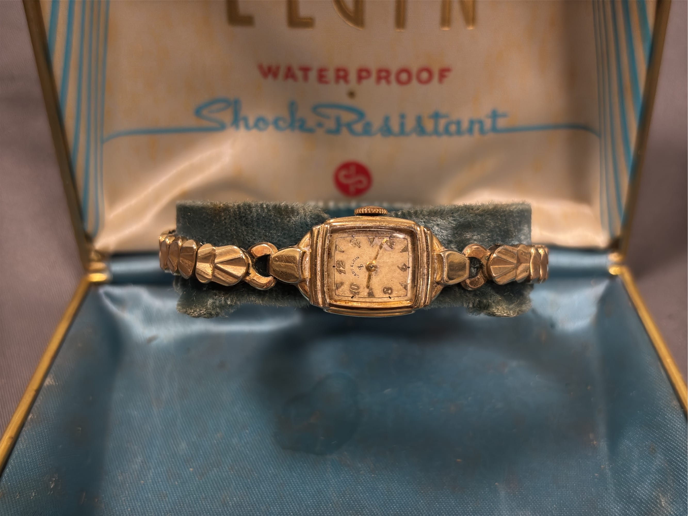 1100 1950s Lady Elgin 19 Jewel, 4 Adjustments, 14 Karat Gold Filled Watch in Original Box