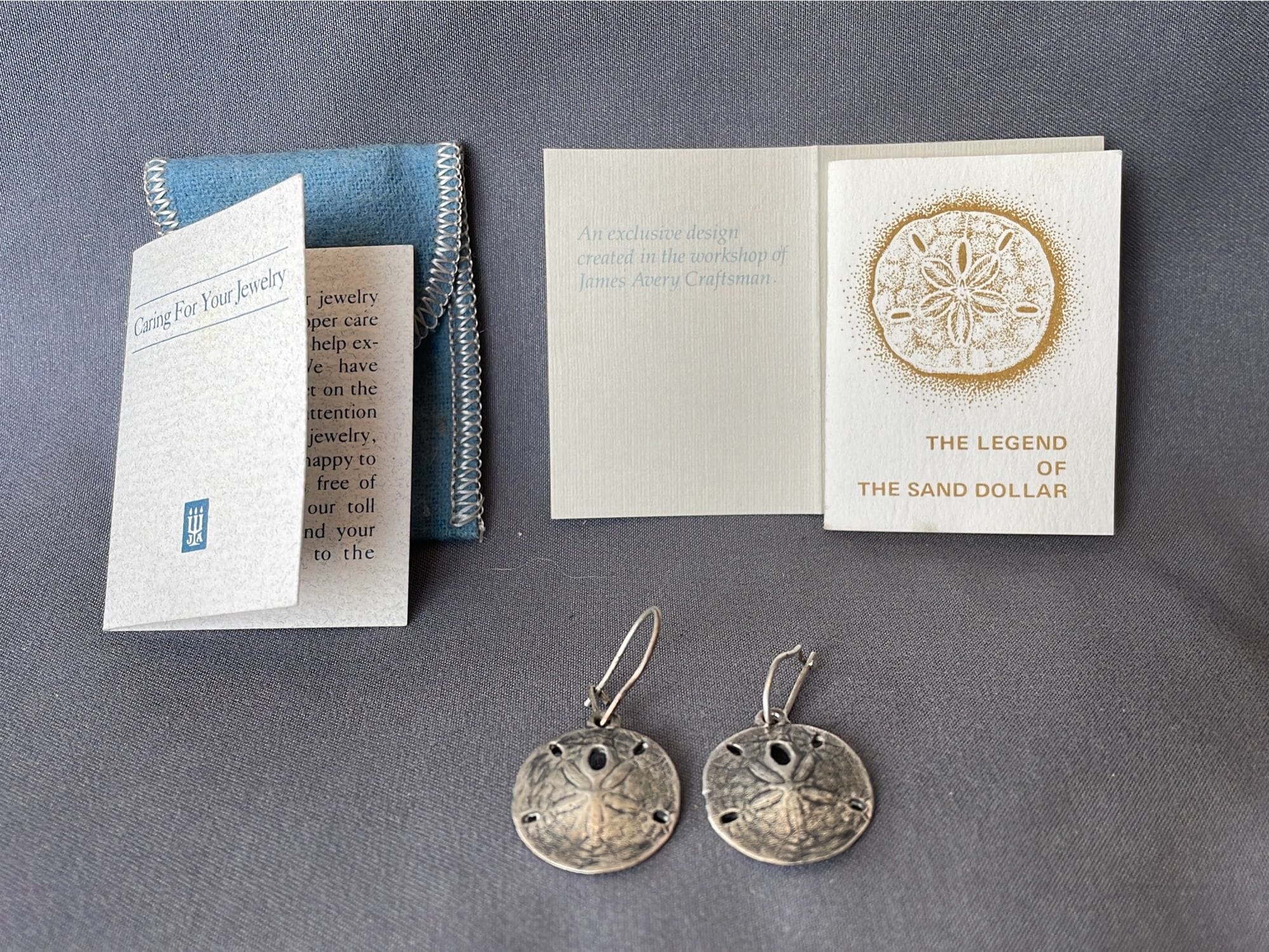 1101 James Avery Craftsman Sterling Silver Sand Dollar Earrings with Box