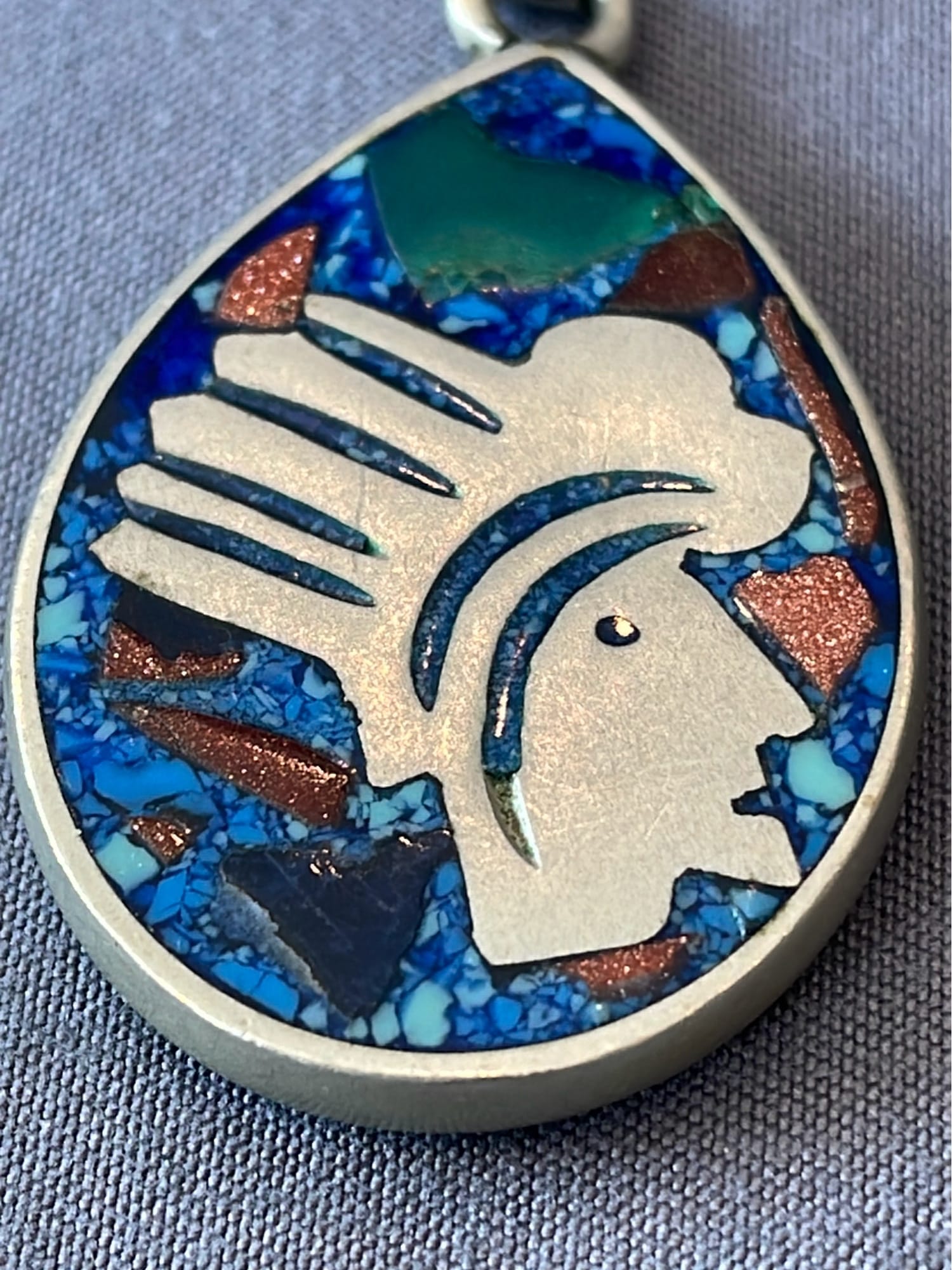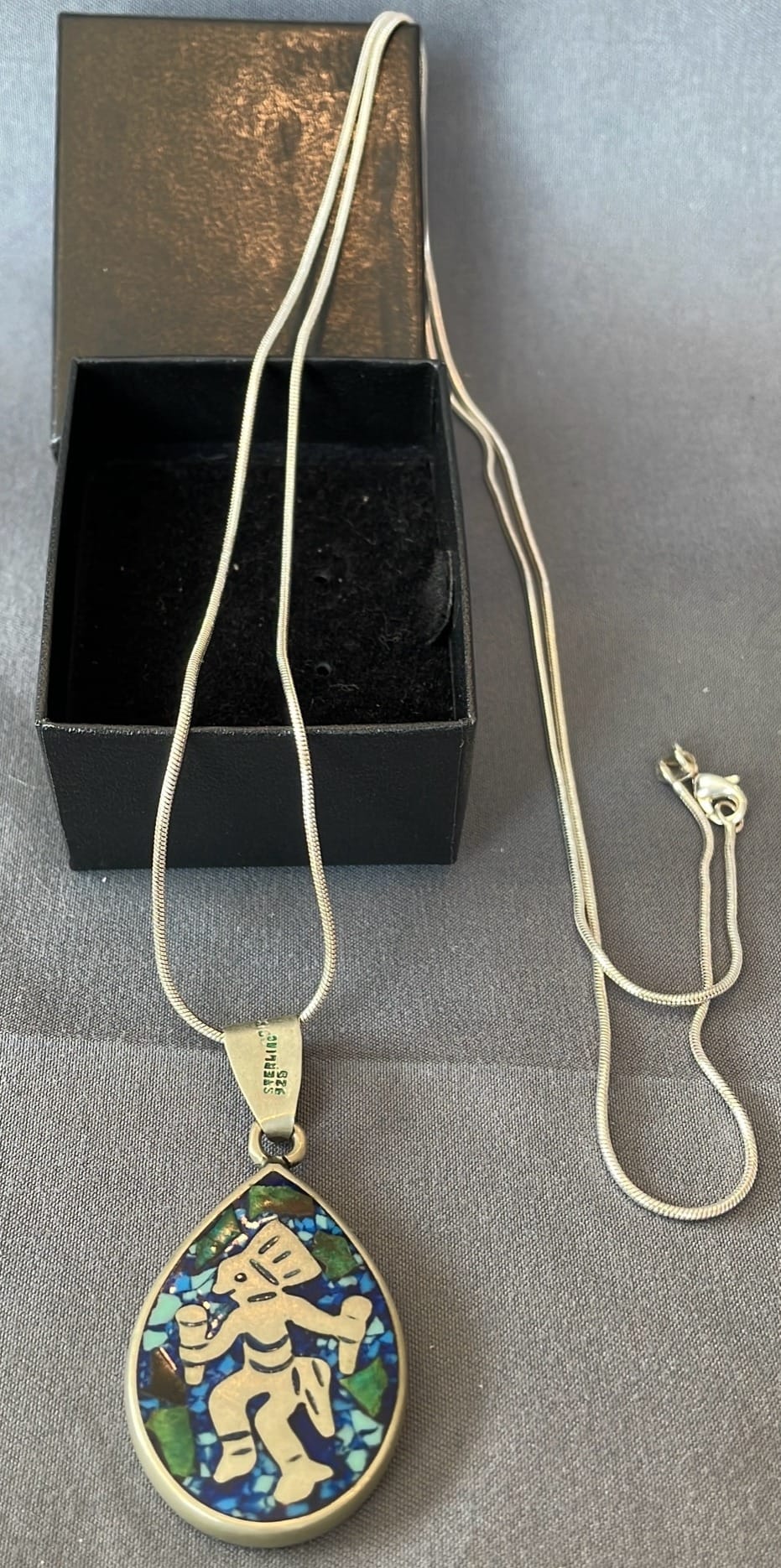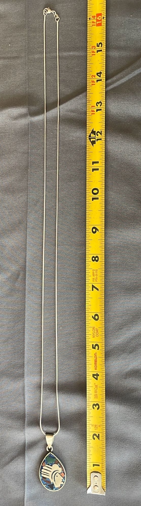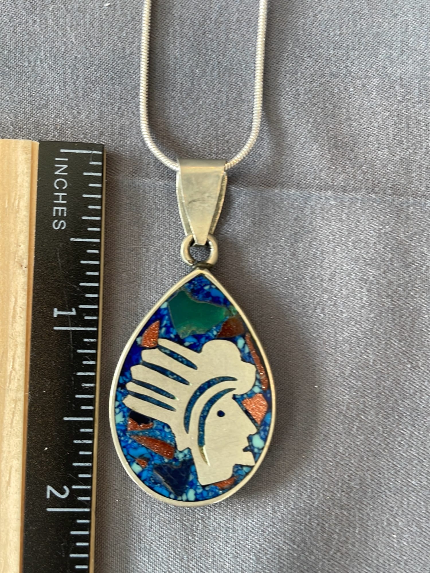 1103 Sterling Silver Teardrop Reversible Pendant - Mexico - On Sterling Chain with Box