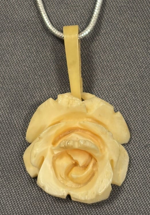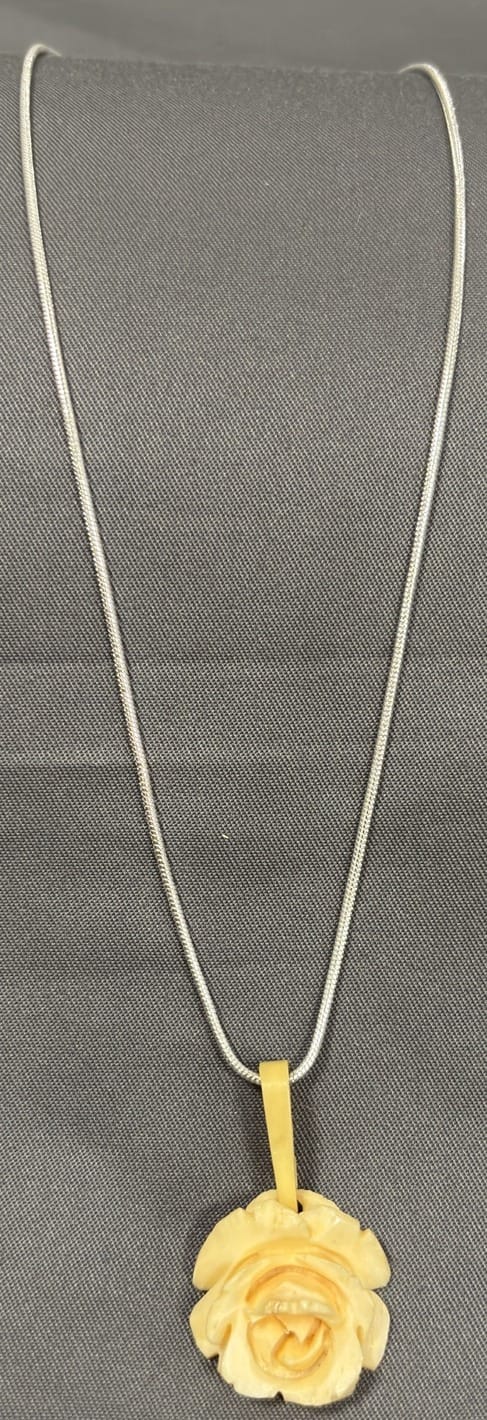 1106 Carved Rose Pendant with 16 inch .925 Silver Chain