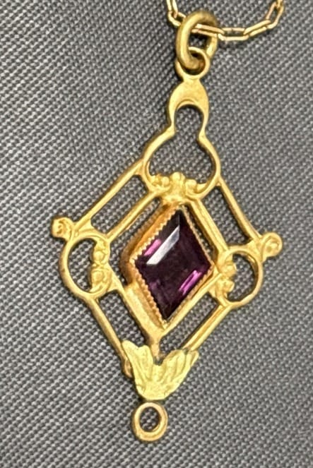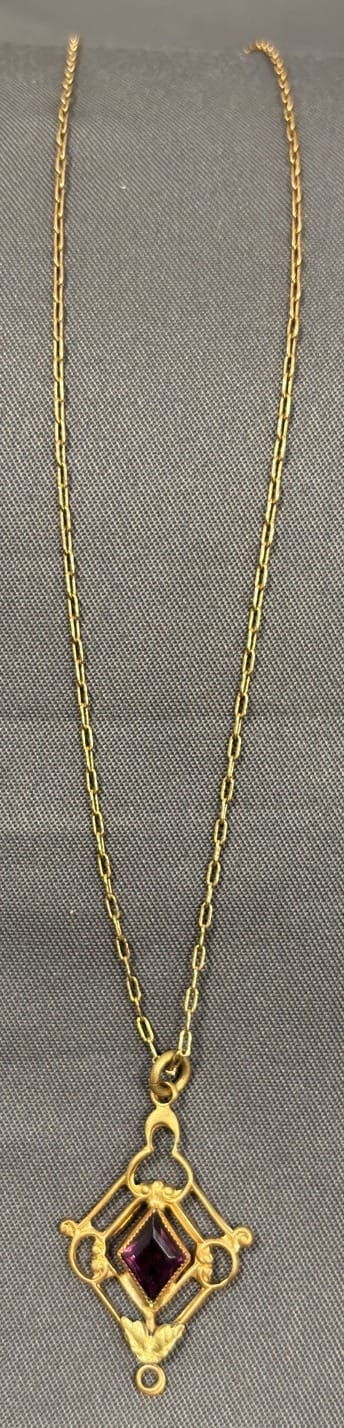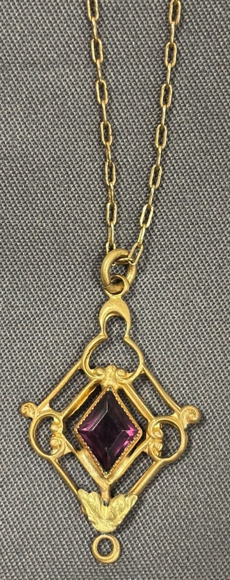1108 Antique Pendant with Purple Faceted Stone on 16 inch Chain