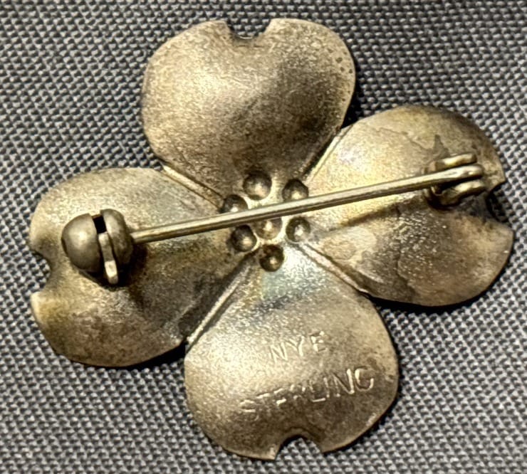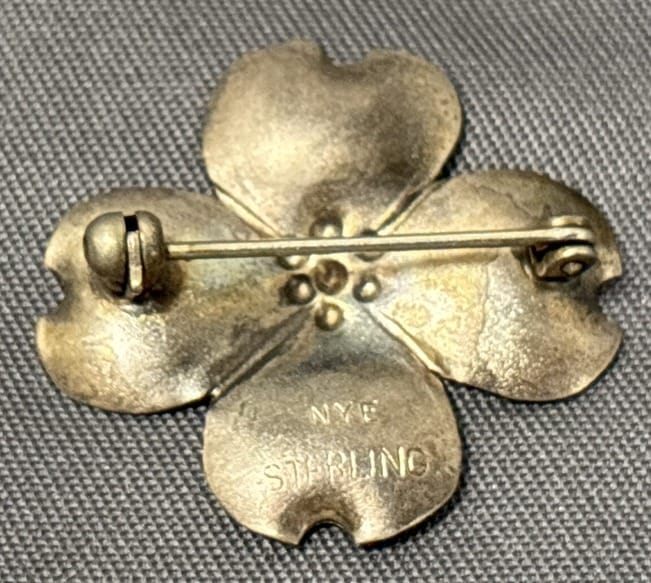 1111 Vintage Sterling Silver 4 Leaf Clover Pin Stamped 'NYE'