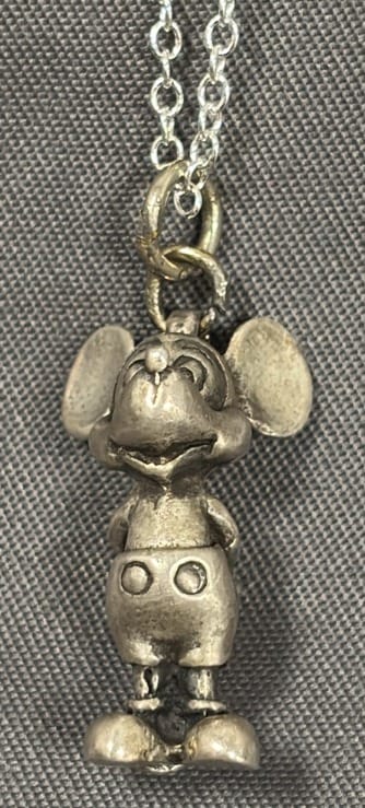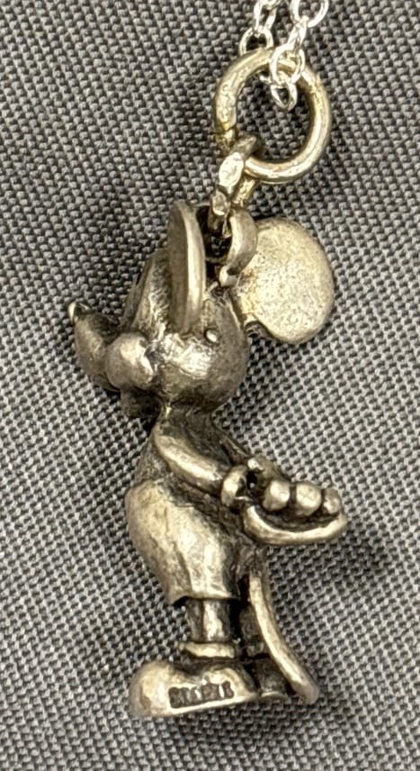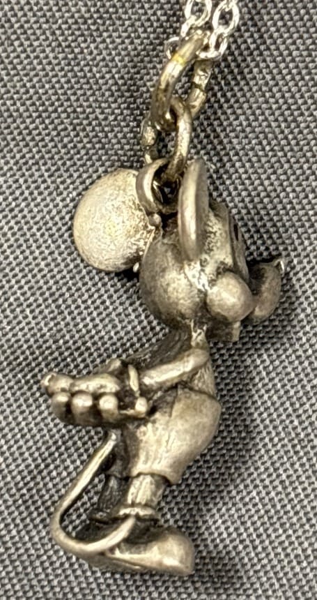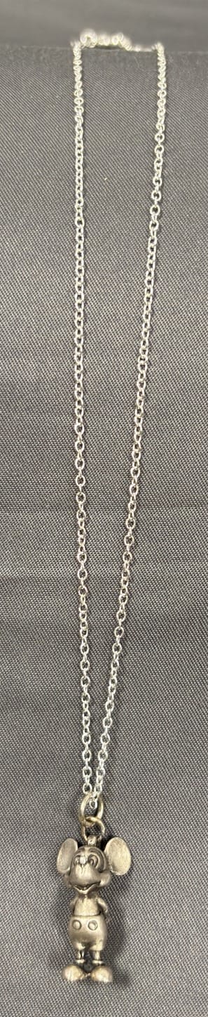 1112 Vintage Sterling Mickey Mouse Pendant on 16 inch .925 Silver Chain