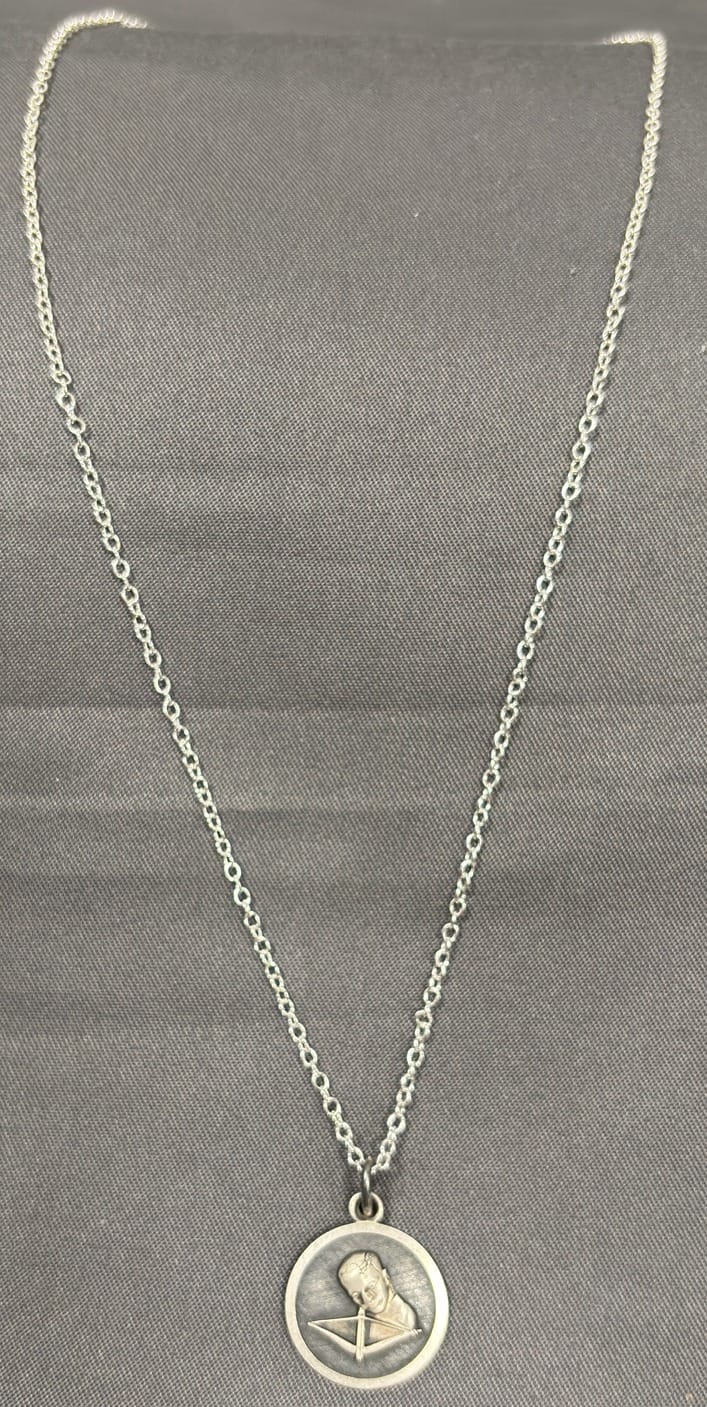1080 European .835 Silver Archer Pendant 'Gott Schutze Dich' (God Bless You) on 16 inch .925 Silver Chain