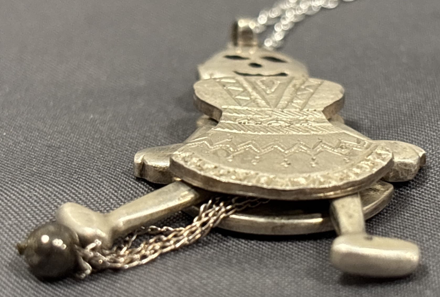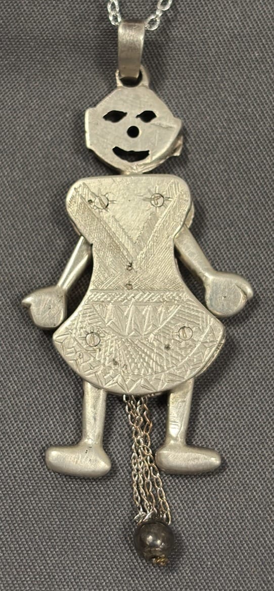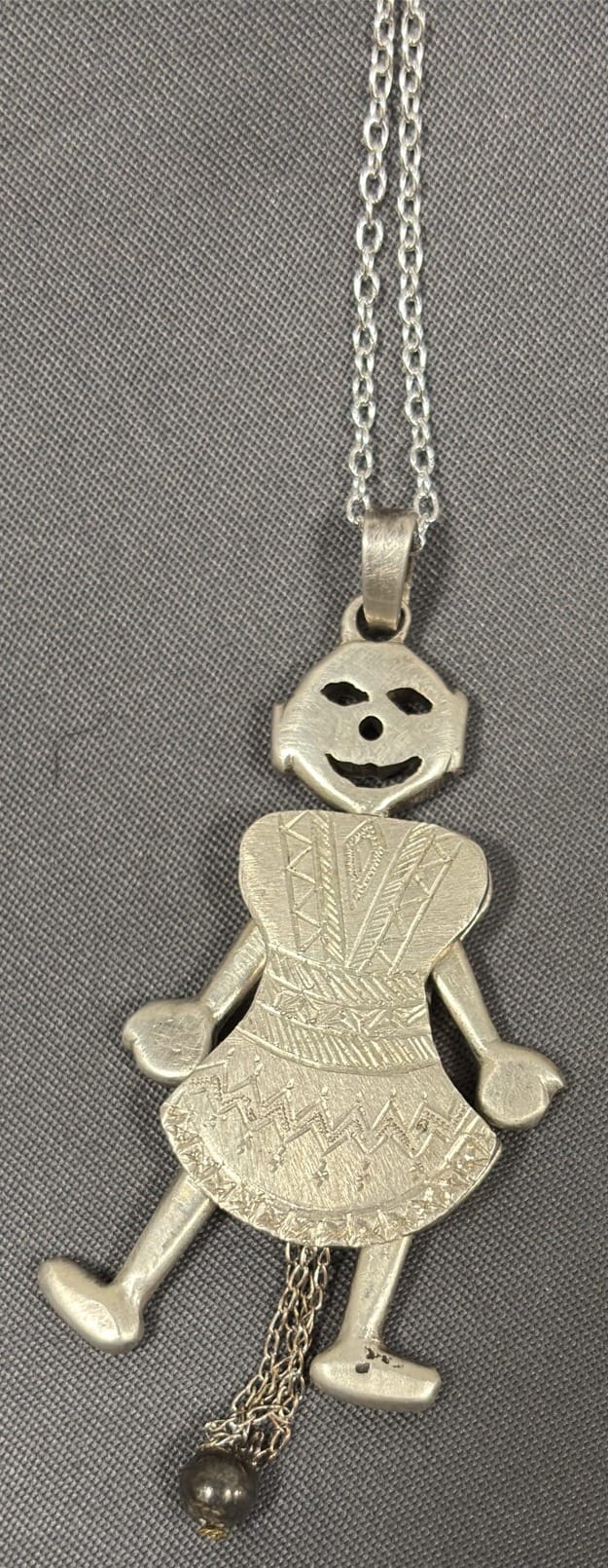1124 .925 Silver 'Dancing' Pendant - 18 Grams, unmarked on 16 inch .925 Silver Chain
