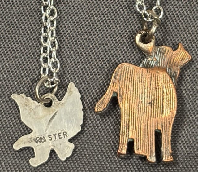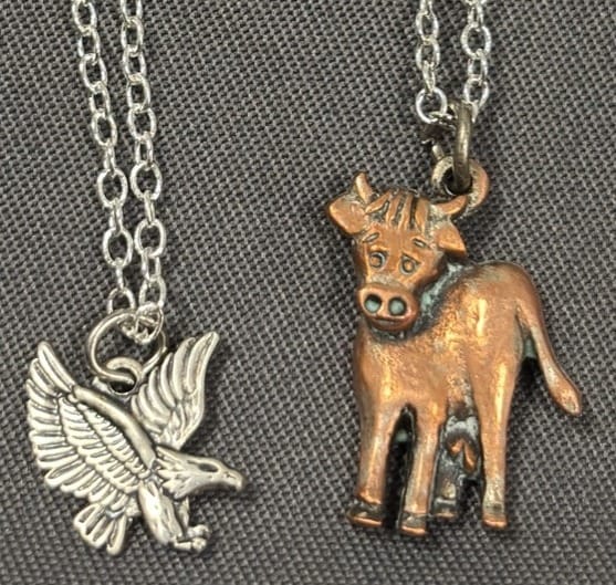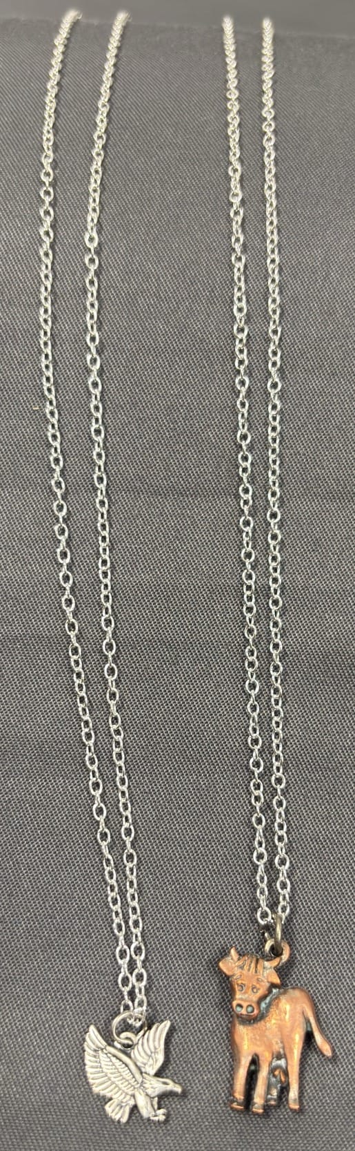 1127 Copper Cow Pendant and Sterling Eagle Pendant, Both on 16 inch .925 Silver Chains