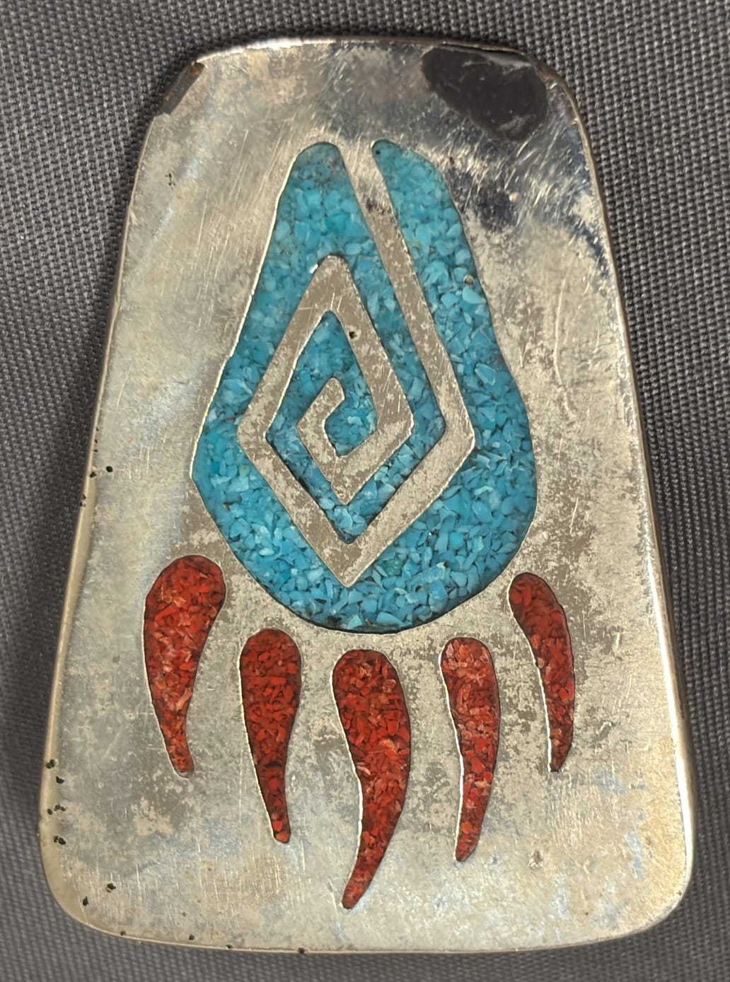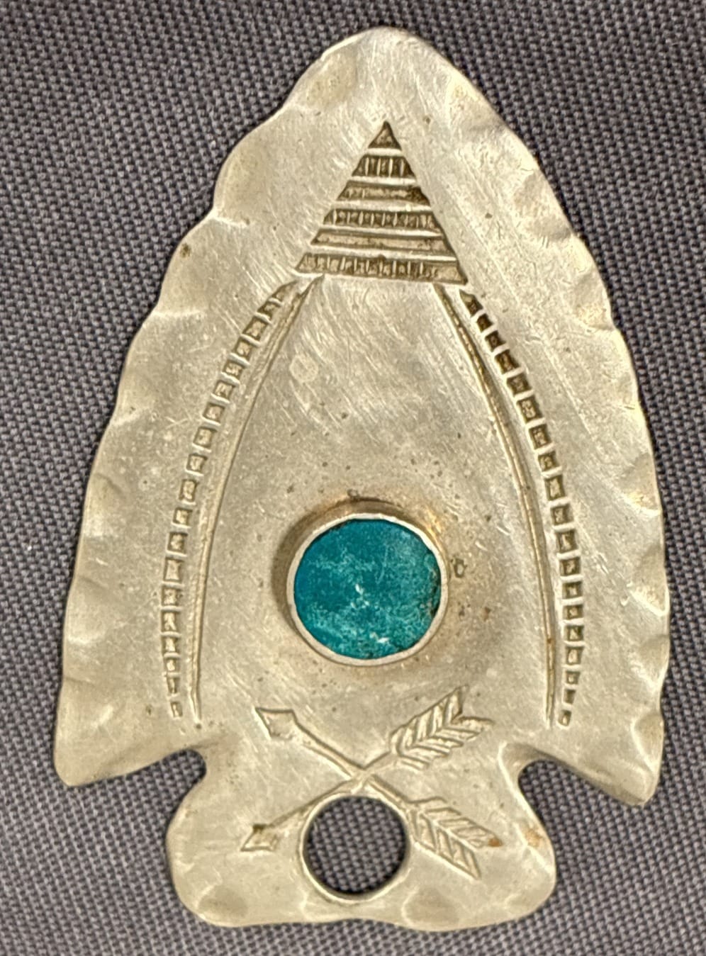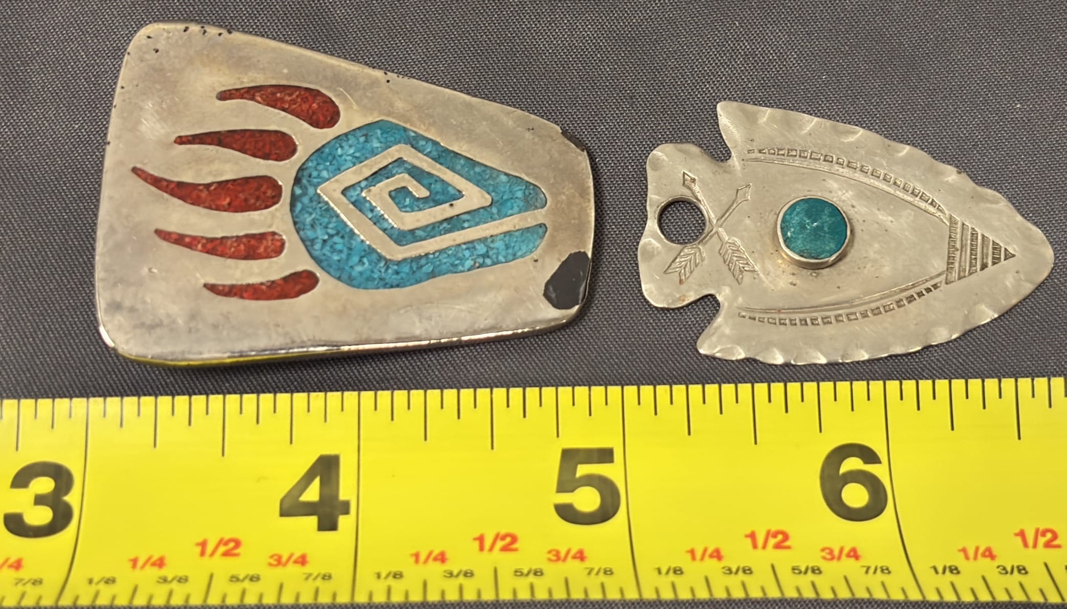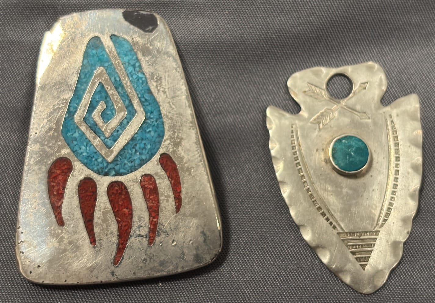 1133 Vintage Indian Silver and Turquoise Pendant and Bolo Slide Stamped TT