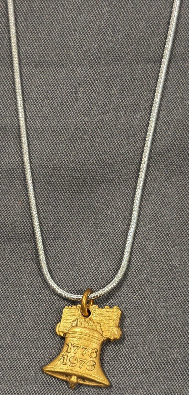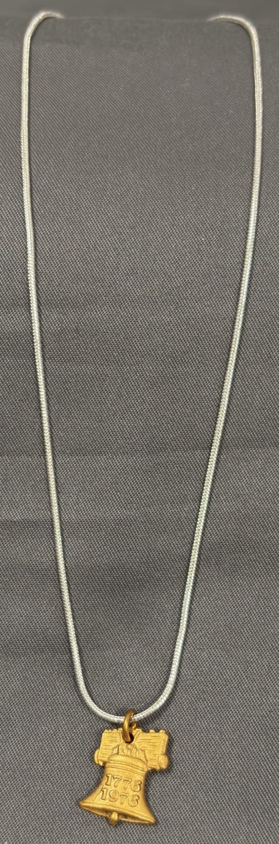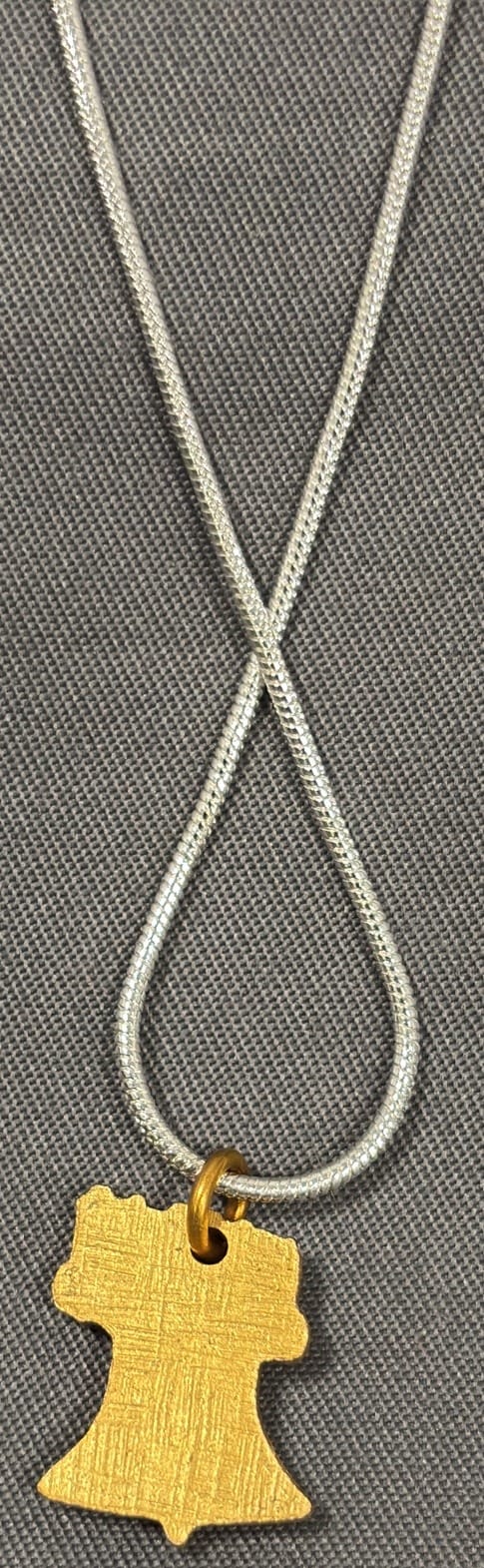 1134 Gold Tone Liberty Bell Pendant on 16 inch .925 Silver Chain